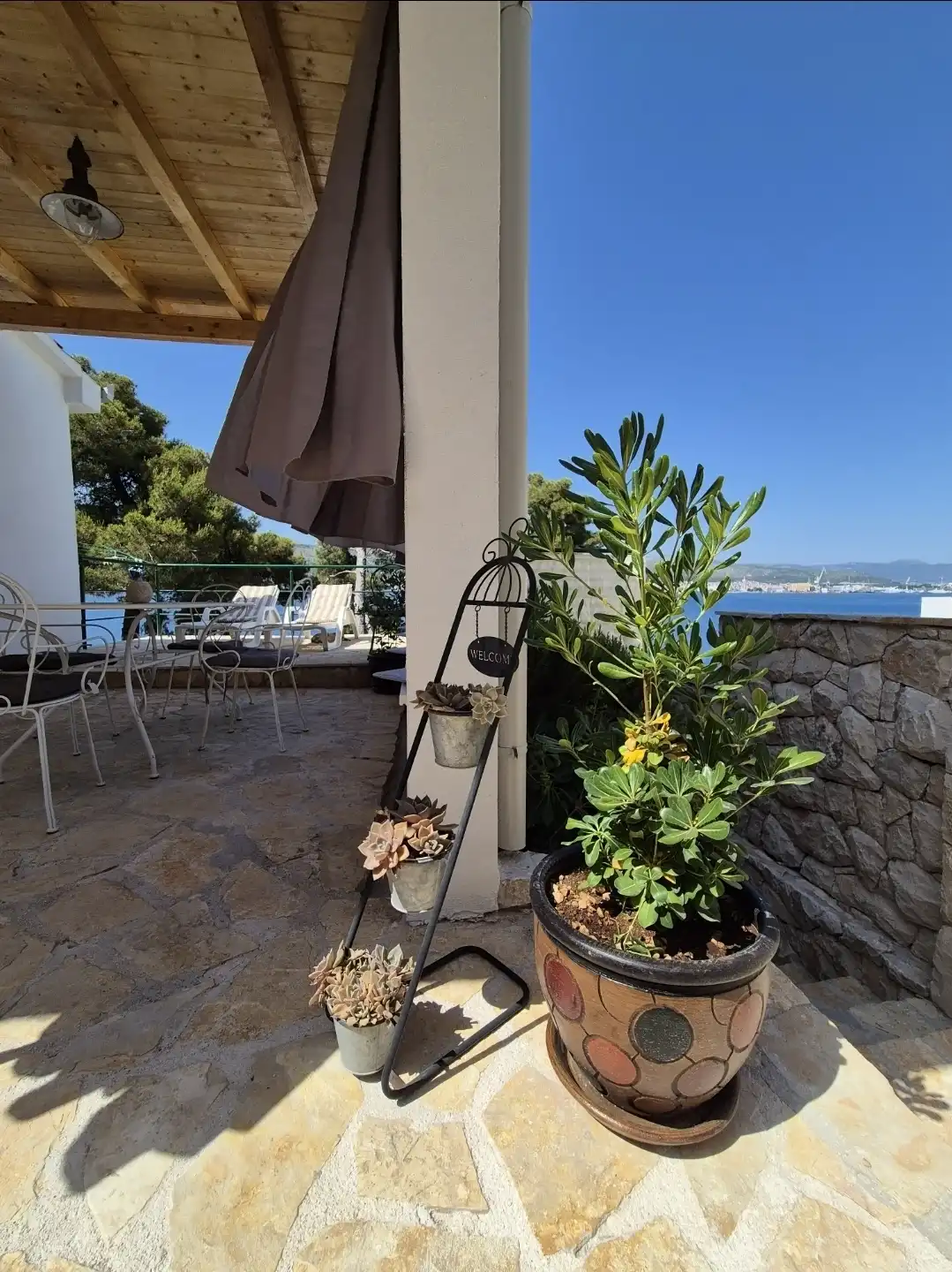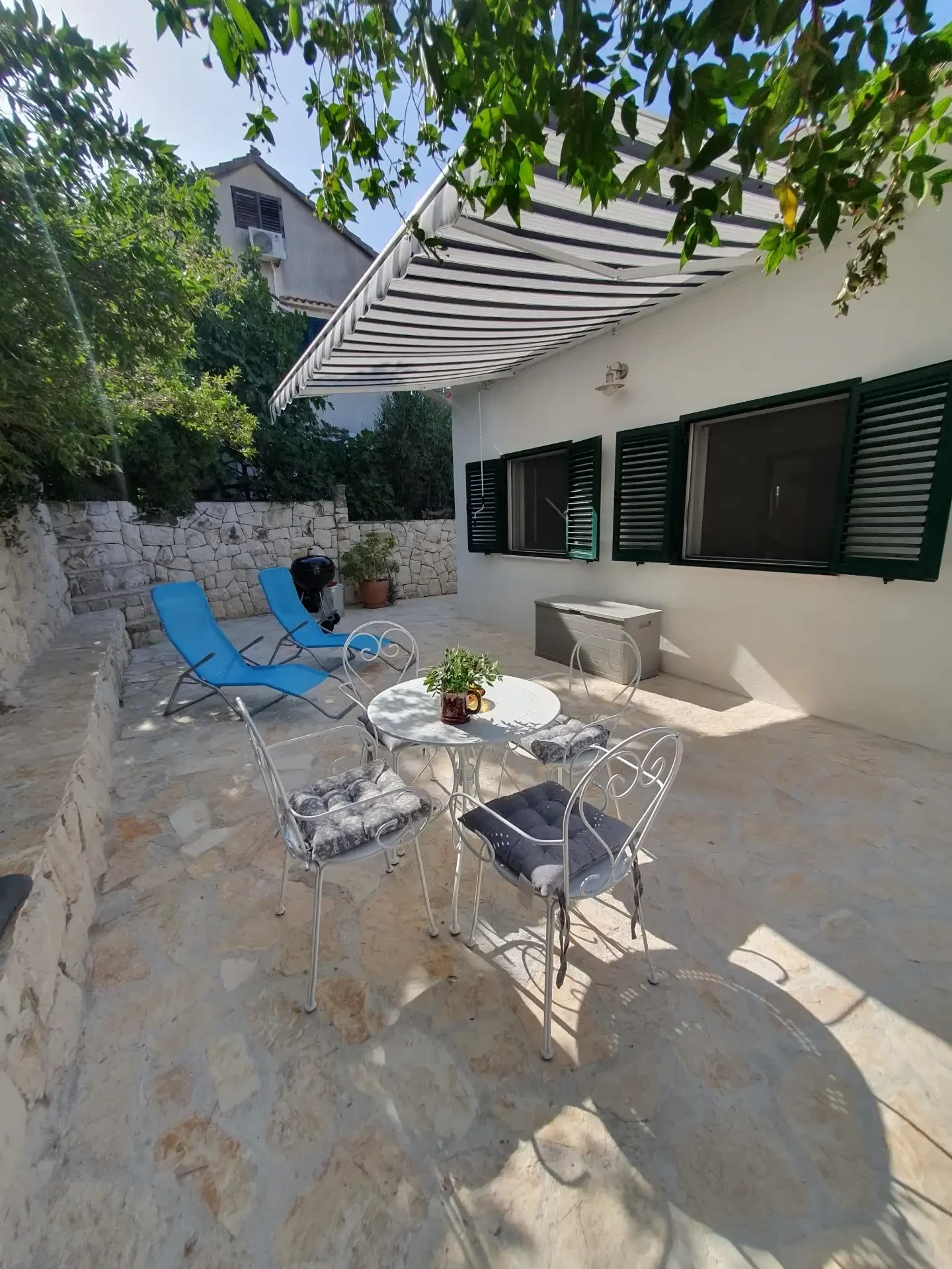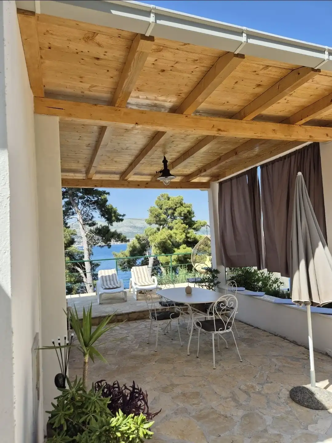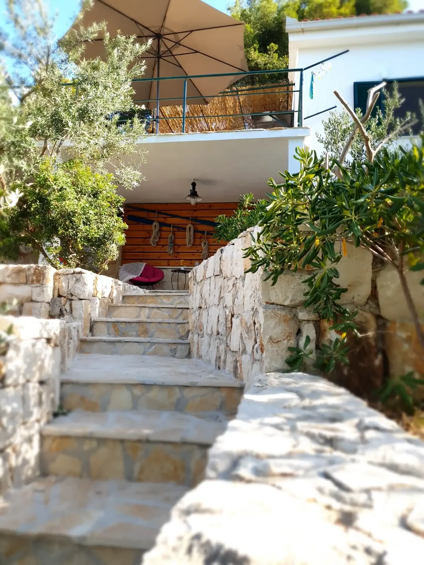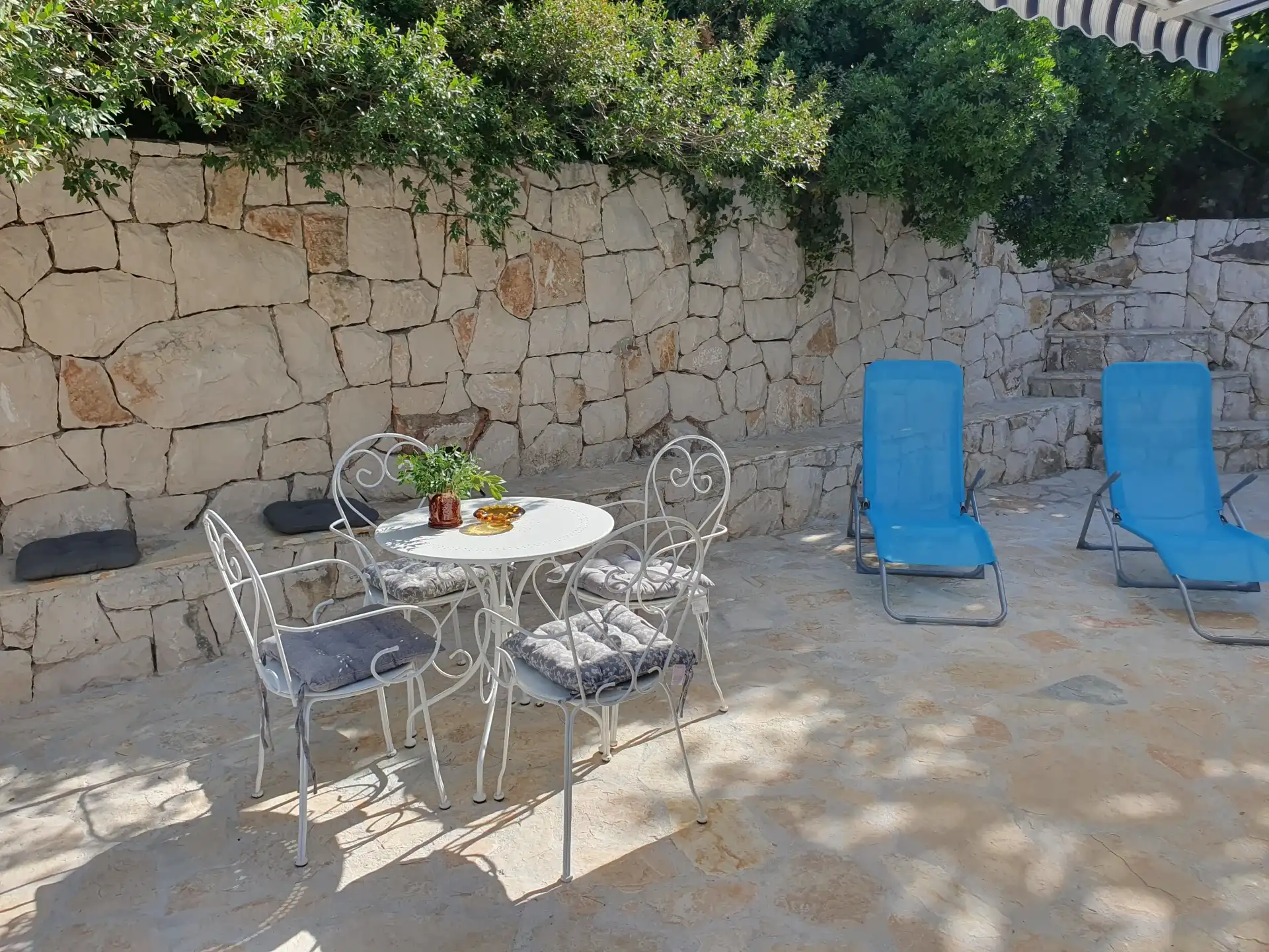 Amor Mari is a holiday home that has Mediterranian flair. It is situated on an island Čiovo, that is connected to city of Trogir with a bridge, 20 minutes from the airport by car. The property extends to 550m2 where you can enjoy the large stone terraces, and the whole estate is for our guests. The house is 38m2 large. First line to the sea, surrounded by olive trees and flowers. Peaceful nights,calm days,a place ideal for relaxation. Suitable for families, smaller groups of friends or pairs.