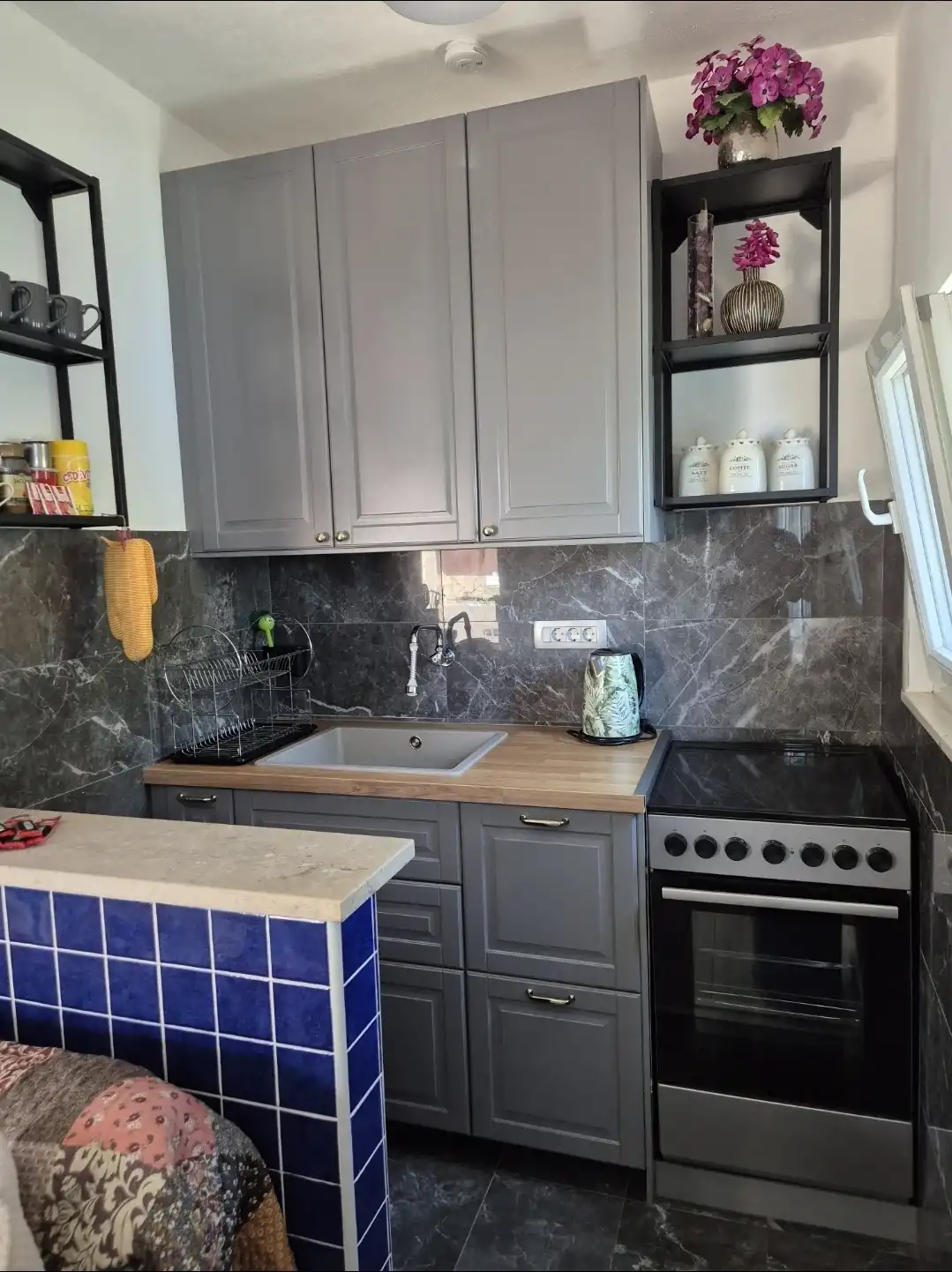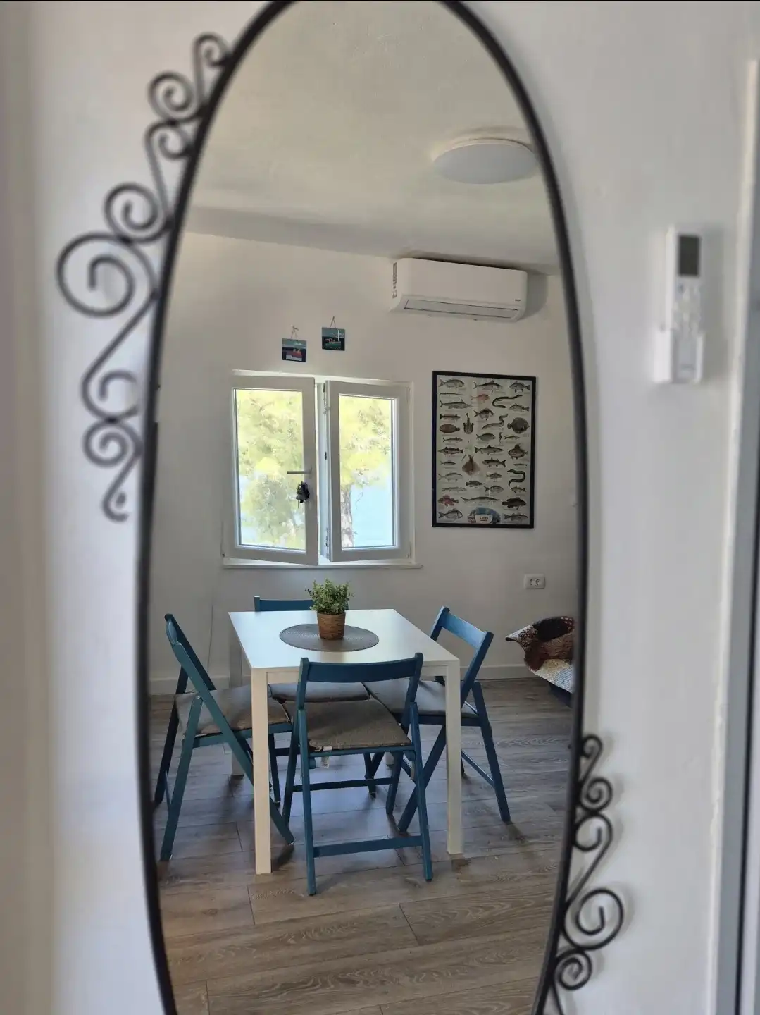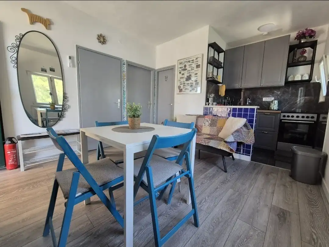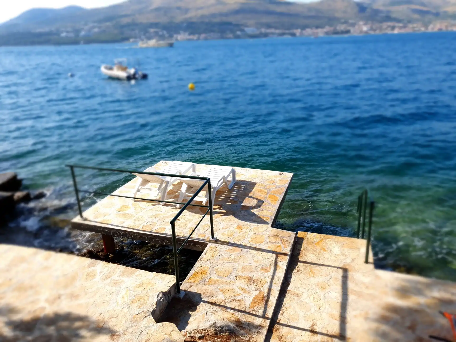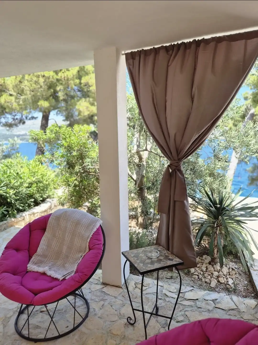 Amor Mari is a holiday home that has Mediterranian flair. It is situated on an island Čiovo, that is connected to city of Trogir with a bridge, 20 minutes from the airport by car. The property extends to 550m2 where you can enjoy the large stone terraces, and the whole estate is for our guests. The house is 38m2 large. First line to the sea, surrounded by olive trees and flowers. Peaceful nights,calm days,a place ideal for relaxation. Suitable for families, smaller groups of friends or pairs.