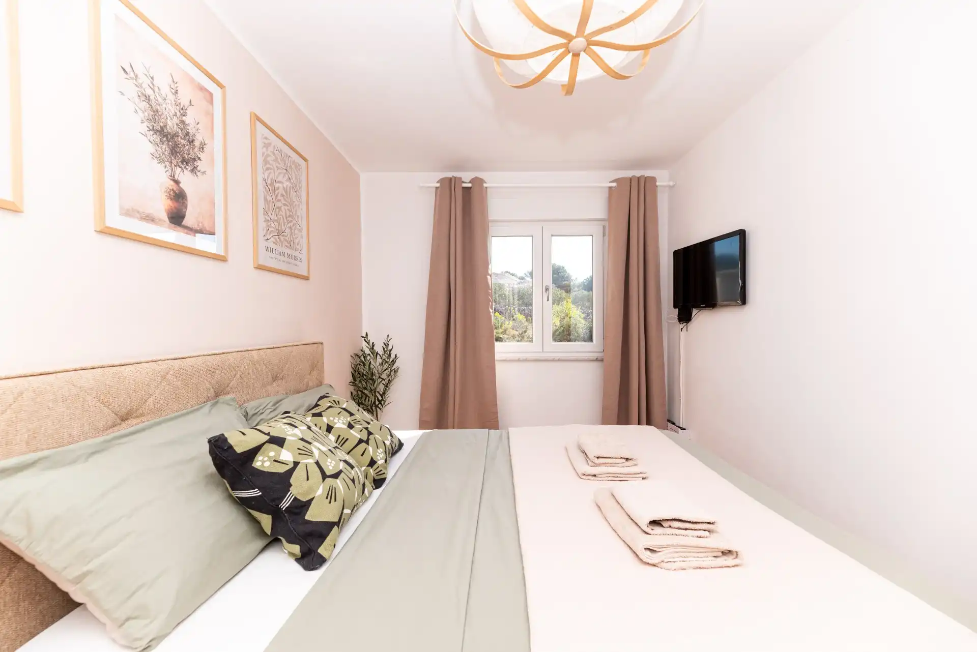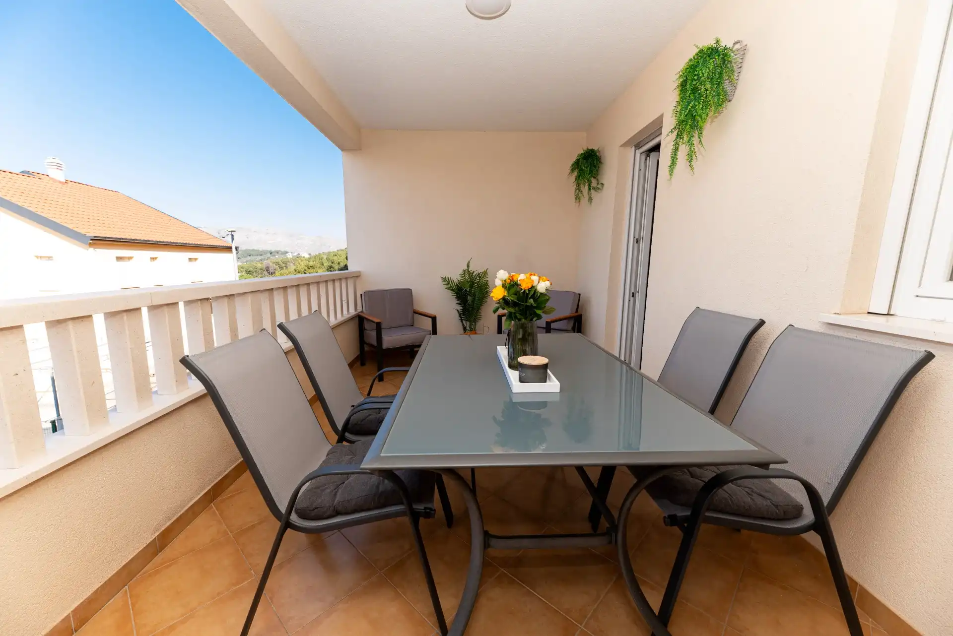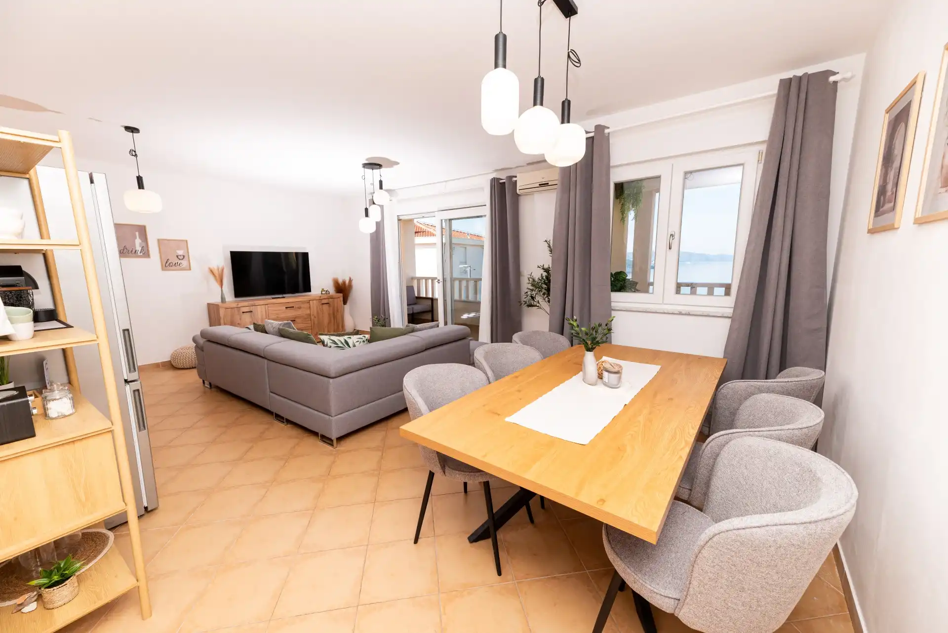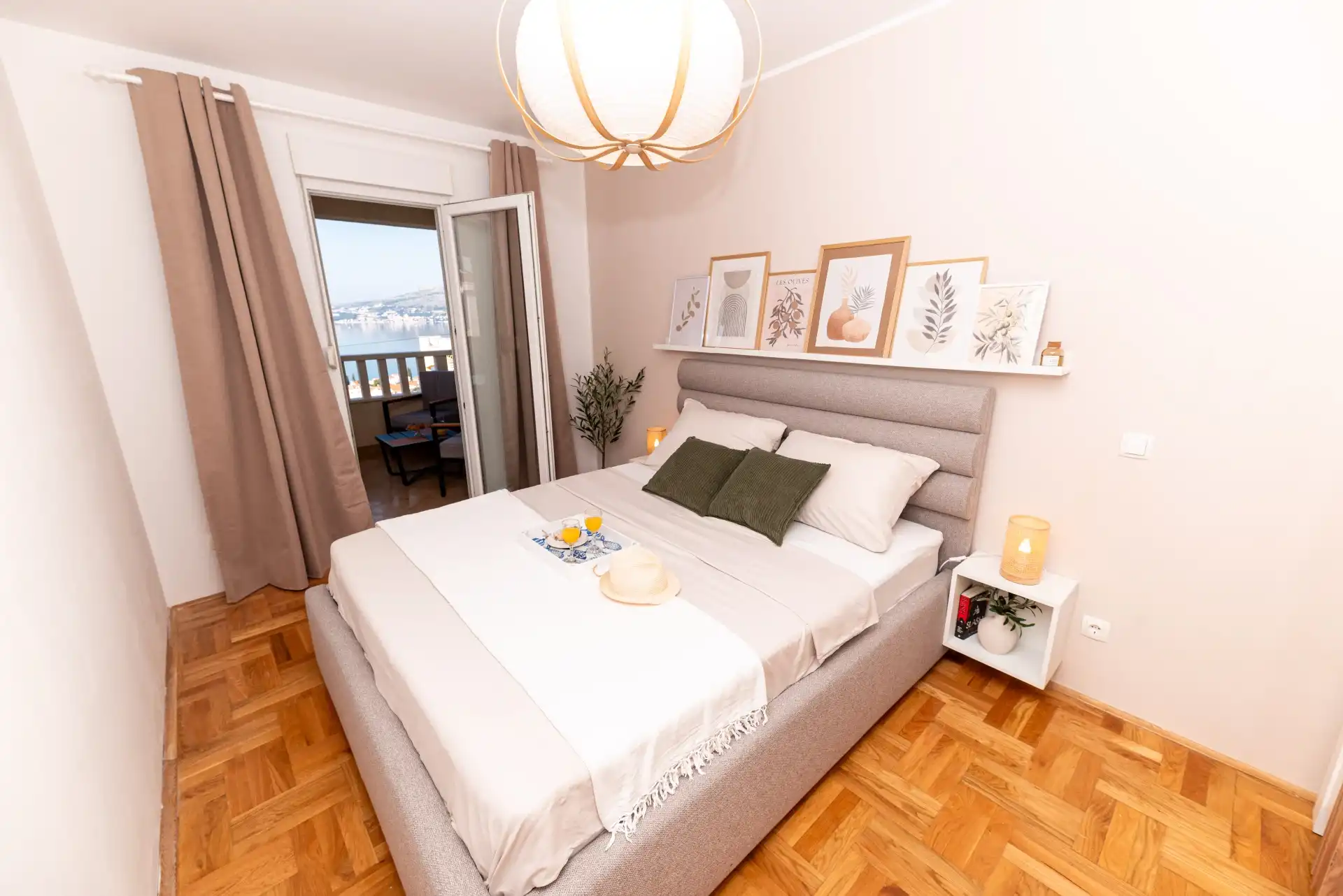 Apartment Olea is located on the 1st floor , 450 m from main Copacabana beach. Apartment has 2 bedrooms, bathroom, living room with fully fited kitchen and spacious sea view terrace. Parking place is in front of the building.