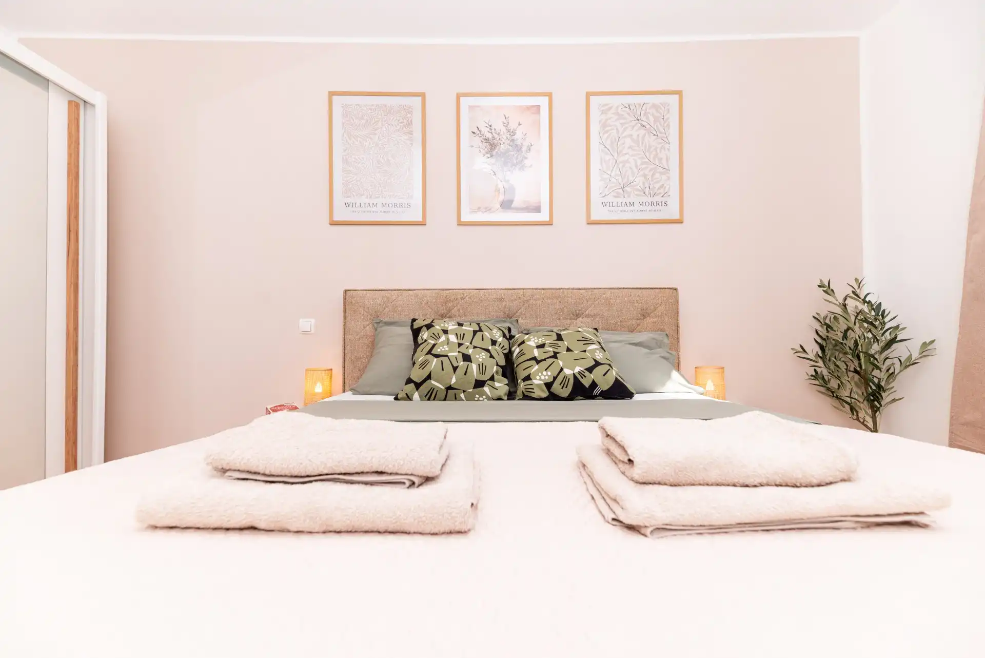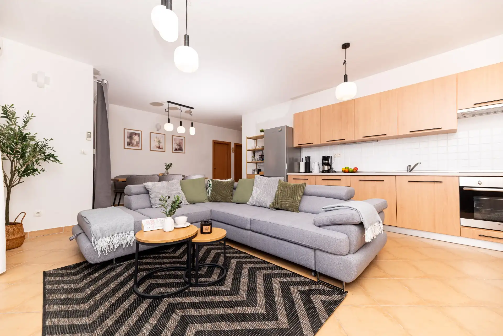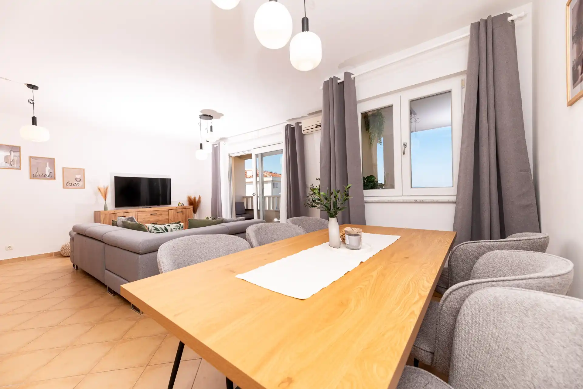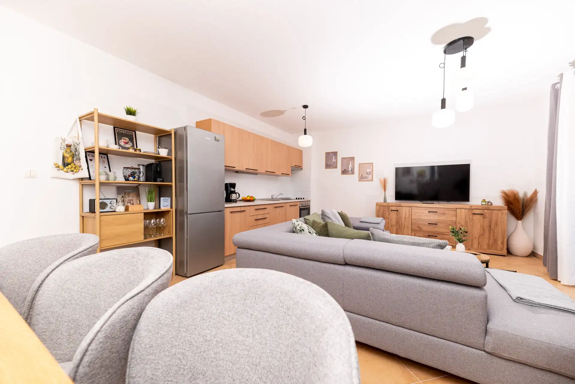 Apartment Olea is located on the 1st floor , 450 m from main Copacabana beach. Apartment has 2 bedrooms, bathroom, living room with fully fited kitchen and spacious sea view terrace. Parking place is in front of the building.