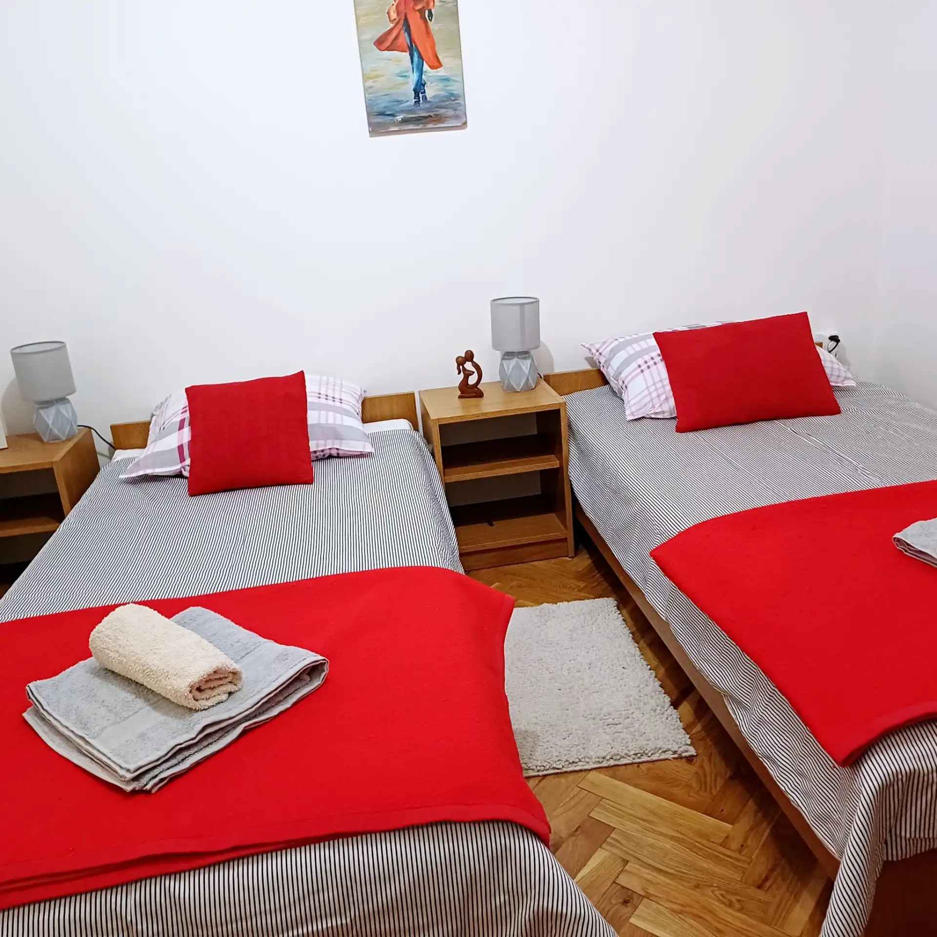 We rent a nice apartment in a house in a quiet location in the pearl of Podunavlje - Šarengrad. 30 km from Vukovar and 7 km from Ilok. The proximity of the Danube, as well as a small lake not far from the house is ideal for all recreationalists, fishermen or just for walking and enjoying peace and nature. In front of the house is a meadow with a playground for children, benches and a place for socializing and barbecue. The property is located in an ideal position in a quiet and peaceful street. Nearby are numerous facilities of the city of Vukovar and Ilok, places for walking, recreation, as well as numerous wineries with quality wines and restaurants with local cuisine. The price of accommodation depends on the number of people. For reservations longer than 5 days, we give a discount.