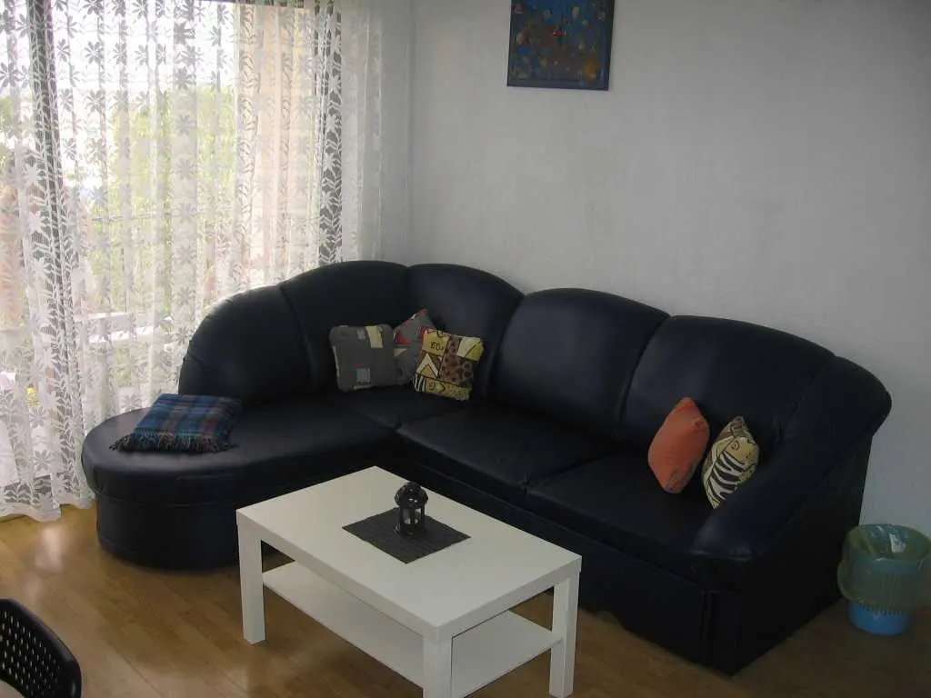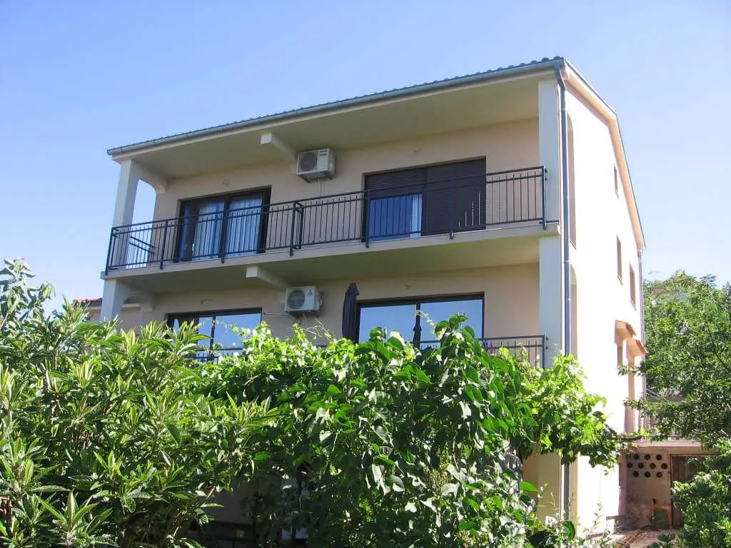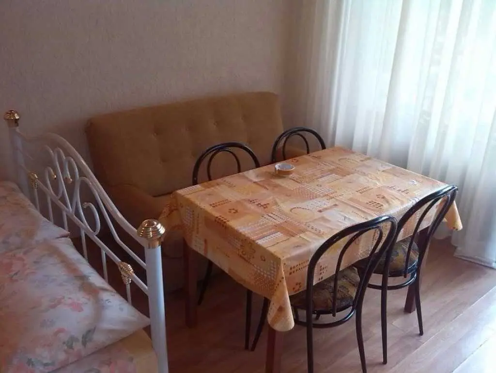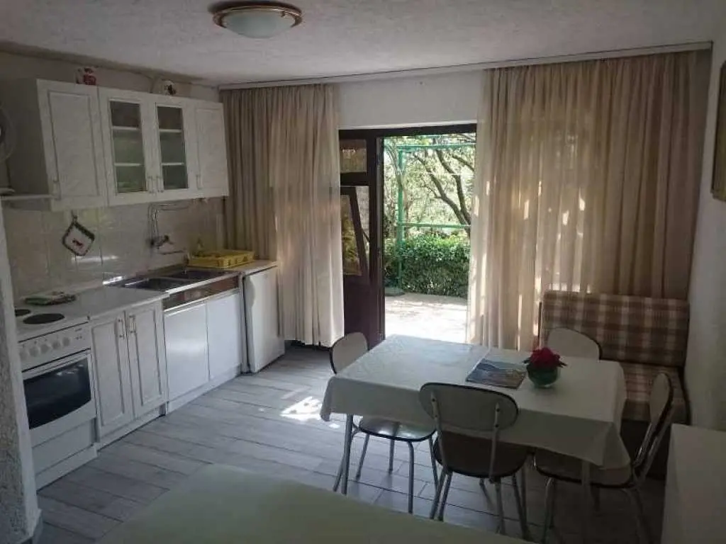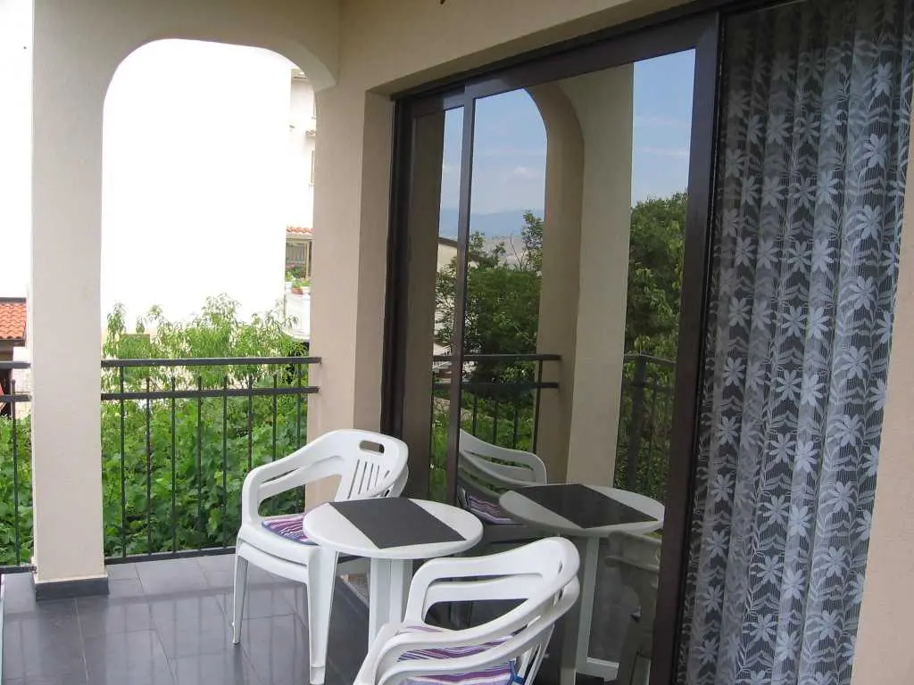 Bedroom ( double bed) + terrace, living room and kitchen are one room where there are two more beds + balcony, satellite TV. Kitchenette , table and chairs for every person, kitchen utensils, cutlery, etc. Provided, dish clothes, electric cooker and gas, refrigerator and freezer, mirkovalna, fan .. Bathroom with toilet, washing machine. One pet is allowed, several pets on request. Linen is changed weekly, towels ( 1 large, 1 small / per person a week ). Free Internet WI - FI. Own balcony, covered, Tables and chairs for the balcony are available, balcony: 8 m2 outer part. Cot available upon request. Barbecue. WHEN BOOKING LESS THAN 4 NIGHTS EXTRA 30% Capacity and positions: Capacity: 4 Number of beds: 5 Number of double beds : 2 Distance from the beach: 1000 m Beach type: sandy Distance from the center: 500 m Distance from the shop: 500 m Further information: Sea View yard terrace balcony parking place pets Internet connection Free Wi-Fi We speak foreign languages: English Italian German Device Features: TV satellite TV heating Bathroom Features: shower cabin Washing machine Kitchen: Dishes for preparing meals Dishes for serving food and drinks Cutlery kitchen range oven fridge freezer Coffee maker Additional services (on request ): Laundry Access: Closest airport: 15 km The nearest railway station: 30 km The nearest bus stop: 1 km Nearest ferry port: 25 km