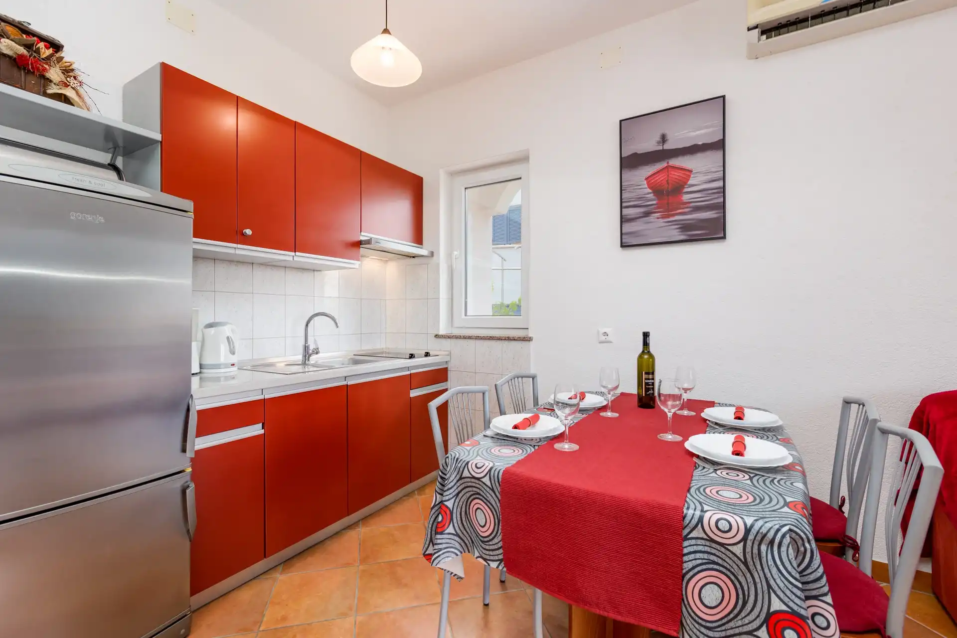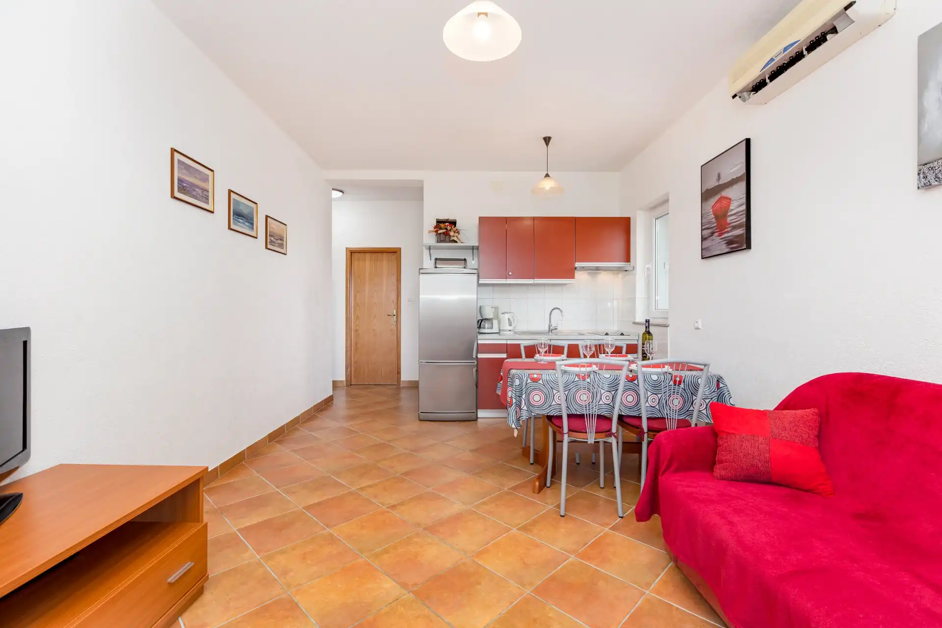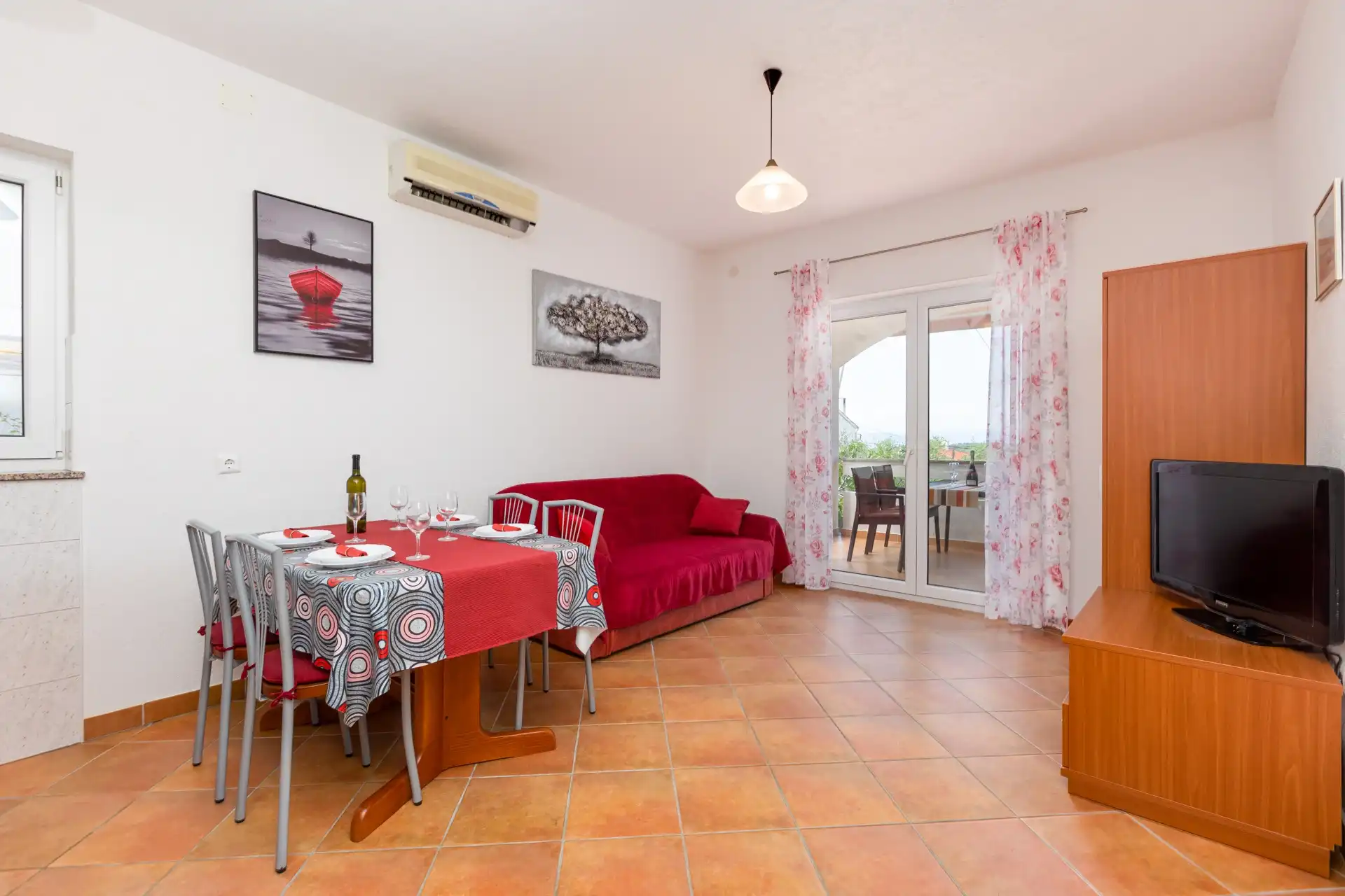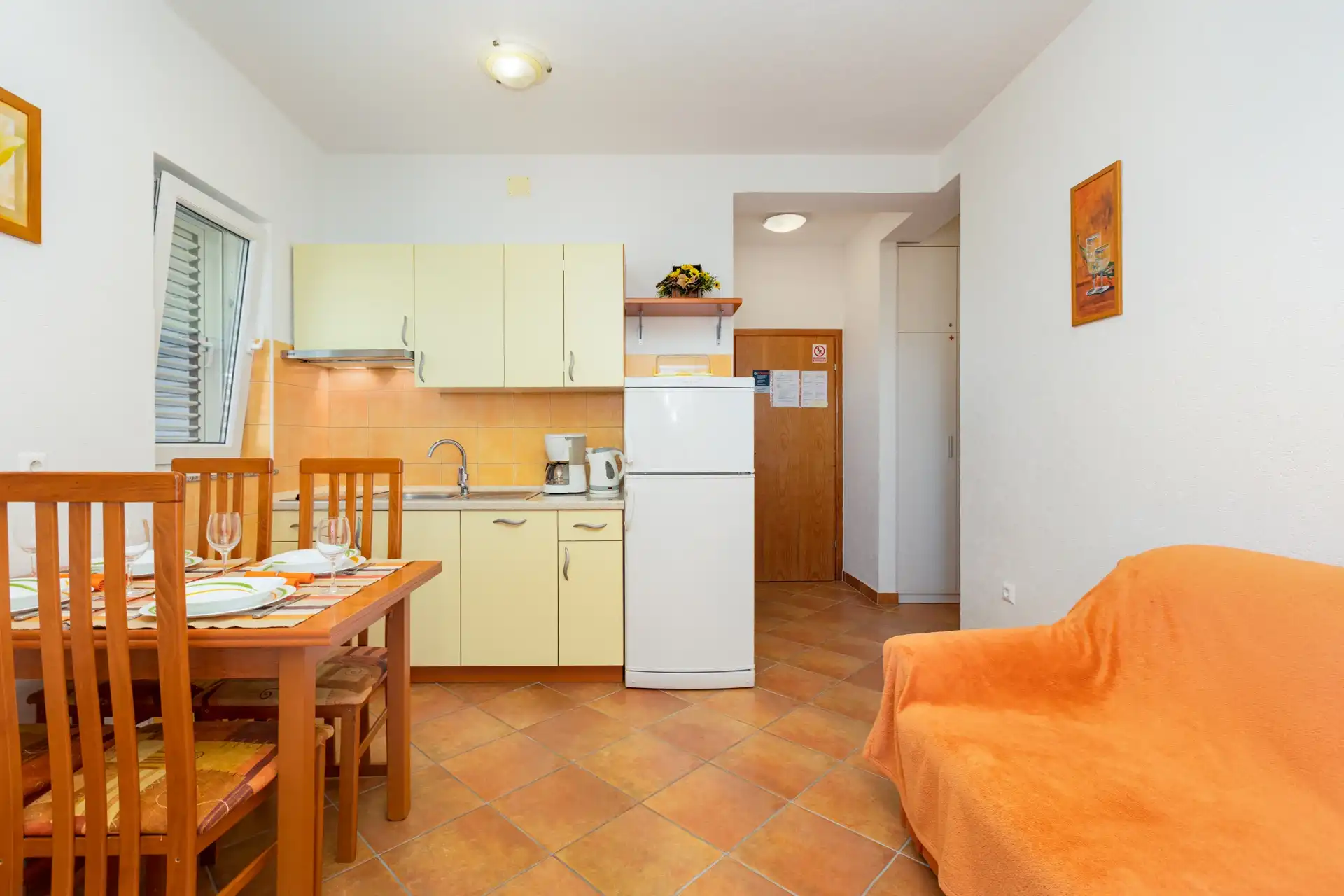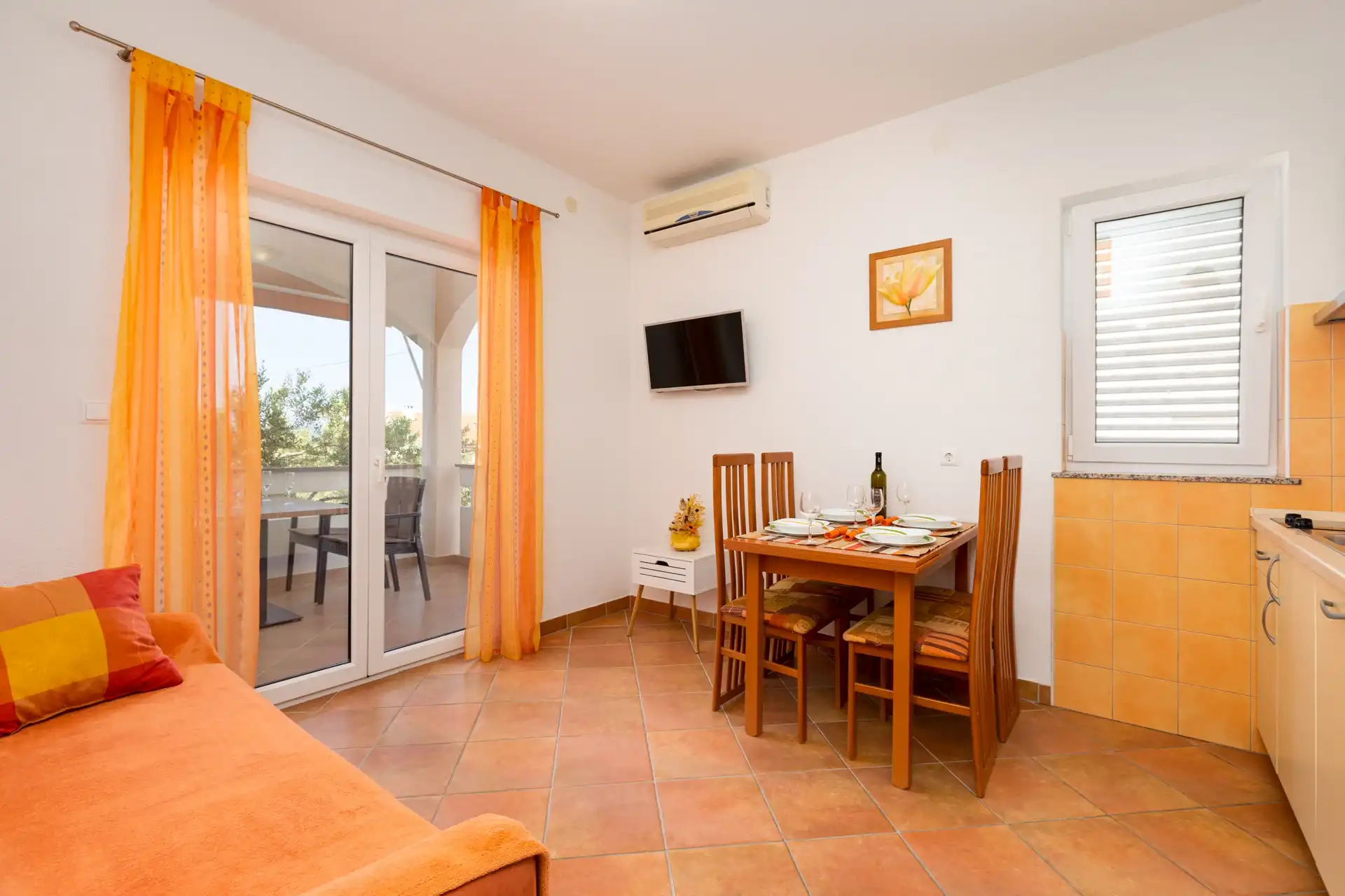 In the small coastal town of Punat, in a beautiful setting of olive trees and fig trees, is our family house with two modernly equipped apartments on the high ground floor. If you don't mind walking ten minutes to the beach or five minutes to the nearest restaurant, cafe or shop, then you have come to the right place. Each apartment has two separate bedrooms for four people, a bathroom/WC with shower, a kitchen with a living room in which there is an extra bed for one more person. The living room opens onto a spacious covered terrace equipped with a seating area. The apartments are equipped with air conditioning, SAT/TV, bed linen, towels, a dishwasher, a fridge with freezer, a coffee machine, a kettle, dishes and other kitchen utensils. A parking space is provided for your car in our yard. Pets are not allowed in the apartment. If you are not a fan of the summer heat and crowds on the beach, if you like to walk, hike or ride a bike, then spring is the best time of year to visit our island. Welcome!
