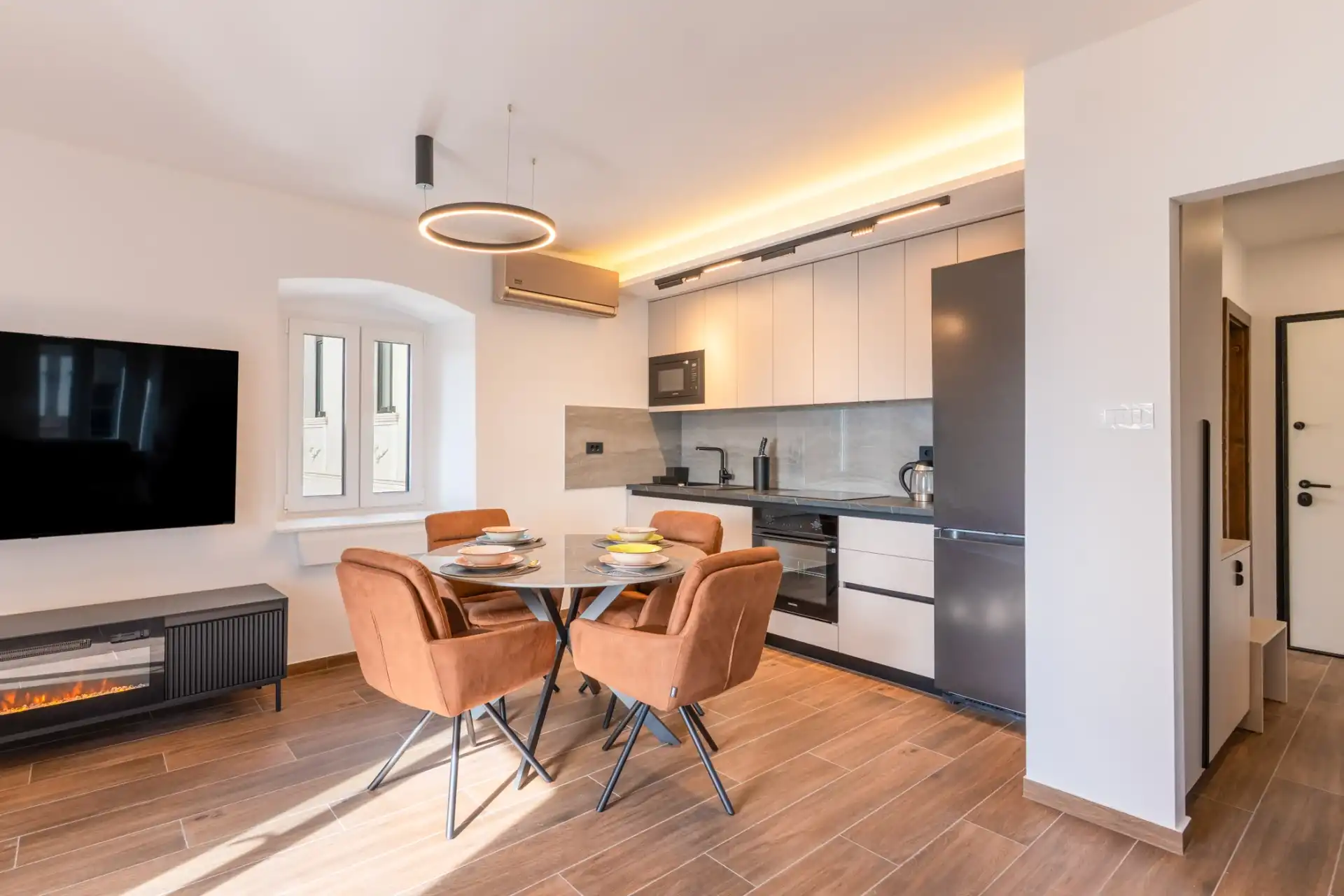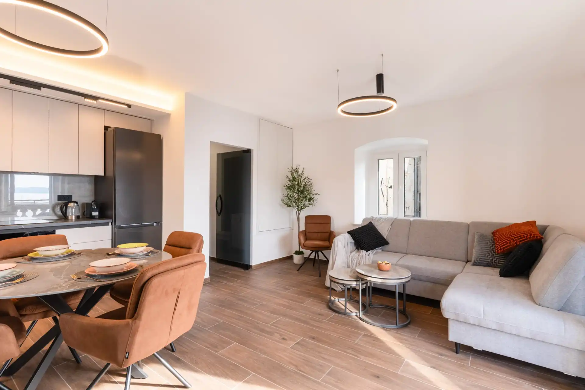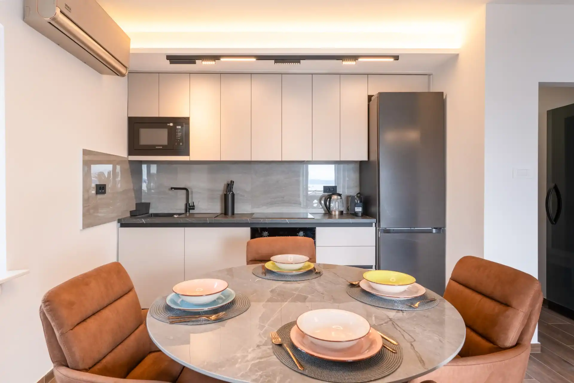 Located in the very center of Makarska, right on the vibrant Riva promenade, Azzuro Apartment offers a modern and spacious stay with a beautiful sea view. With its prime location and stylish interior, it is an excellent choice for guests who want to be close to all the main attractions. Key Features: One bedroom and one bathroom Spacious and modern interior Small balcony with sea view Fully equipped kitchen Comfortable living area Additional Amenities: Prime location on Makarska Riva Walking distance to beaches, restaurants, cafés, and shops Our staff is available for help and advice throughout your stay Enjoy the lively atmosphere of Makarska while staying in a comfortable and well-located apartment right by the sea.