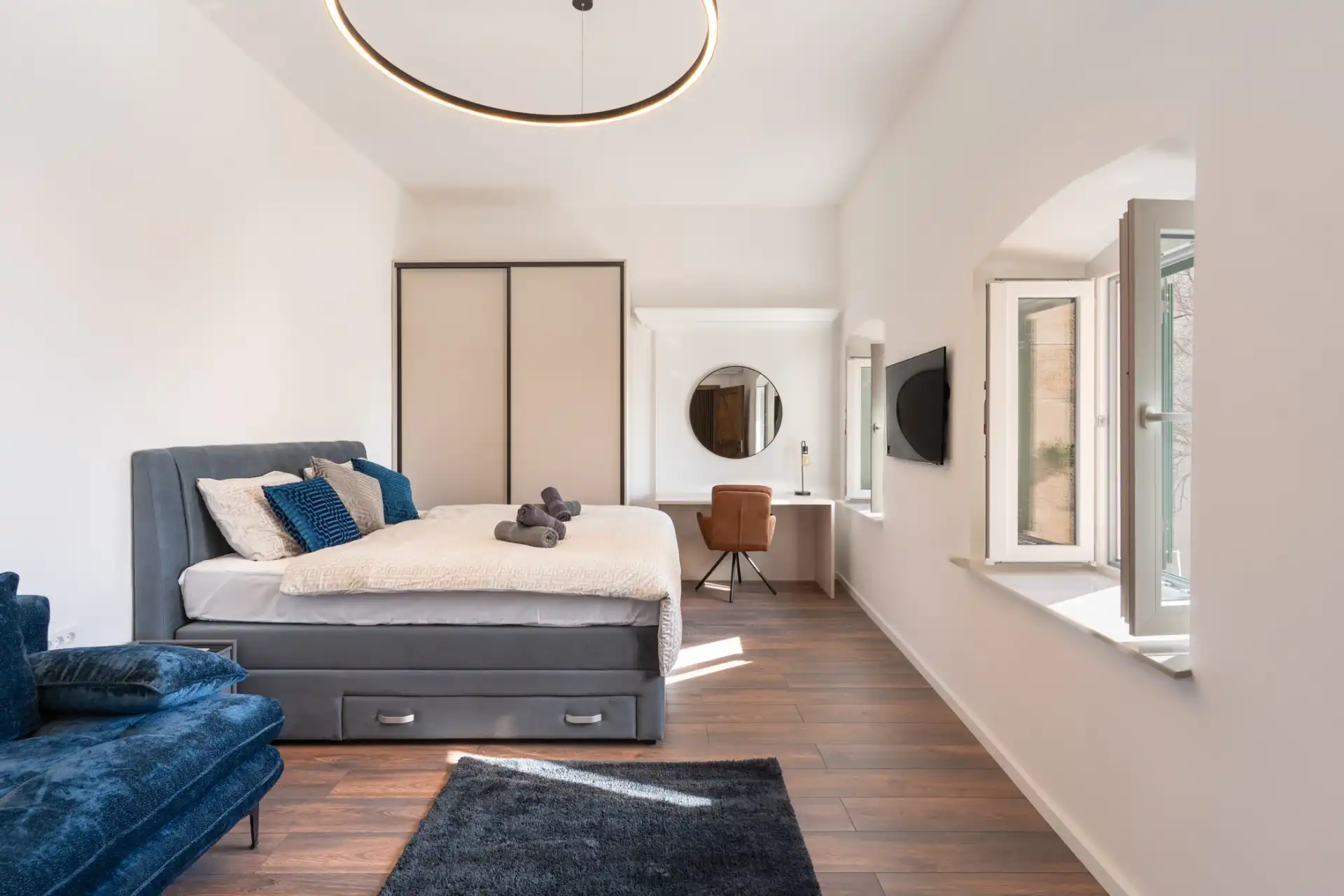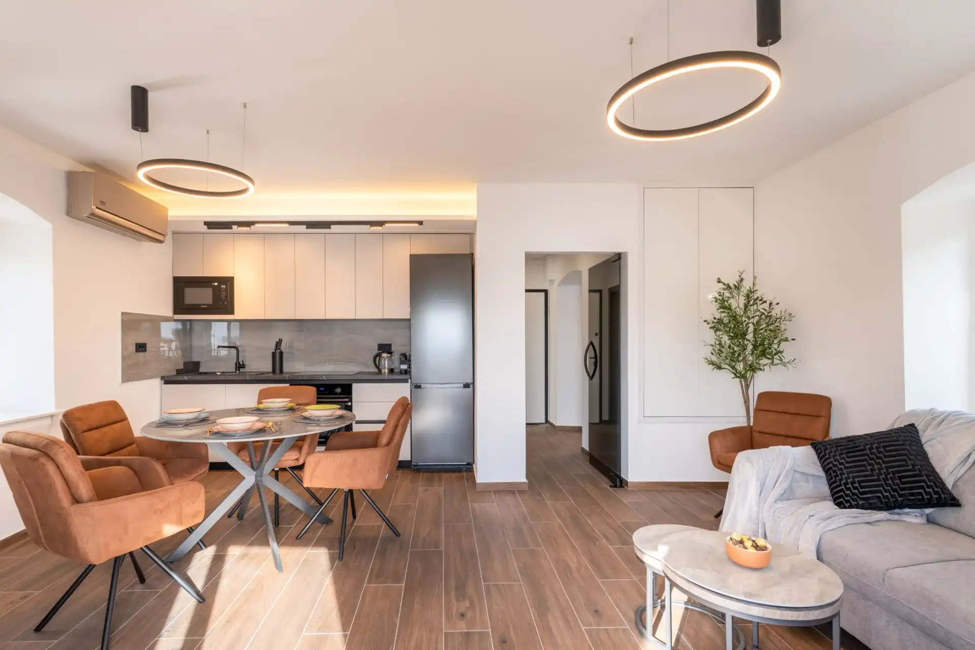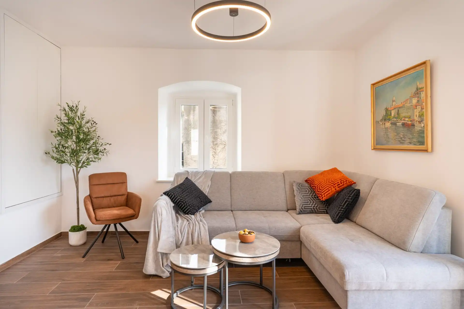 Located in the very center of Makarska, right on the vibrant Riva promenade, Azzuro Apartment offers a modern and spacious stay with a beautiful sea view. With its prime location and stylish interior, it is an excellent choice for guests who want to be close to all the main attractions. Key Features: One bedroom and one bathroom Spacious and modern interior Small balcony with sea view Fully equipped kitchen Comfortable living area Additional Amenities: Prime location on Makarska Riva Walking distance to beaches, restaurants, cafés, and shops Our staff is available for help and advice throughout your stay Enjoy the lively atmosphere of Makarska while staying in a comfortable and well-located apartment right by the sea.