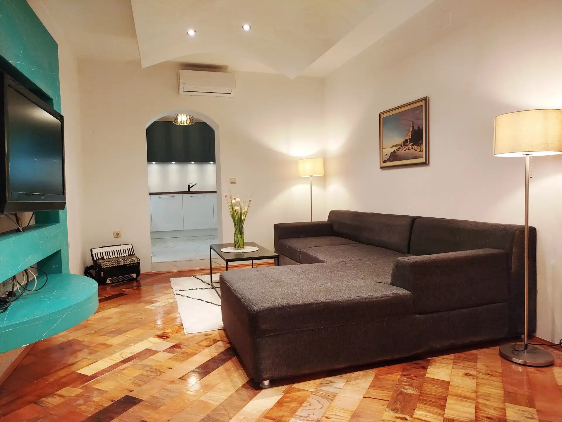 Apartman Robert is located 400 m above the old part of The city centar. The surface area of 120 m2 consists of two bedrooms, two bathroom, living room and kitchen. In front of the apartment is 300 m2 with covered terase with full garden furniture, .jacuzzi. TV and barbecue. Swimming pool with sun covered area and parking lot.