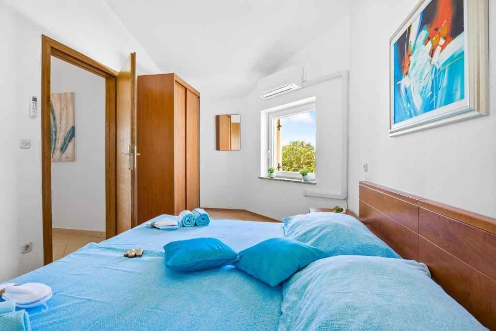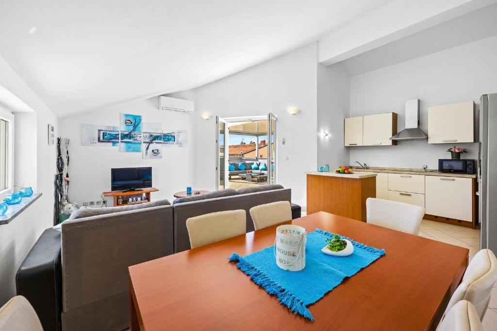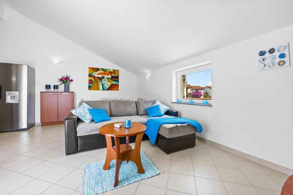 Nestled in the heart of Medulin, this cozy and family-friendly apartment offers a comfortable retreat for your next getaway. Boasting a spacious layout, the accommodation features two well-appointed bedrooms, providing ample space for families to relax and unwind. The apartment's fully air conditioned, ensuring a pleasant temperature throughout your stay. The fully equipped kitchen, complete with modern appliances such as a fridge, freezer, oven, and microwave, allows you to prepare delicious meals for your loved ones. Featuring two bedrooms and a living room with a convertible sofa, it's perfect for up to 4 adults and two children. Stepping outside, you'll be greeted by a delightful terrace, perfect for alfresco dining or simply soaking up the sun. The private outdoor area, complete with sunlongers and outdoor dining area offers a tranquil oasis where you can enjoy quality time with your family. For your convenience, the property offers private parking, with one designated space available within the building. Whether you're seeking a relaxing getaway or an adventure-filled family vacation, this cozy apartment in Medulin is the perfect choice. With its ideal location, thoughtful amenities, and family-friendly atmosphere, it's the ideal home away from home for your next memorable trip.