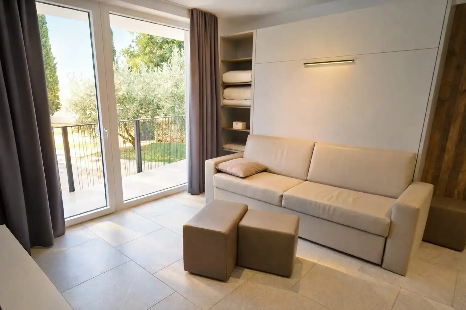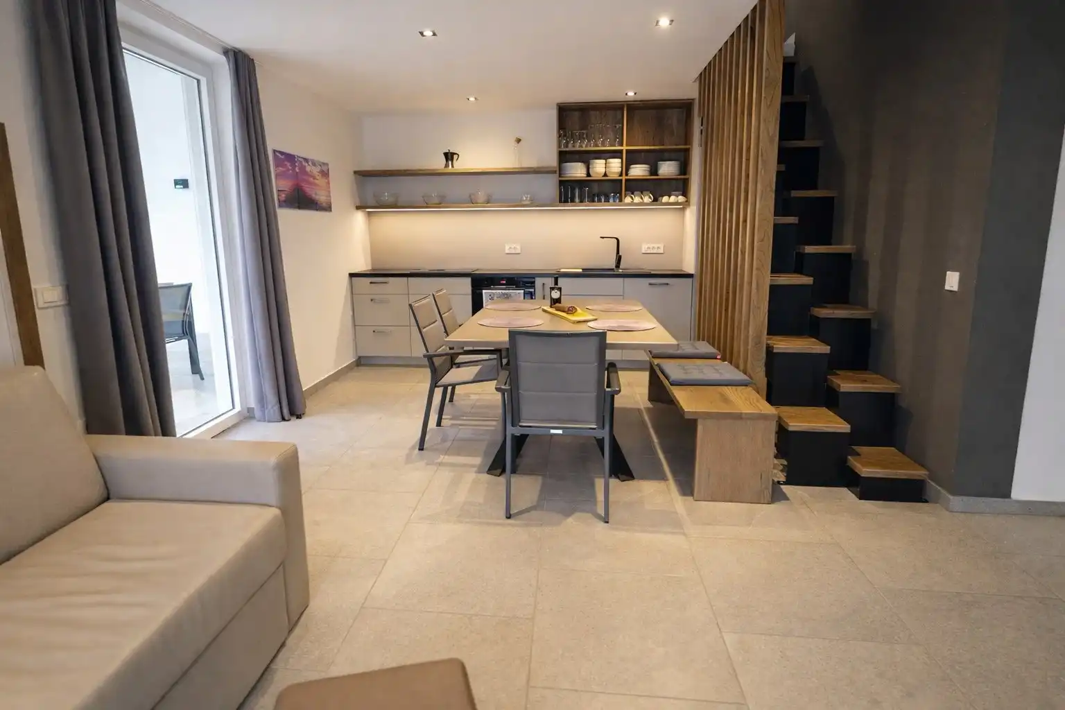 This modern apartment in Pomer is a great choice for a relaxing family holiday. With its spacious garden and modern interior, it offers everything you need to truly unwind and enjoy your time away. The apartment can comfortably accommodate up to 6 guests. Sleeping arrangements include: one king-size double bed, two single beds and a double sofa bed in the living room. The kitchen is fully equipped and ideal for preparing meals, whether it’s a quick breakfast or a relaxed dinner together. Outside, you can enjoy the private garden area and make use of the barbecue for long and easy summer evenings. Your bikes can safely be stored in a garden shed. Perfect for families or friends looking for a peaceful stay close to nature, while still being within easy reach of the sea and local attractions.