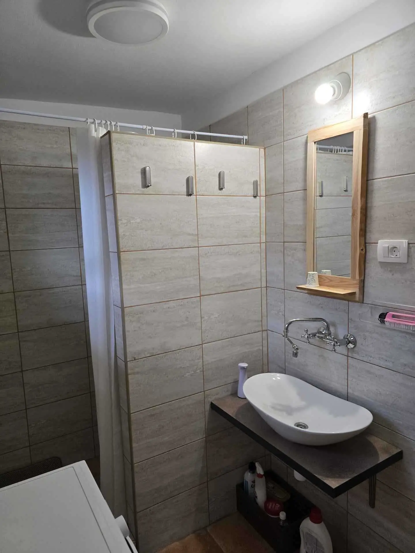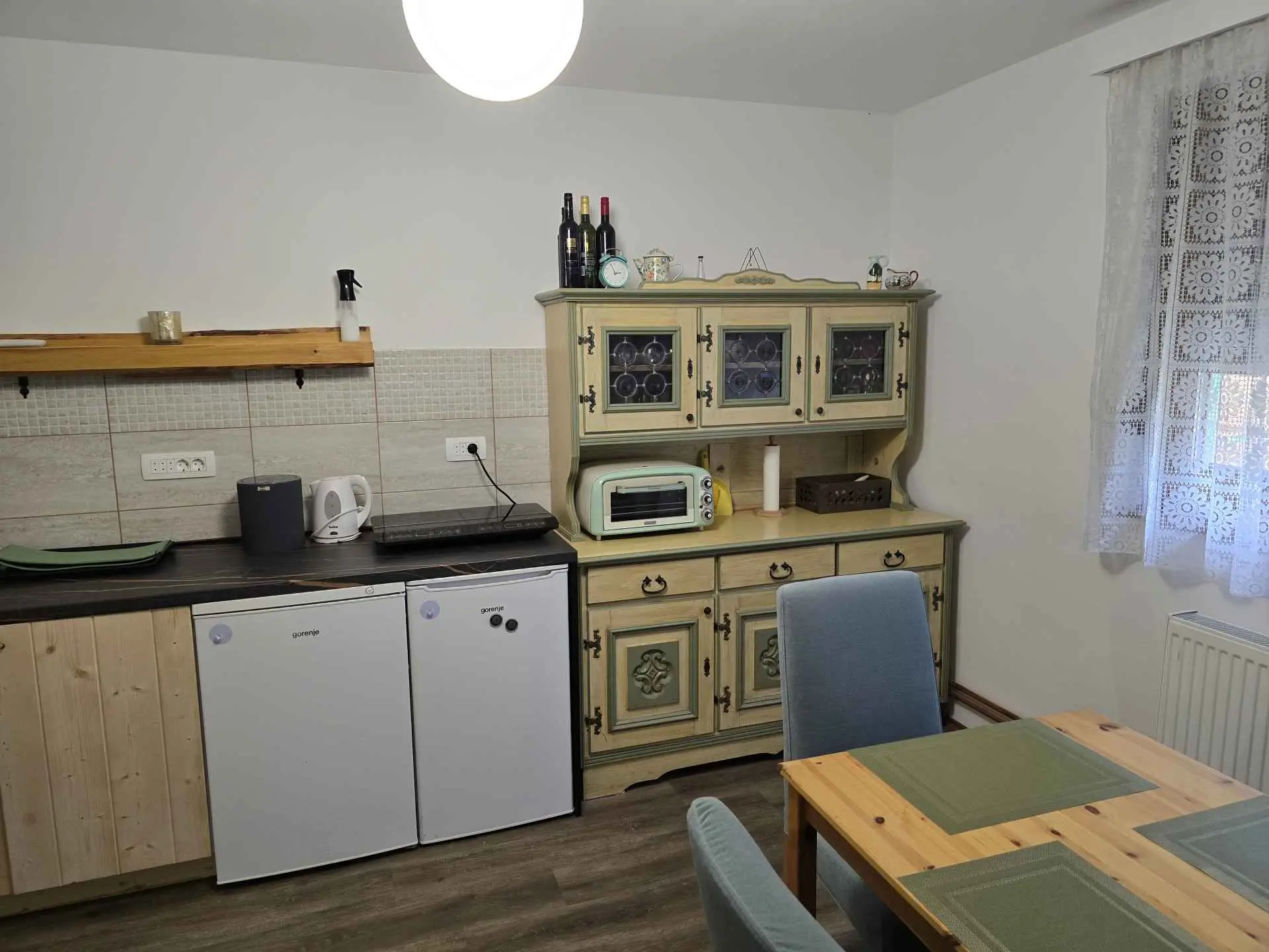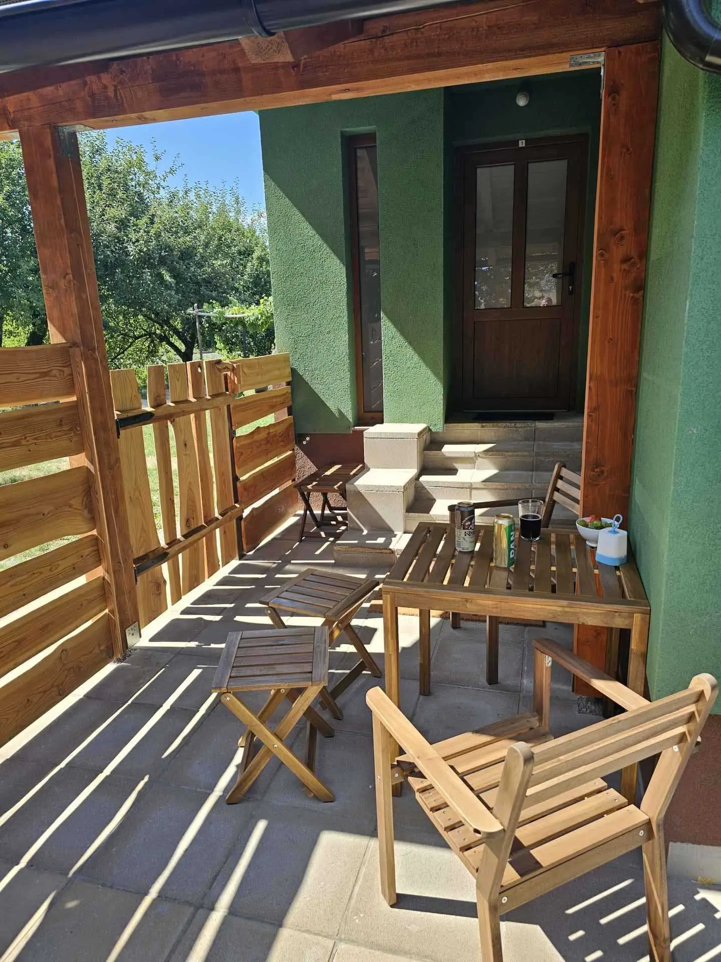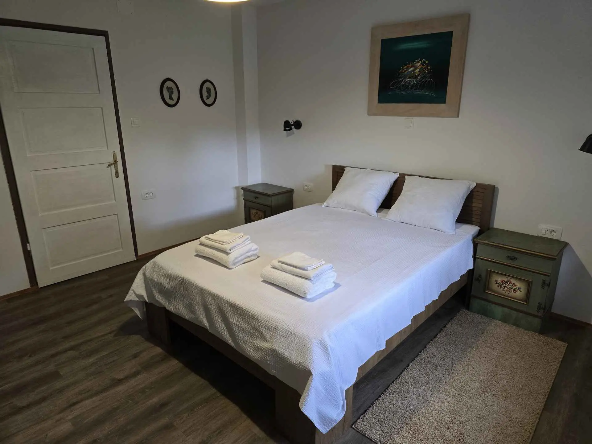 Detached renovated house with its own fenced yard. Possibility of parking several cars in front of the house. Well insulated, cooling in summer as needed, central heating on pellets in winter. There is a small chest freezer in the kitchen. On the rest of the property there are about 20 hens and chickens, which treat guests to eggs for breakfast. In the fridge there are several types of homemade liqueurs (cherry, walnut, carob...). In the bedroom there is a bed 1.4x2, in the living room there is a sofa bed 2x0.80x2. In the bathroom there is a shower and a washing machine. Toilet and sink.