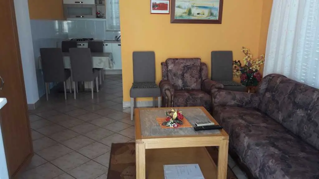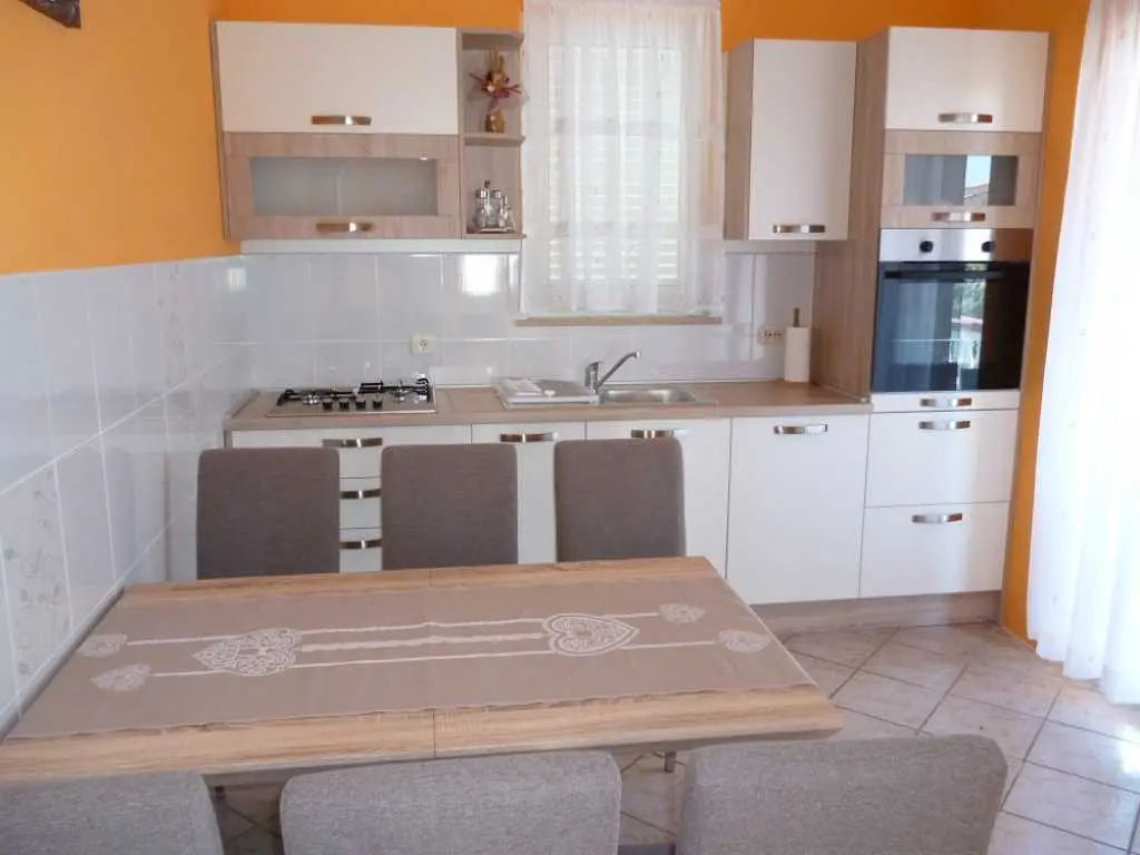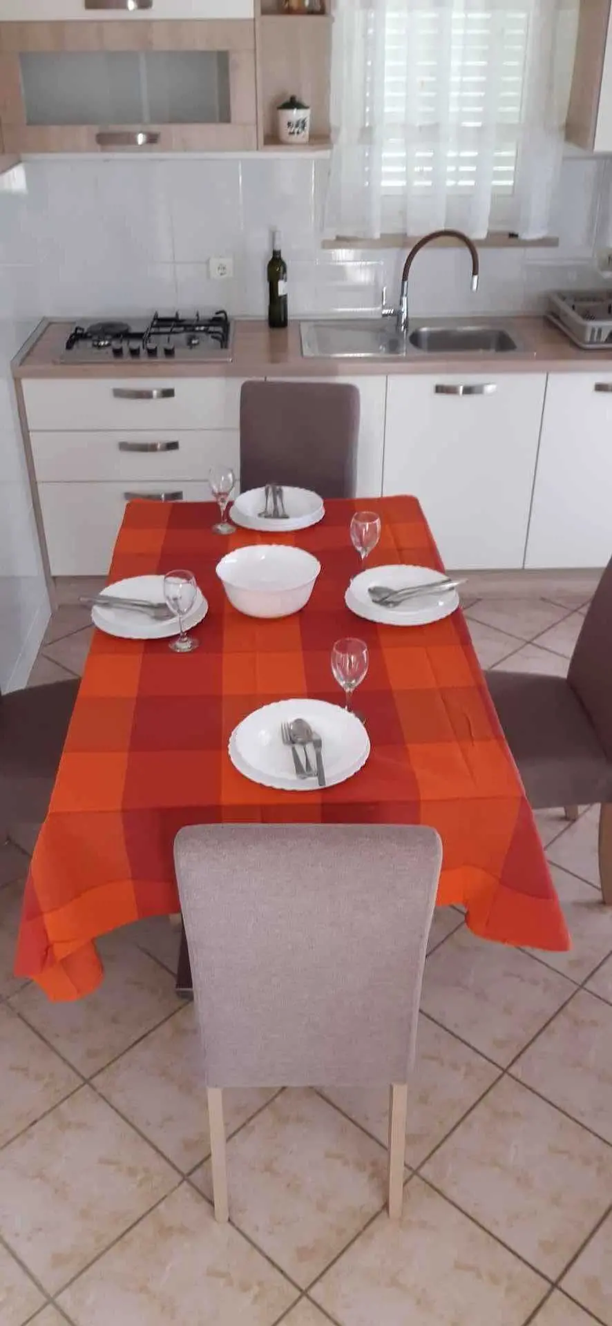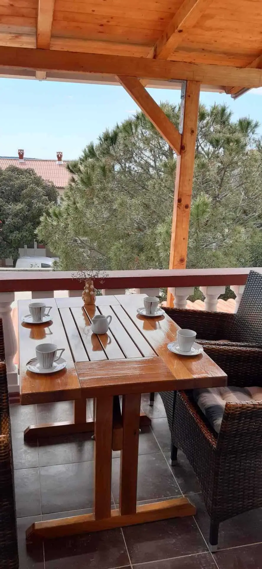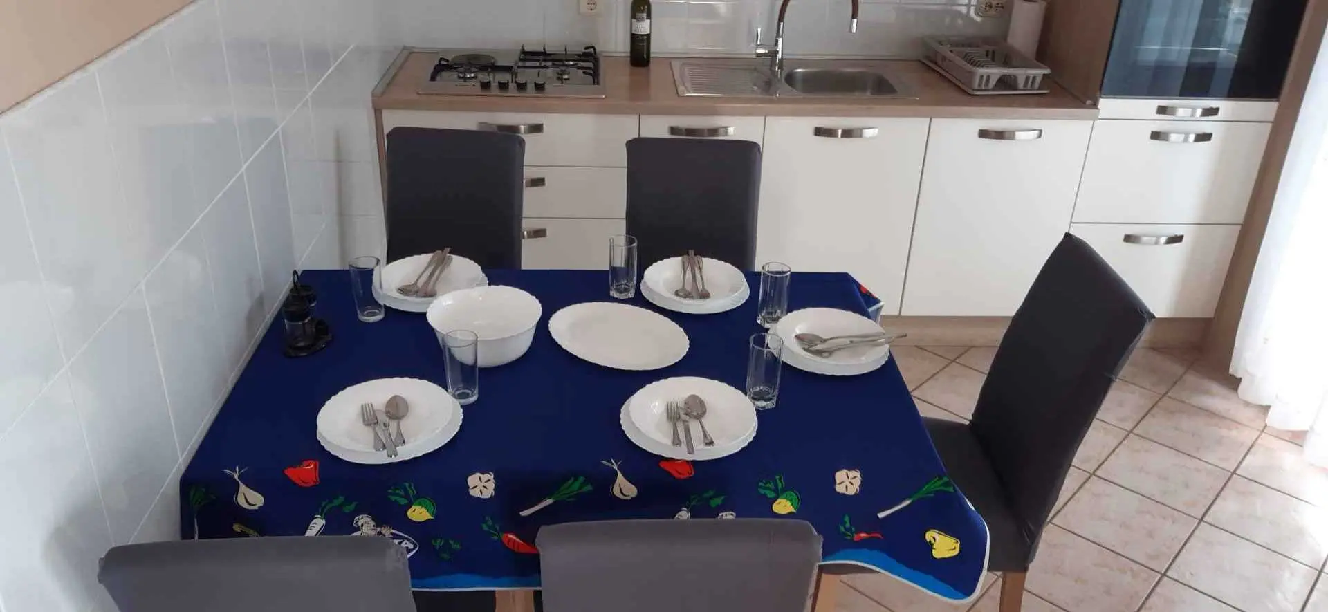 We rent a very nice apartment in Mandre on the island of Pag. Our house is by the sea, away from the sea for 3-5 minutes on foot. It is located on the first floor. It is equipped with everything families need for a comfortable stay. We have 2 bedrooms, living room, dining room, kitchen, bathroom and covered terrace for four adults and one child. In the backyard barbecue table and benches. The car can be parked in front of house.