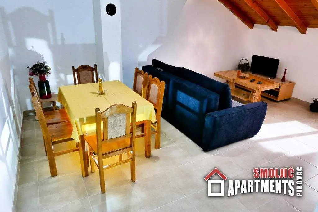 Apartments Smoljić in Pirovac offers accommodation in brand new two apartments in a quiet area of Pirovac. Free WiFi, a flat-screen TV, a private bathroom and a fully equipped kitchen with a dishwasher are available. Both apartments are surrounded by large terraces and a seating area. With us you can use free bikes and take them daily to the center of Pirovac. We would definitely recommend you to go by bicycle or on foot to the Vransko Lake Nature Park only 4 kilometers away from our apartment. There is a cycling, macadam trail around Lake Vrana. With us you have at your disposal Smoljić Grill where you can make various gourmet delicacies yourself. And if you need professional service at the Grill, so can you. Our Smoljić family produces Extra Virgin Olive Oil, premium Dalmatian red wine, homemade vines, and herbs, and from our garden, we can offer you homemade potatoes and onions. That's not all, we're also fishermen, and we own a small fishing boat. We can offer you fresh fish, but we can also arrange for a boat trip for a swim, and you can go with us to fish and try your luck.