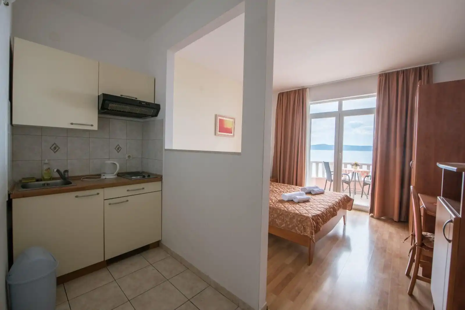 This unique accommodation is located close to all attractions, making it easy to plan your visit. Podgora is a quiet seaside town where you can enjoy a true Mediterranean climate. Staying with us, everything is within reach, as we are located right on the Riva. Every morning from the balcony you can enjoy the views of the endless blue and the sounds of seagulls while drinking your first morning coffee.