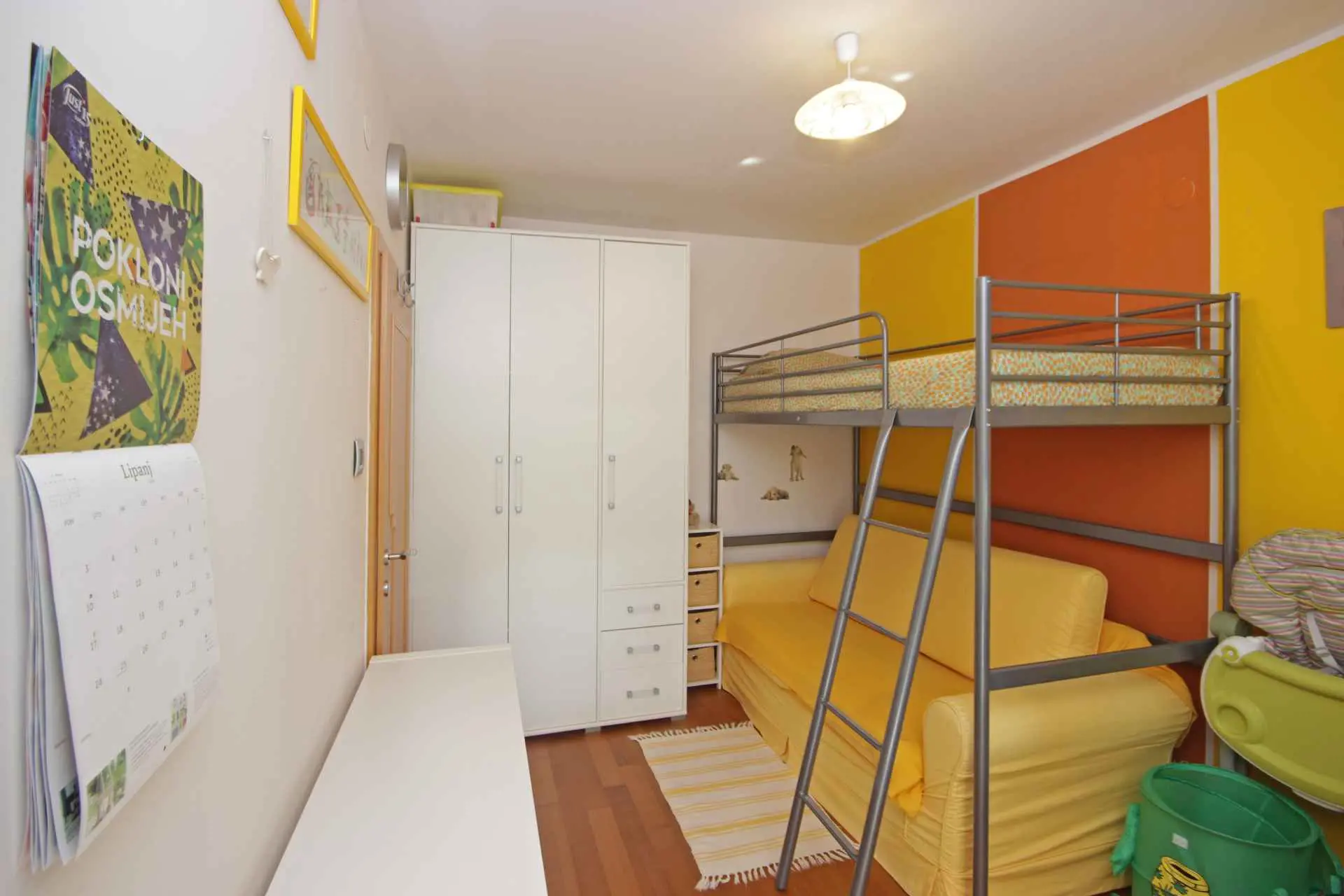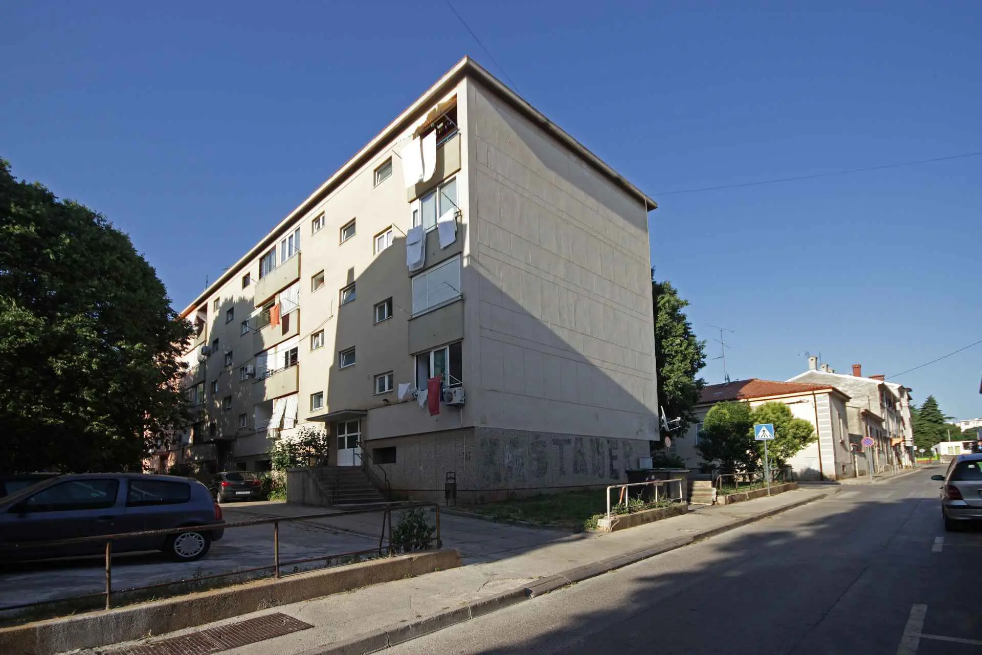 This cosy modern furnished apartment has a master bedroom (bed linen provided), a kids’ bedroom with a buk bed, livingroom, kitchen, bathroom (with towels), separate toillet and two covered balconies. It is situated on the 2nd floor of a flat, on great central location, in a quiet street, only 2 km from the beaches, 50 m from the grocery store and 5-10 minutes walk from all cultural and historical amenities, various city events, concerts, art exibitions, film, theatre and dance festivals and other gourmet day&night events. The location gives you the opportunity to easily explore the day life on open-air markets with fresh fruit, vegetable, fish, meet and other genuine local products, as much as the movement on bar and restourant terraces, the old town narrow streets and creative little shops. Every day evening events, concerts, shows and exibitions, late night shopping and live music will surely entertain you. Don’t miss the Lighting Giants – lights visual show in the central harbour on every night full hour. Grosery shops, ATM machine, farmacies, cinema, theatre are all on few steps, as well the main cultural and historical amenities, like the Roman Amphitheatre, Golden Gate and Forum (main square). Spectacular rocky and pebbly beaches are just 2 km far, easily reachable even with direct bus lines. Brijuni National Park, a paradise on Earth and Cape Kamenjak, protected landscape and southes point of our region are a must to visit for a unique experience of Istria. Pula has many signed bike routes, walking zones, tematic paths, tennis, football, basket courts, golf grounds. The taste and smell of traditional cusine, excellent vine, olive oil, truffle, honey, aromatic plants and scents are simple elixirs for spirit, body and soul. Transport to/from Pula airport offered, extra charged, upon request. Free parking available in the streets around the flat. The apartment is reacheable by stairs (no elevator).Suitable for business and leisure travellers. Late check-in/out. Extra baby cot and feeding chair available upon request, extra charged. Pets welcome, extra charged. No hidden prices (tourist taxes are price included). EXTRA CHARGES: Baby bed – 7 €/day. Pets – 7 €/day. Final cleaning-up of the apartment – 50€. The above mentioned prices include tourist taxes and sheets and towels (changed weekly). Payment of the total amount of the sistemation is upon arrival, with a 100 € damage deposit. If no damage was observed, the deposit is given back upon departure, after inspection of the apartment. The check-in is from 7 pm upon arrival and the check-out is until 5 pm on departure.