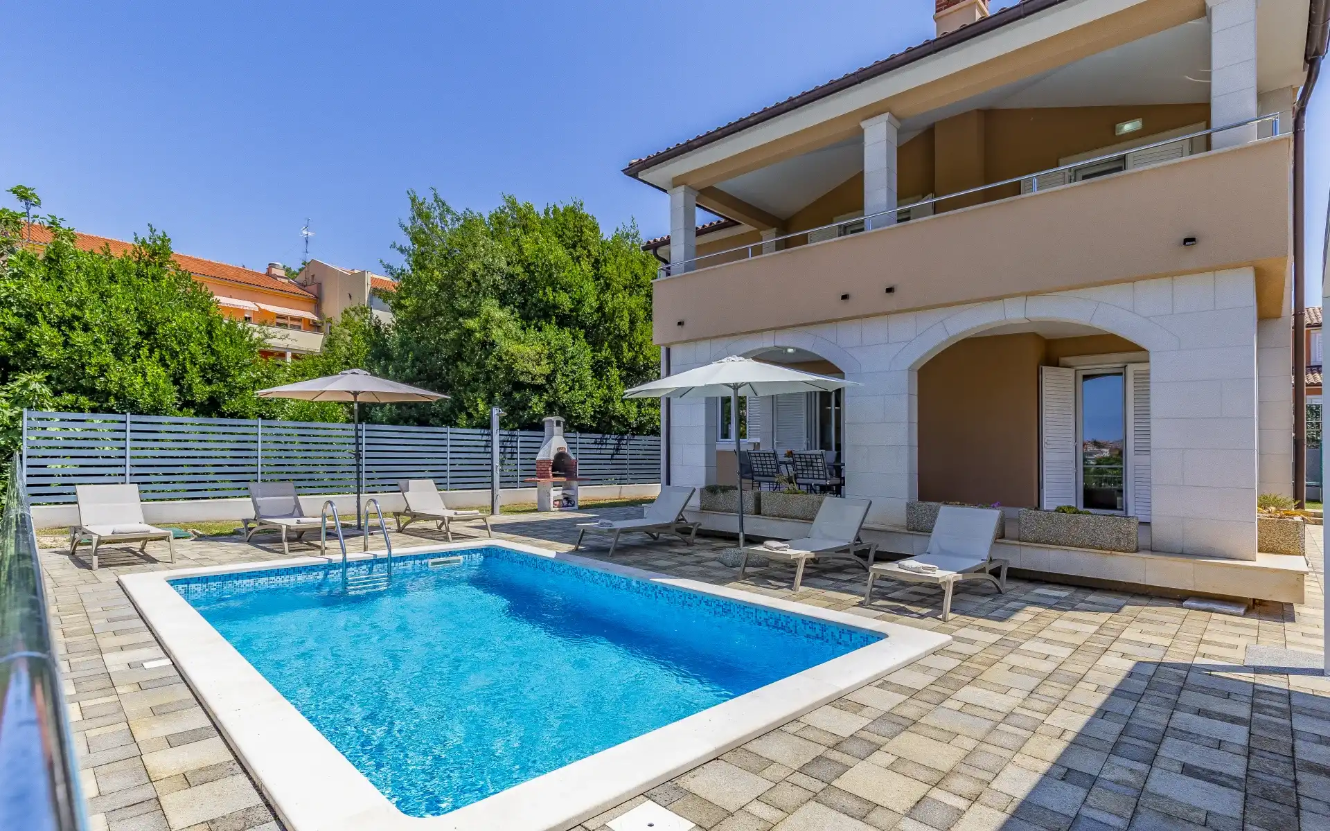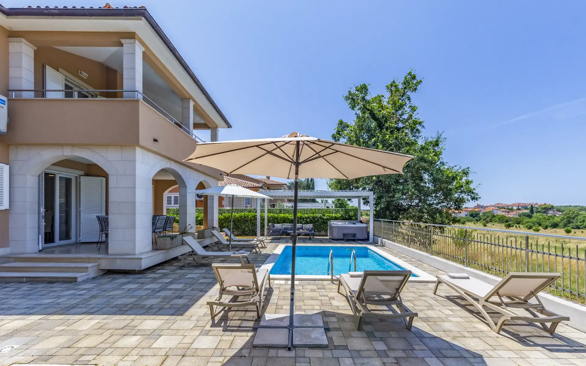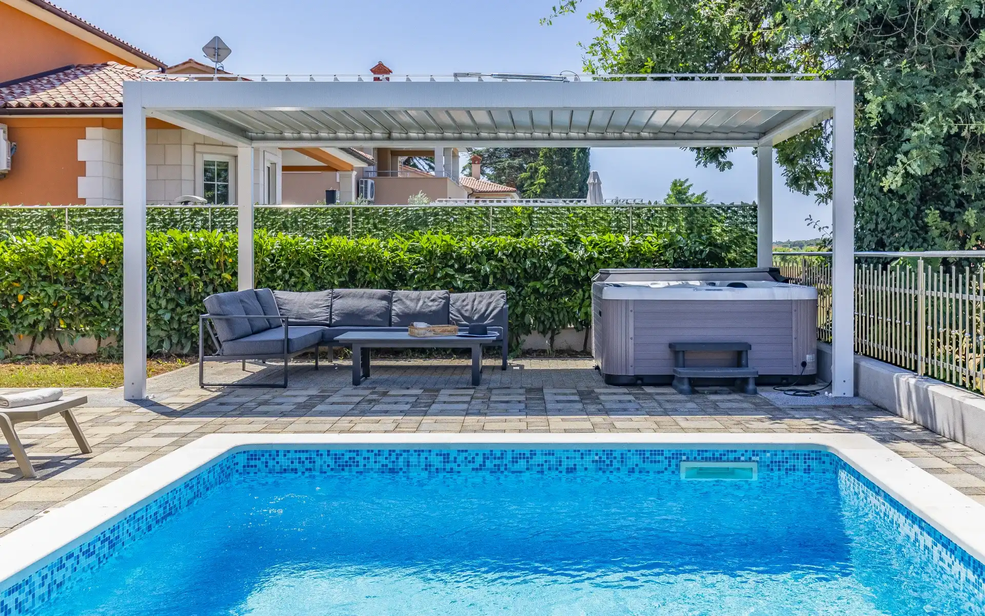 This complex consists of 6 villas. Each of them has its own fenced yard of 450m2, and the villas have an area of 136 or 169m2. Located in beautiful Pula, these elegant four-bedroom villas are designed for guests seeking privacy, comfort and a refined Mediterranean atmosphere. The villas feature four spacious bedrooms, a bright living room with direct access to the terrace, a dining area and a fully equipped kitchen with all the necessary appliances and utensils for a comfortable stay. The outdoor area offers complete privacy and includes a private pool, jacuzzi, sun loungers, a covered seating area and a barbecue, creating the perfect environment for relaxation and social gatherings. For additional entertainment, guests can enjoy table tennis, table football and a trampoline, making this villa a great choice for families and groups of friends. Pets are welcome upon request for an additional fee of EUR 10 per pet per night, payable in cash. The tourist tax is payable in cash upon arrival and amounts to: (1.4. - 30.9.) - EUR 1.60 per adult per night, EUR 0.80 per child (12-17 years) per night 1.10. - 30.4. - EUR 1.10 per adult per night, EUR 0.55 per child (12-17 years) per night Children under 12 years of age are exempt from this fee.