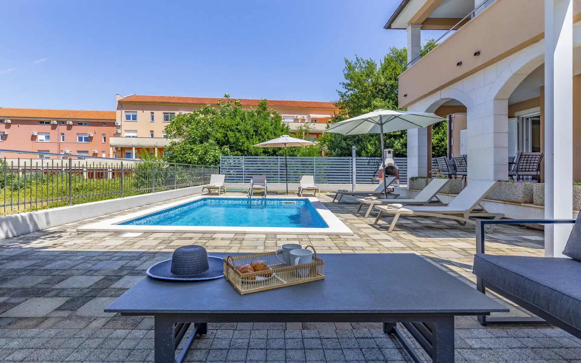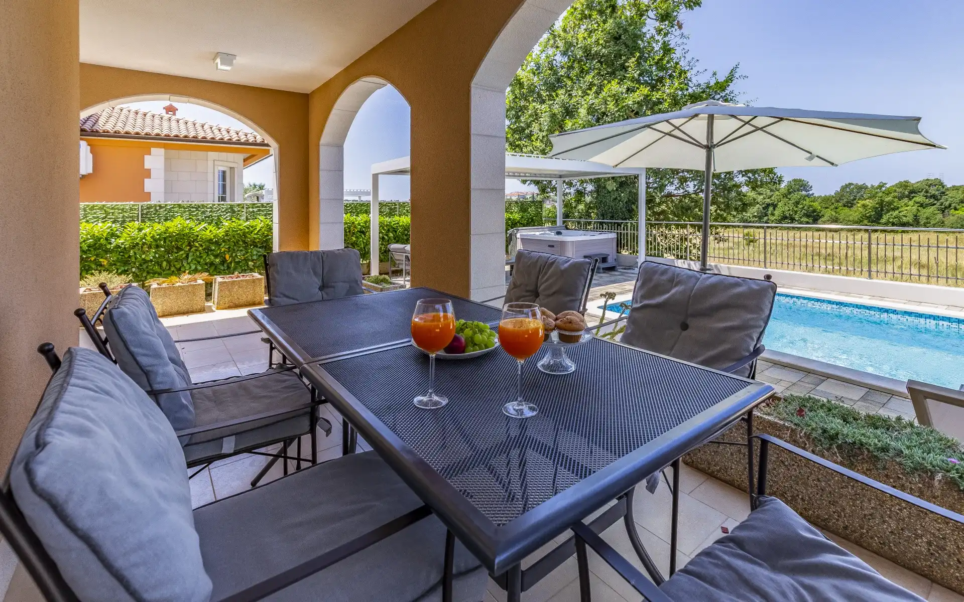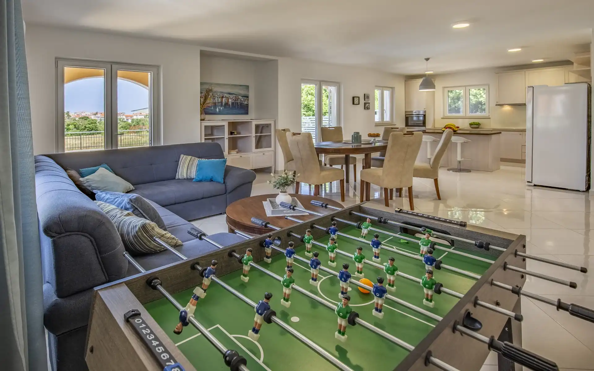 This complex consists of 6 villas. Each of them has its own fenced yard of 450m2, and the villas have an area of 136 or 169m2. Located in beautiful Pula, these elegant four-bedroom villas are designed for guests seeking privacy, comfort and a refined Mediterranean atmosphere. The villas feature four spacious bedrooms, a bright living room with direct access to the terrace, a dining area and a fully equipped kitchen with all the necessary appliances and utensils for a comfortable stay. The outdoor area offers complete privacy and includes a private pool, jacuzzi, sun loungers, a covered seating area and a barbecue, creating the perfect environment for relaxation and social gatherings. For additional entertainment, guests can enjoy table tennis, table football and a trampoline, making this villa a great choice for families and groups of friends. Pets are welcome upon request for an additional fee of EUR 10 per pet per night, payable in cash. The tourist tax is payable in cash upon arrival and amounts to: (1.4. - 30.9.) - EUR 1.60 per adult per night, EUR 0.80 per child (12-17 years) per night 1.10. - 30.4. - EUR 1.10 per adult per night, EUR 0.55 per child (12-17 years) per night Children under 12 years of age are exempt from this fee.