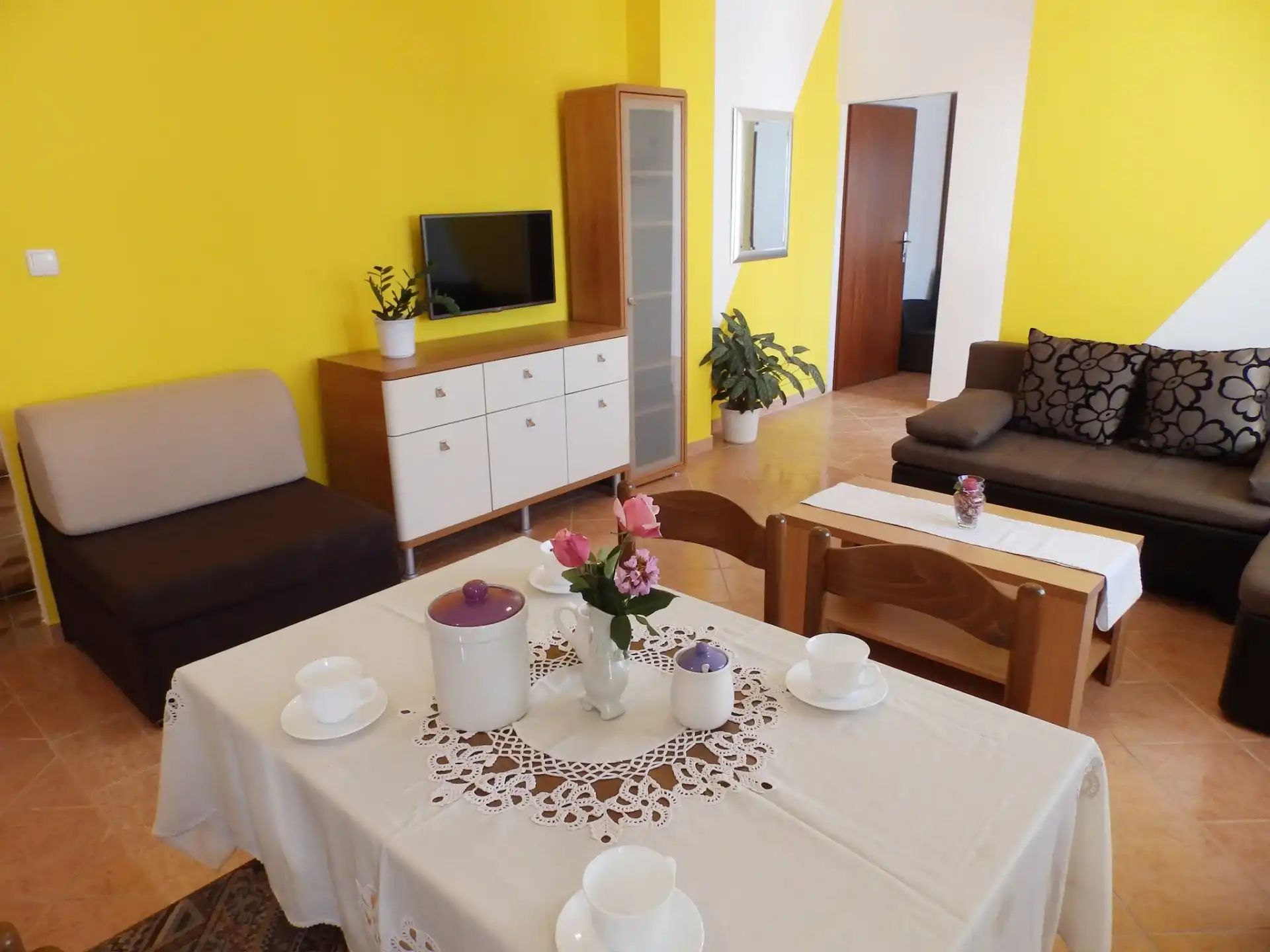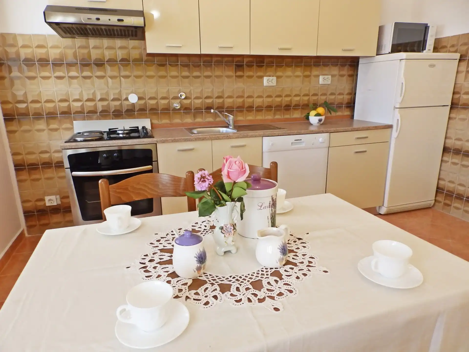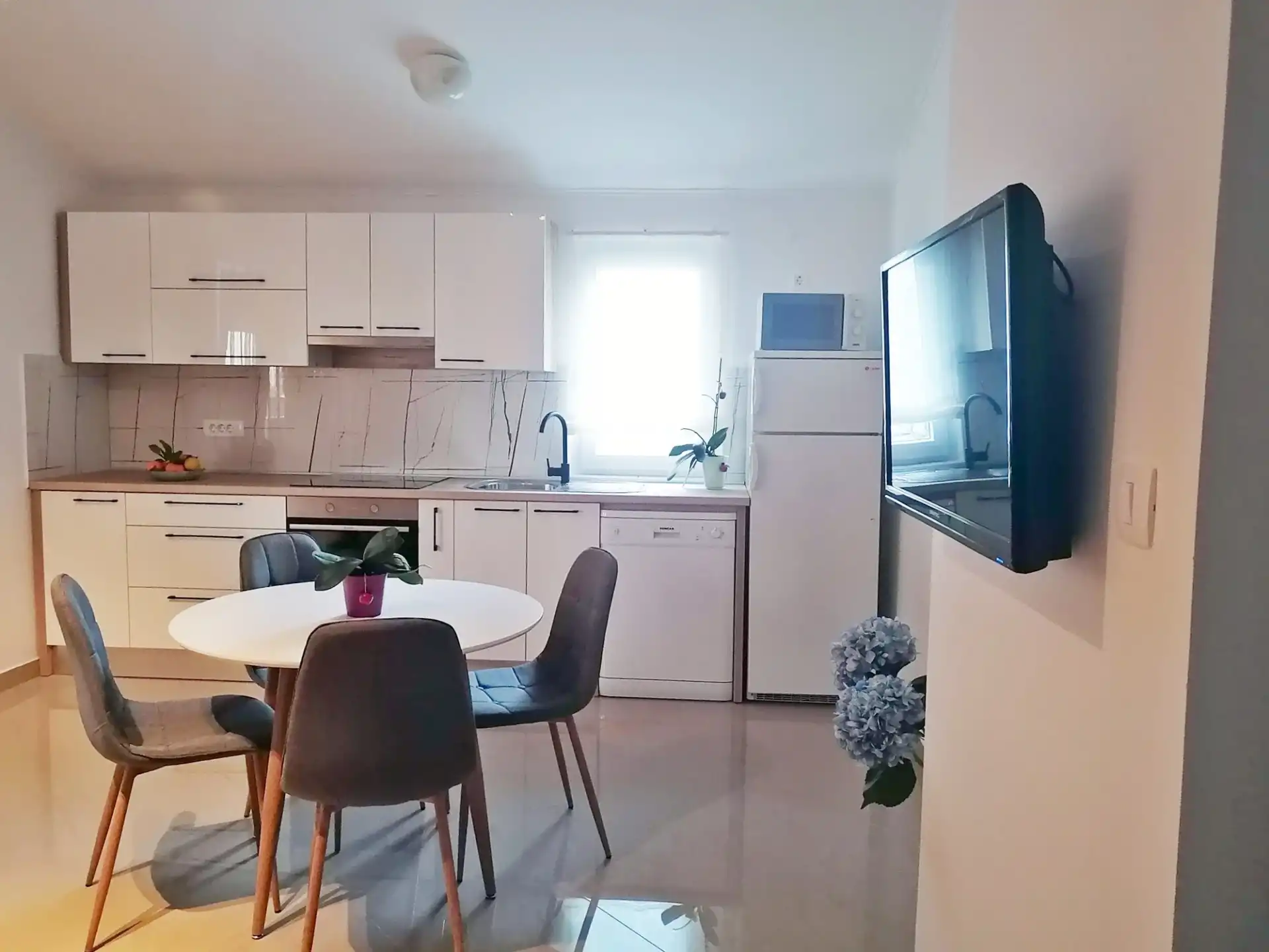 Apartments at Villa Jagoda are located in the pictouresque town Kampor on the Island Rab. This lovely apartments offer a perfect retreat for couples, families or friends seeking a comfortable and well-equipped holiday apartment just 200 metres from the beach. Beautiful outdoor spaces include a lovely terrace and shared garden. The property offers stunning views of both the sea and garden, creating a tranquil atmosphere. Apartments are fully equipped with all the necessary amenities. The open-plan kitchen includes a stove, oven, microwave, dishwasher, coffee machine, and all necessary kitchenware. The living room includes air conditioning in the lounge, a flat-screen smart TV with English and German channels, and comfortable seating areas. One pet is welcome with prior notice. The property also offers a boat-mooring. We kindly ask guests to let us know in advance if they'll be needing mooring. The pet fee and mooring cost 10 EUR per night each. Location: Conveniently located, Villa Jagoda is just minutes away from all the essential amenities. A supermarket, restaurant, and bus stop are all within 200 metres, while the historic town of Rab is just a short drive away. One parking space is available per apartment. Multiple beaches can be found within 200 -500 meters.