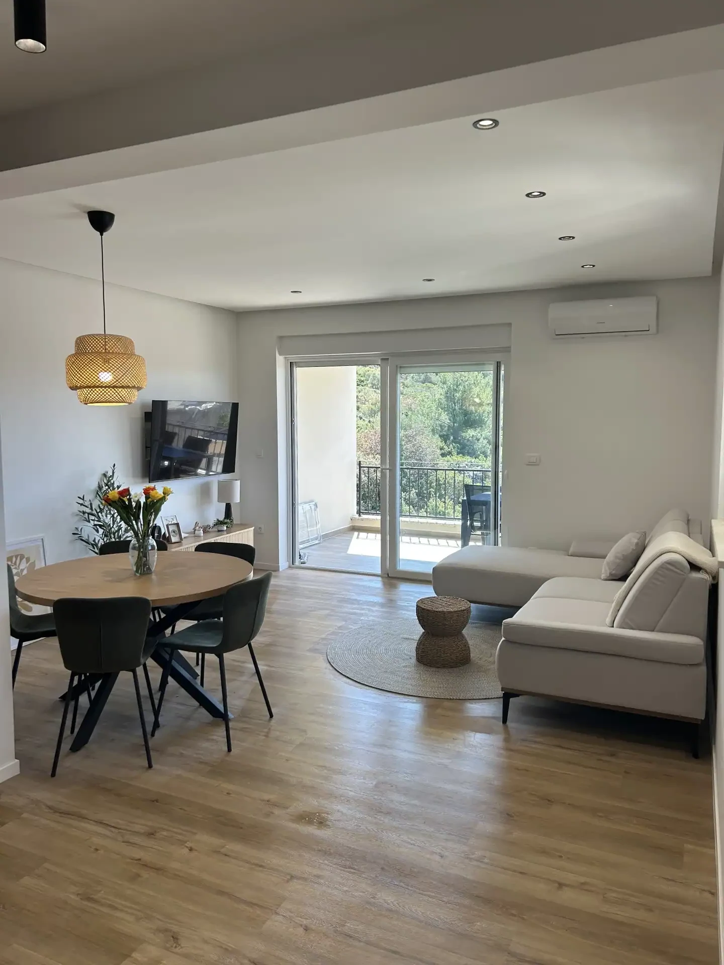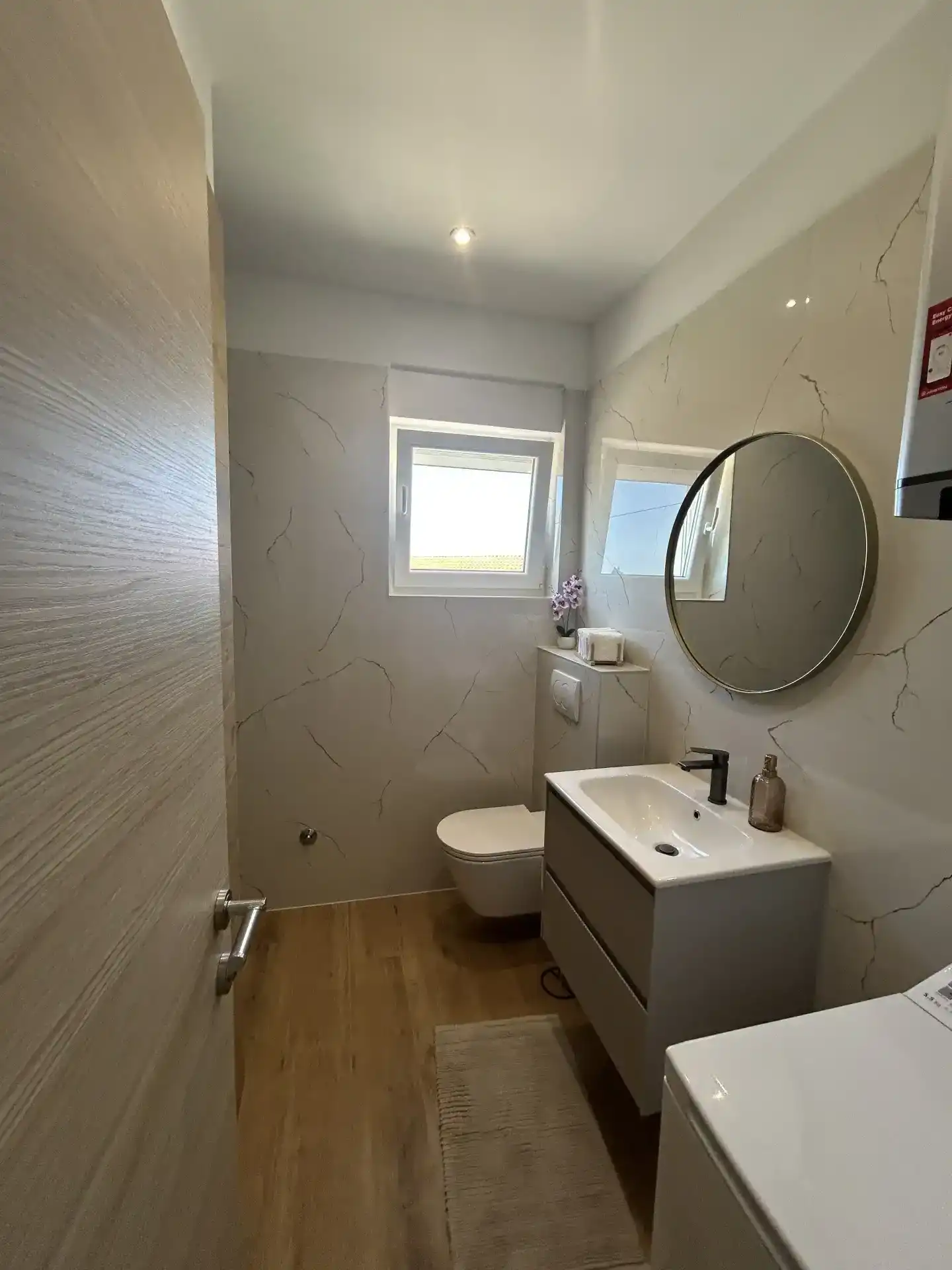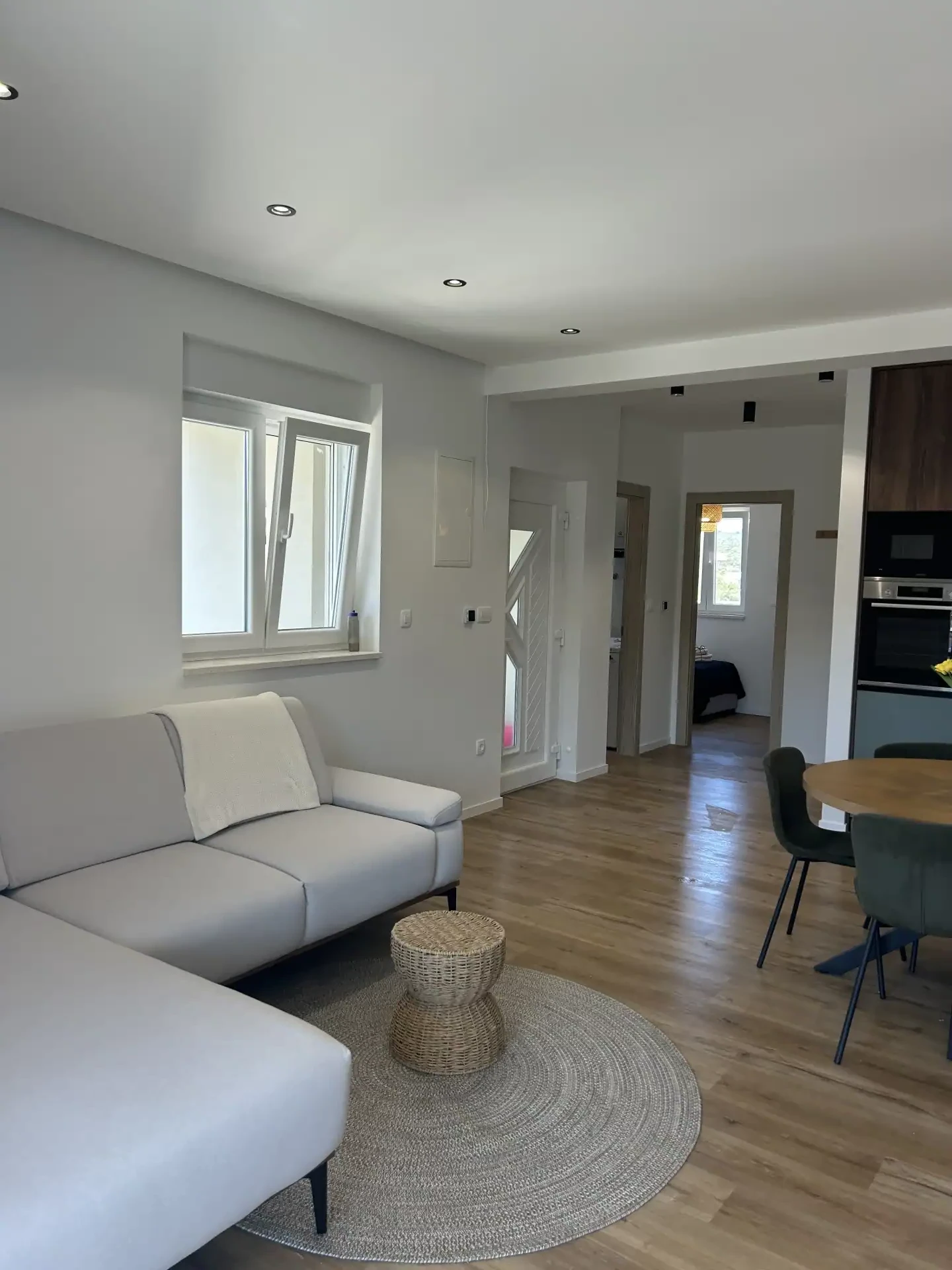 Experience a premium getaway in this newly renovated apartment, ideally located in one of the most desirable areas of Rogoznica. This elegant apartment features two spacious bedrooms and is perfect for up to 4 guests seeking a blend of comfort, privacy, and refined ambiance. A true highlight is the large, sunlit terrace offering a captivating south-facing view—where the sea gently meets the horizon in the distance, while mountains rise behind the apartment, adding a unique sense of exclusivity and tranquility. The interior is thoughtfully designed with attention to detail, combining modern style with functionality. The apartment is fully equipped with all the amenities needed for a carefree and comfortable stay, offering the perfect balance between luxury and a home-like atmosphere. Guests have access to multiple secured parking spaces, adding to the overall convenience and ease of their stay. If you are looking for the perfect retreat that combines elegance, peace, and stunning views, this apartment in Rogoznica will exceed your expectations.