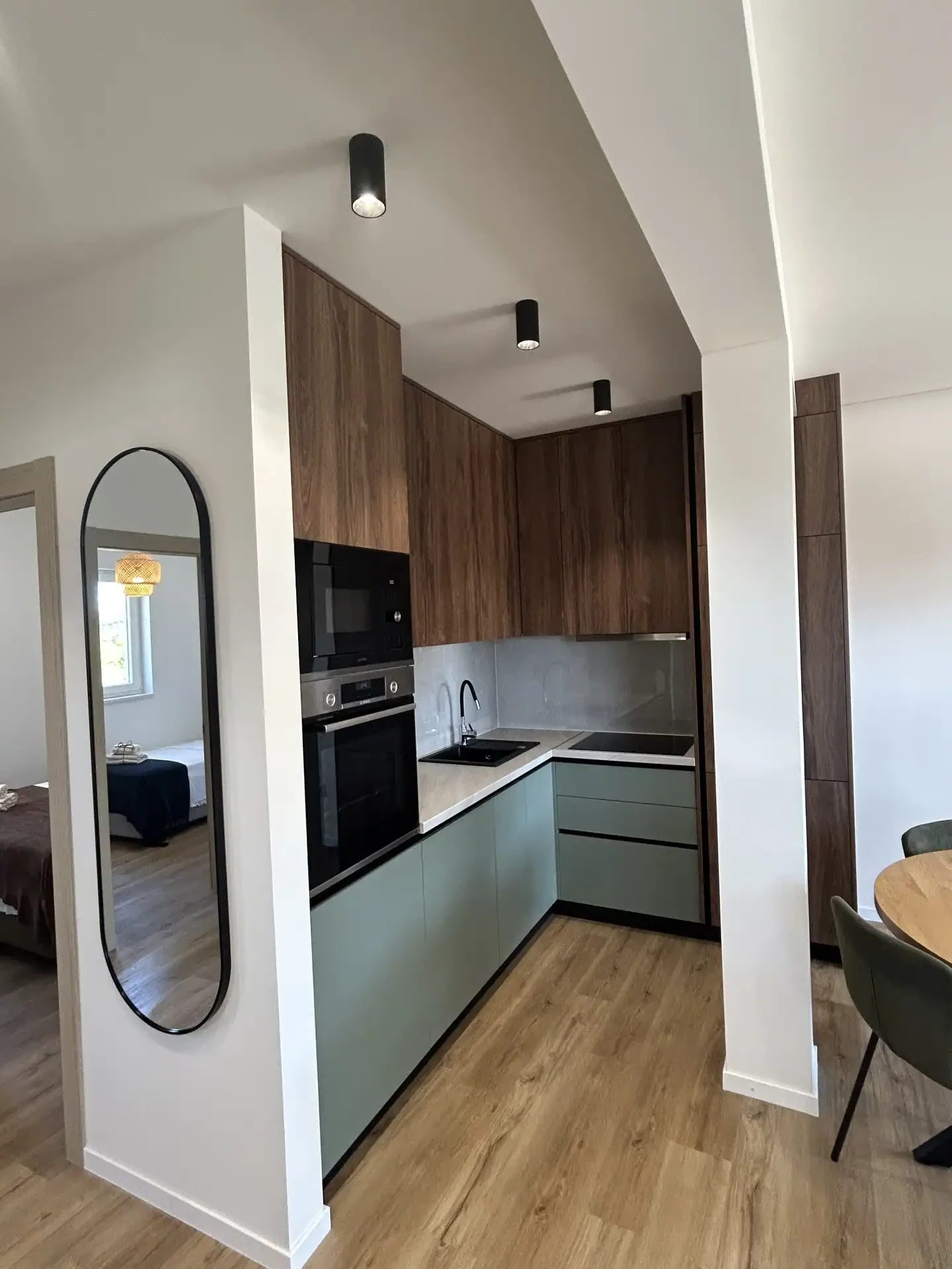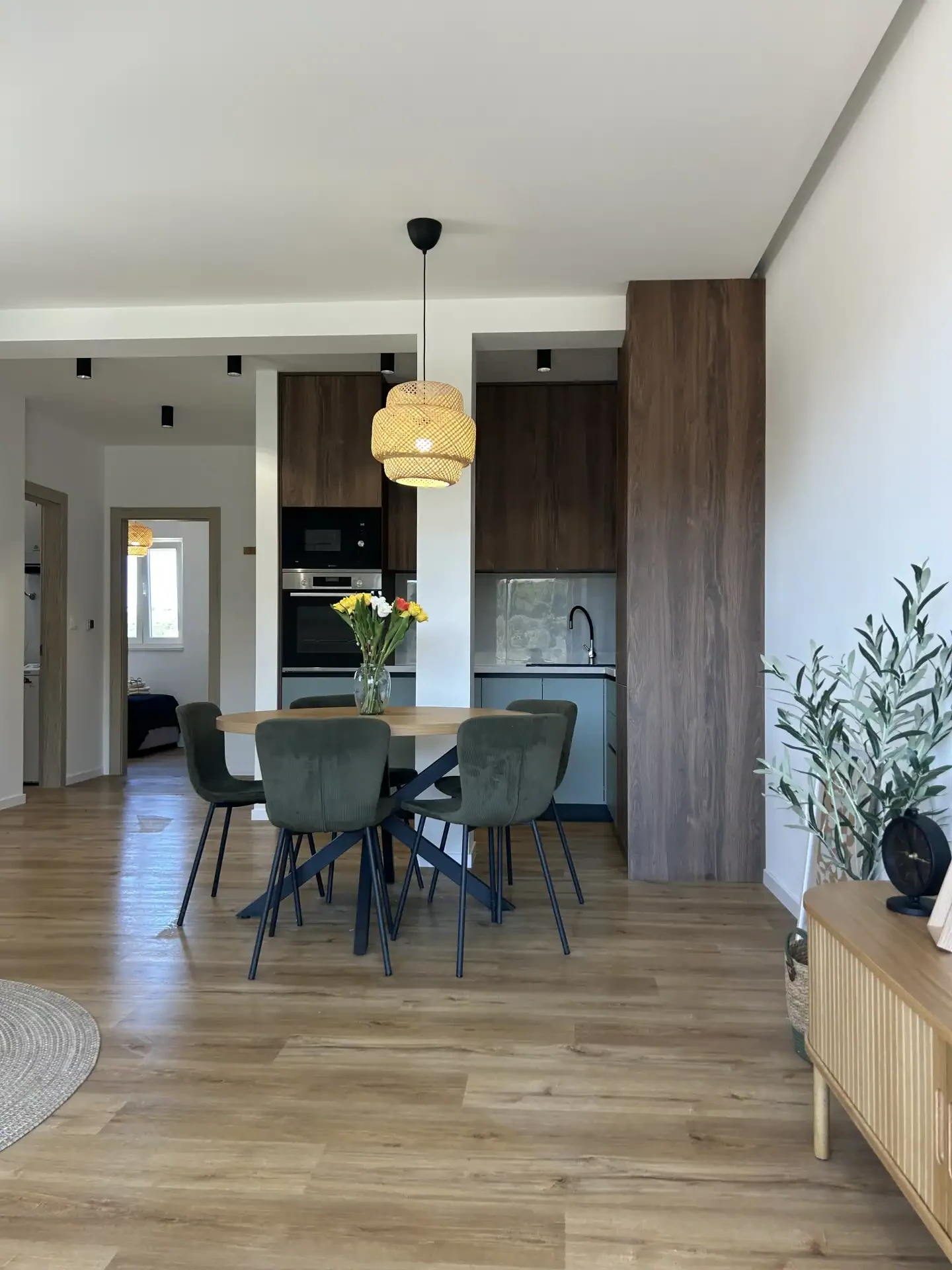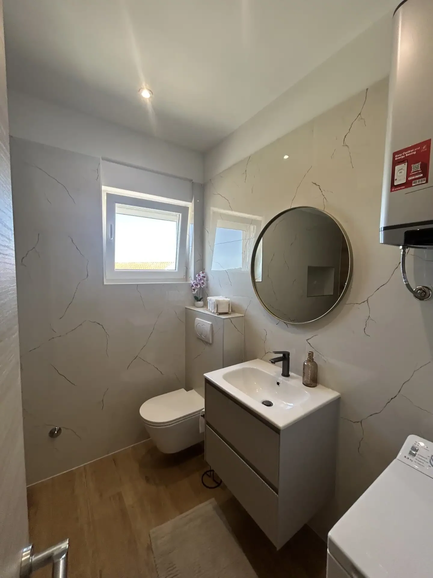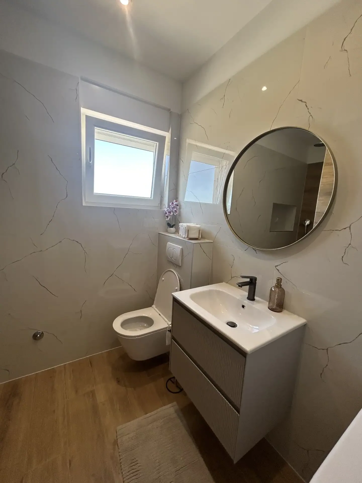 Experience a premium getaway in this newly renovated apartment, ideally located in one of the most desirable areas of Rogoznica. This elegant apartment features two spacious bedrooms and is perfect for up to 4 guests seeking a blend of comfort, privacy, and refined ambiance. A true highlight is the large, sunlit terrace offering a captivating south-facing view—where the sea gently meets the horizon in the distance, while mountains rise behind the apartment, adding a unique sense of exclusivity and tranquility. The interior is thoughtfully designed with attention to detail, combining modern style with functionality. The apartment is fully equipped with all the amenities needed for a carefree and comfortable stay, offering the perfect balance between luxury and a home-like atmosphere. Guests have access to multiple secured parking spaces, adding to the overall convenience and ease of their stay. If you are looking for the perfect retreat that combines elegance, peace, and stunning views, this apartment in Rogoznica will exceed your expectations.