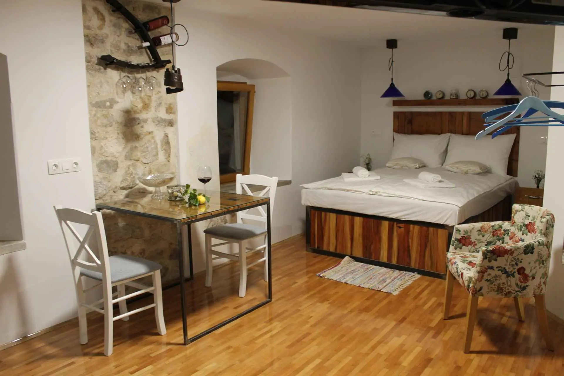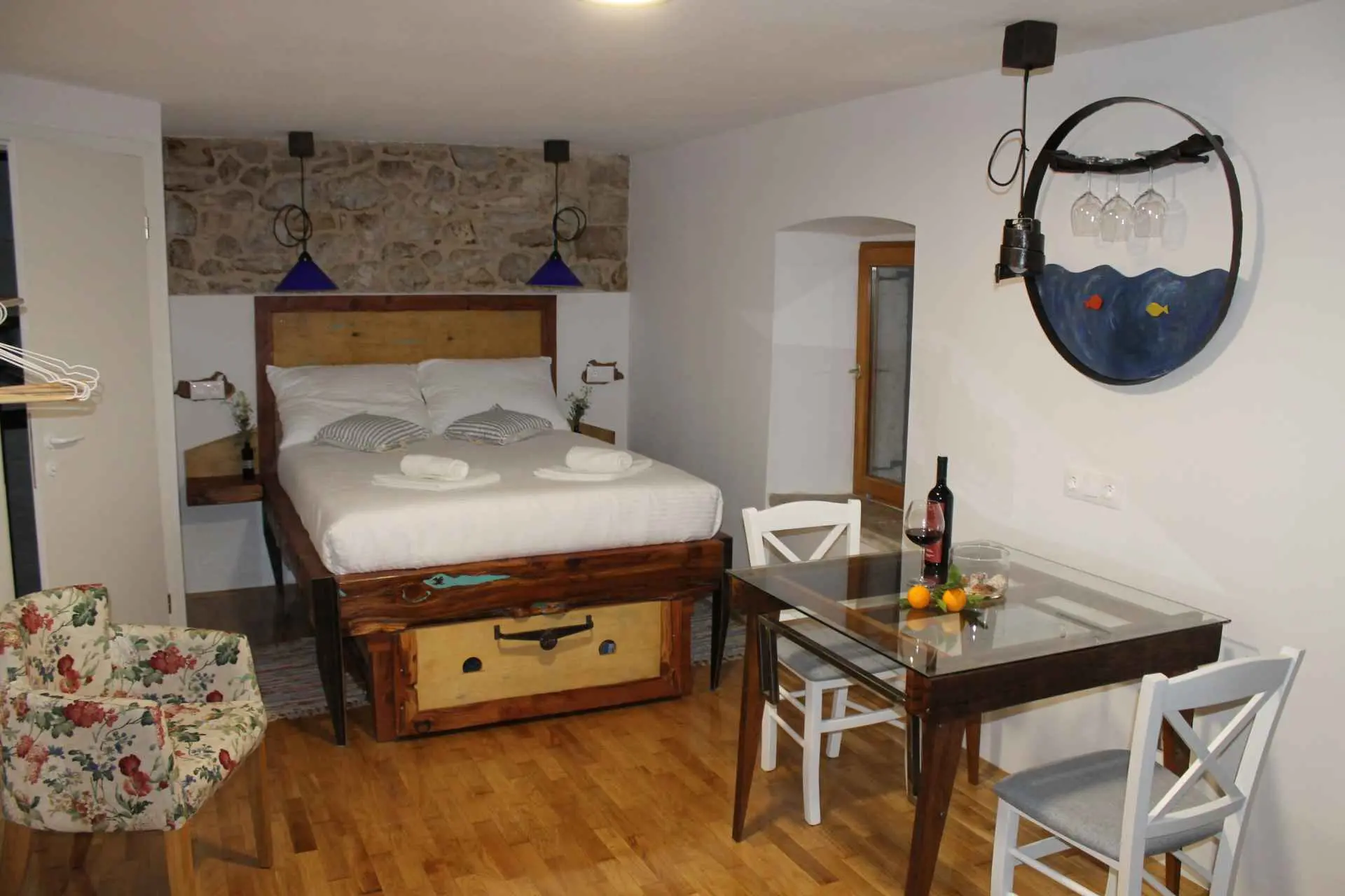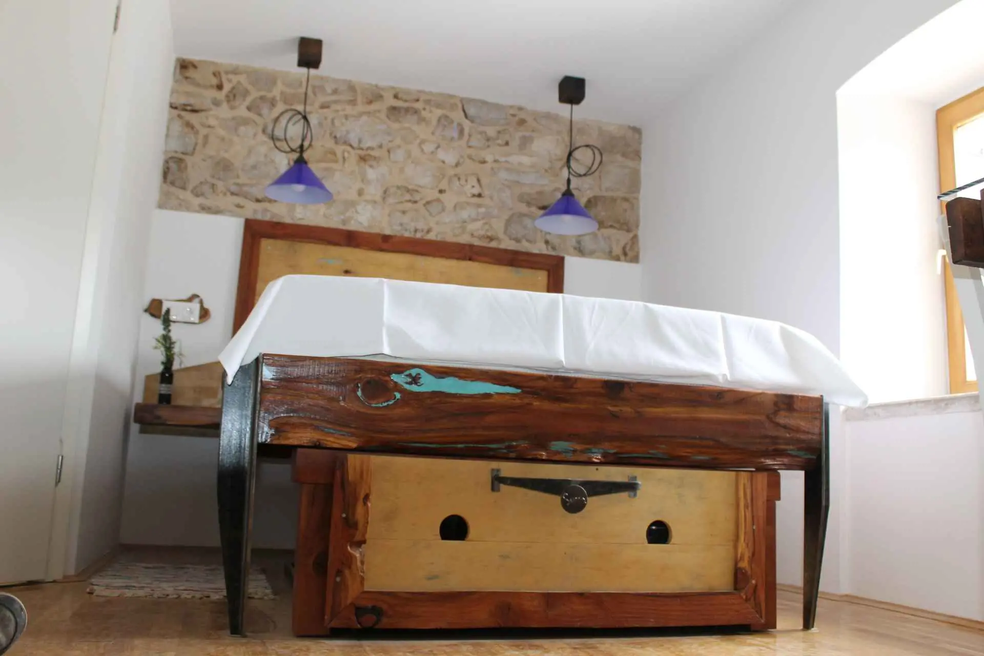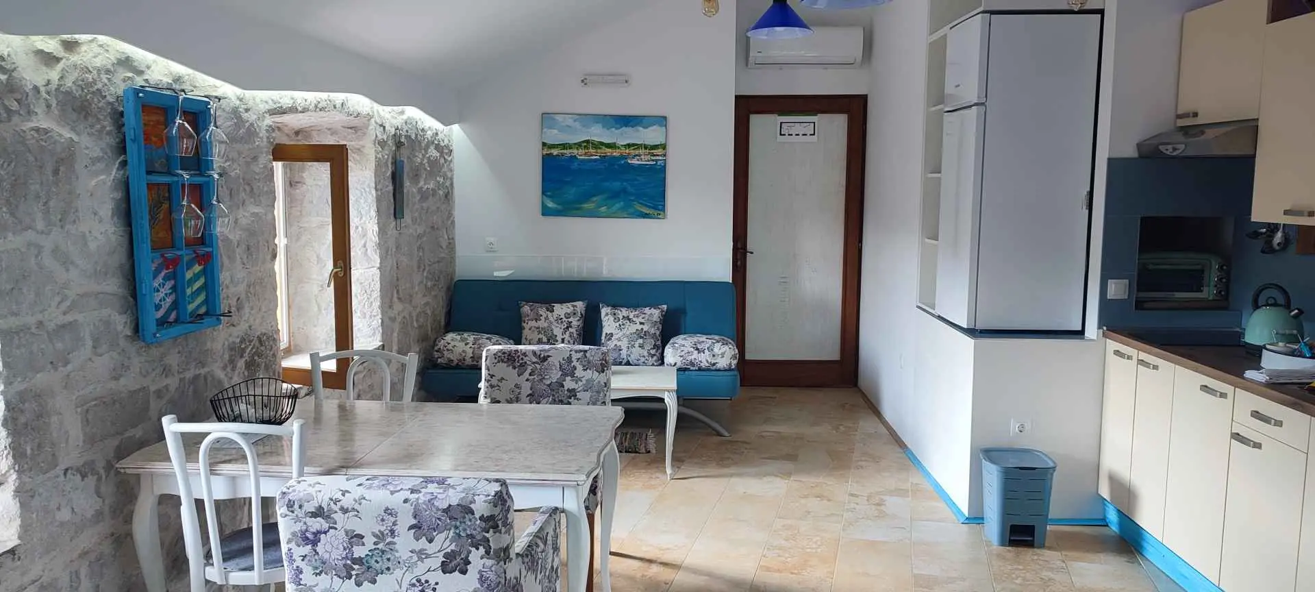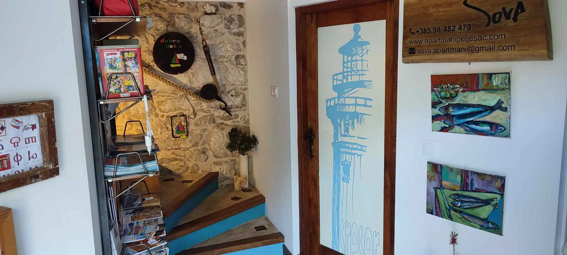The traditional stone construction, restored so that it looks firmly today rooted in its place, it exudes a serenity that should be experienced. The oasis of peace of the Sova apartment can be reached in a ten-minute drive from the newly built Peljesac bridge, while beaches and the blue sea are a five-minute walk away. In the immediate vicinity is a secluded, romantic cove with crystal clear sea just for you. The terraces are covered with Mediterranean greenery and filled with the scent of the laurel forest that surrounds them. We invite you to spend your vacation in the simple and comfortable accommodation of the Sova apartments, in a traditional stone house equipped with everything a modern guest needs, where tradition still lives today.