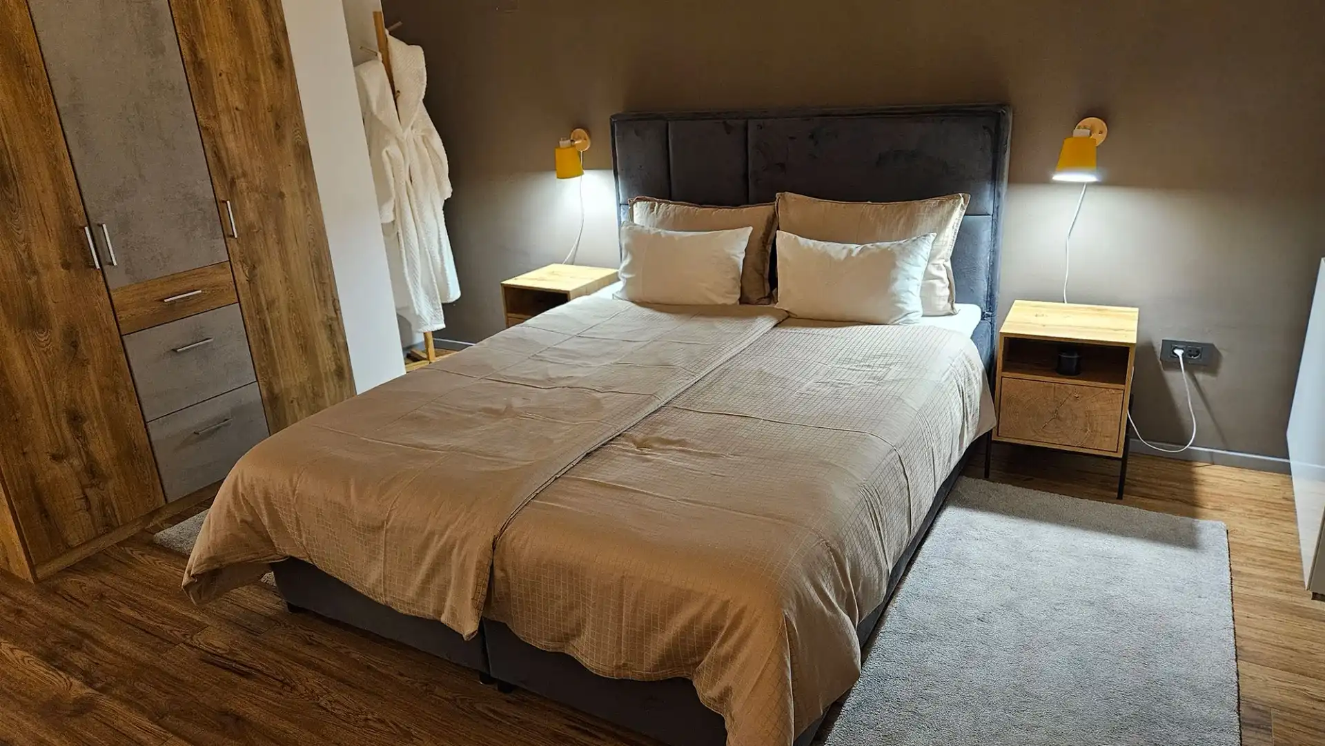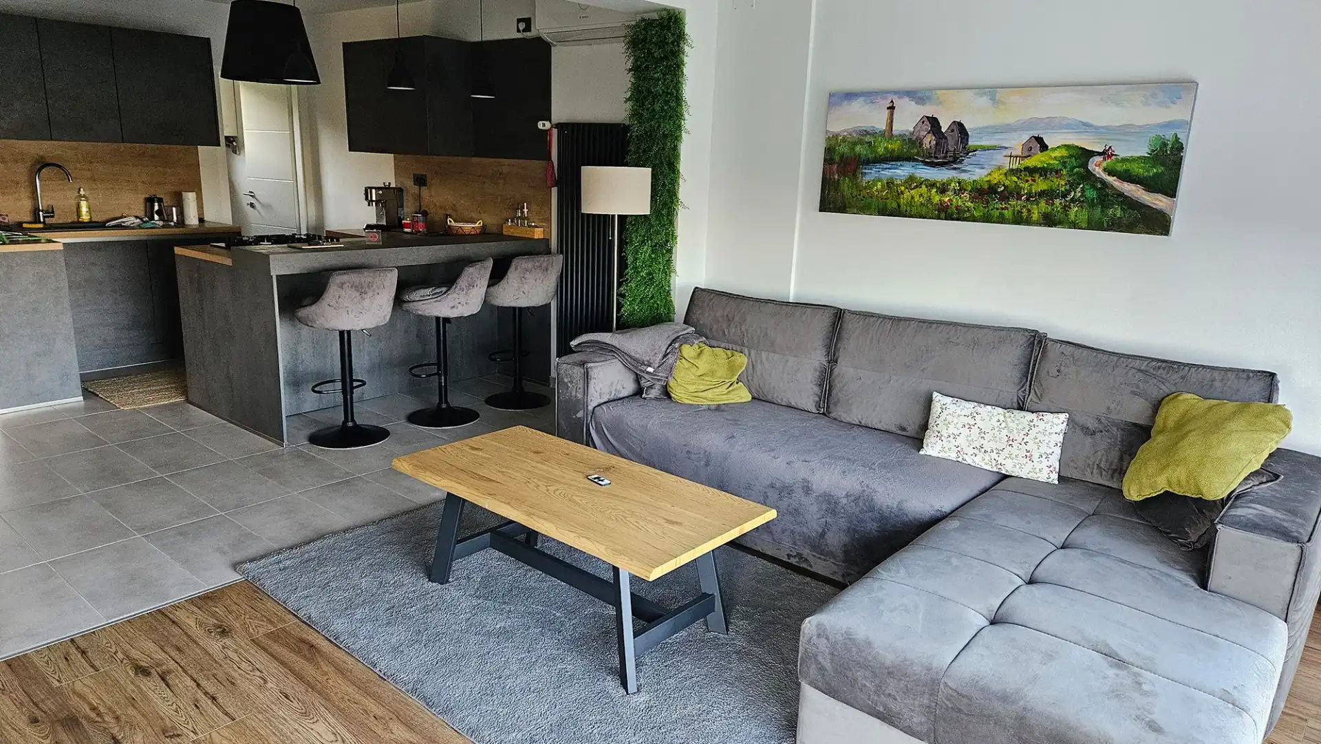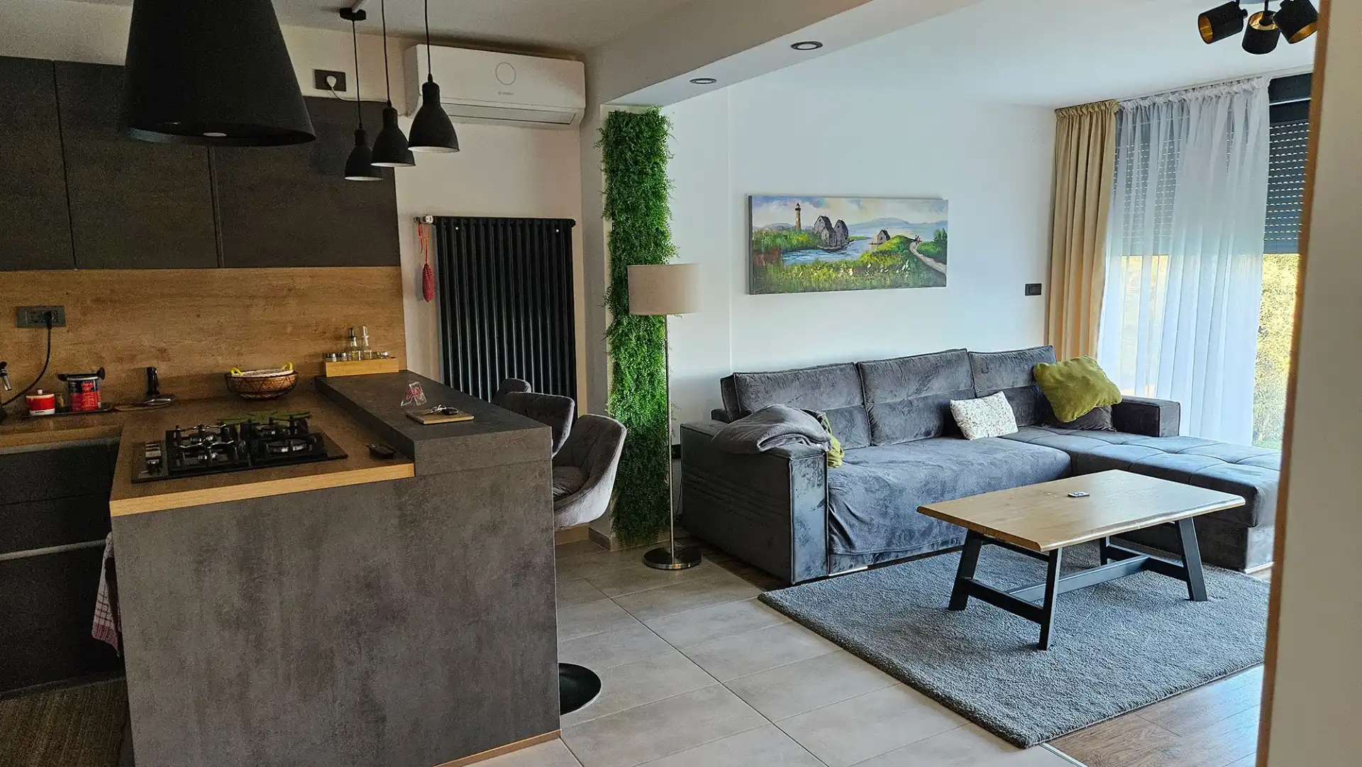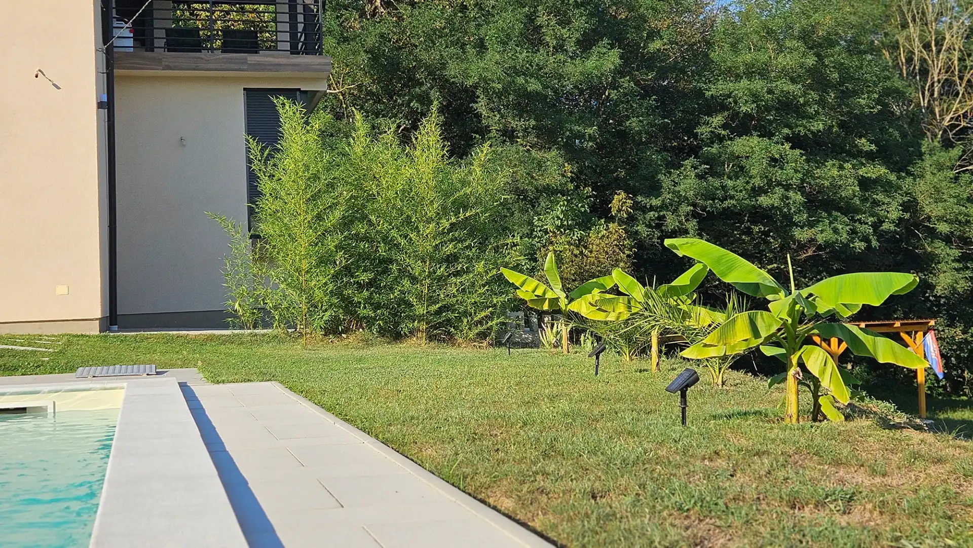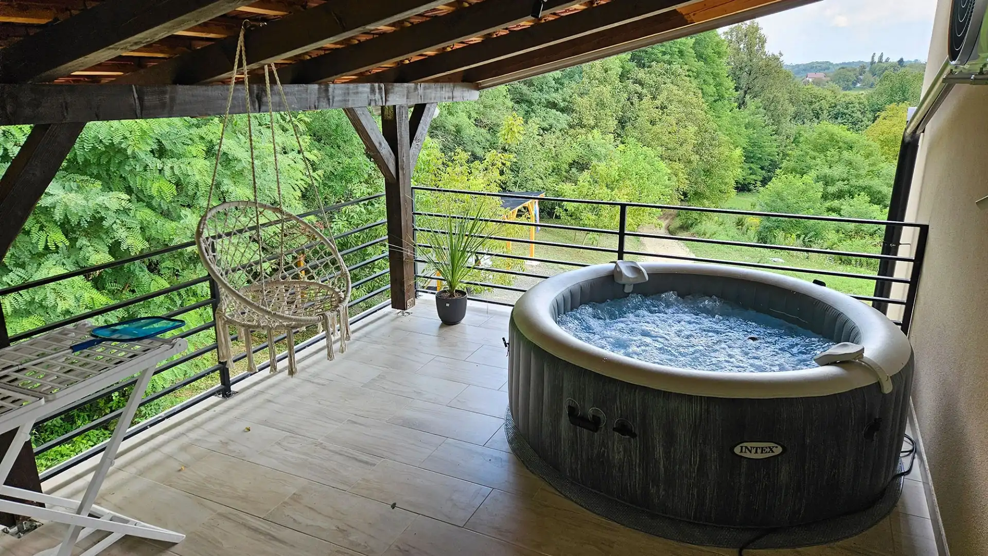 - Detached house 105m2 - Two terraces - Two bedrooms + living room (4+2) - Baby cot - Living room with kitchen (view of the forest and nature) - Bathroom with toilet - Separate toilet on the first floor - Hall - Gas central heating - Air conditioning 2x - TV x2 - Playstation 5 - Children's wooden toys - Yard 1500m2 - Children's park with swings, climbing frames and a slide - Hot tub for two people - outdoor - Heated pool 7x3.5m (1.5. - 1.10.) - Two terraces - Garden kitchen fully equipped (grill with equipment, sink with cold and hot water, fridge with freezer, electric oven, gas and electric stove, table with 8 seats, dishes, utensils, cutlery, basic spices - Sun deck with deck chairs, umbrellas and solar shower -