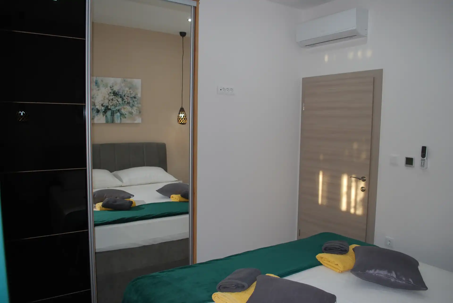 We are located in a quiet place surrounded by green olive trees near the sea and yet close to Zadar and numerous national parks. Zadar airport is only a 15-minute drive away. The facility is located next to the main road, so it's easy to find us. Free parking is provided. The beach, restaurant, bus station and market are only a 2-minute walk away. Friendly hosts, a warm family atmosphere and immaculately clean accommodation is what we offer you! Welcome!