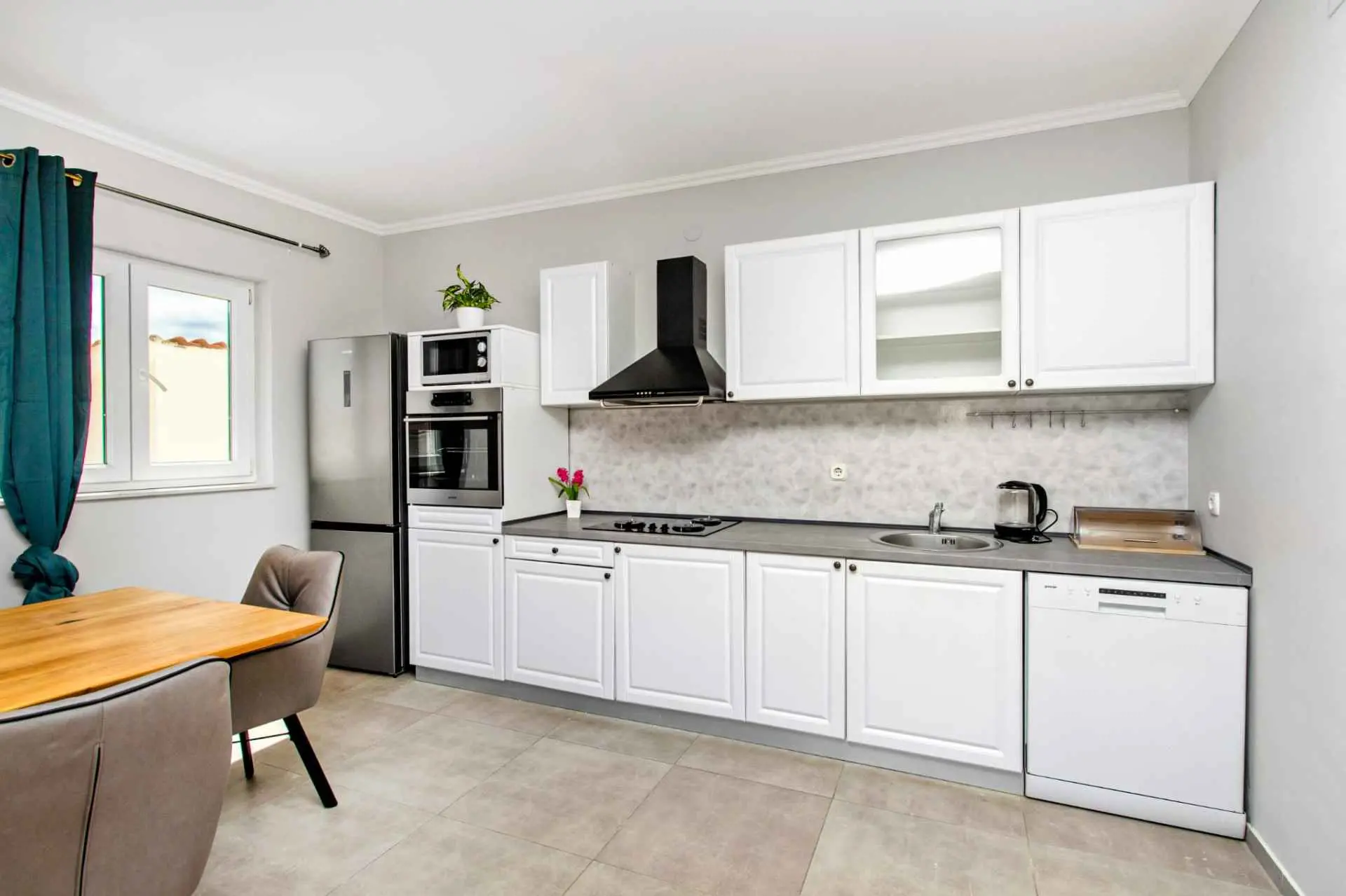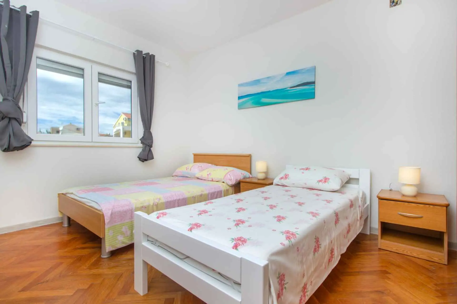 Apartments Alaga are located 200 m from the beach. They offer four apartments with a common garden and BBQ facilities. WiFi and Air conditioning are free of charge. Apartments Alaga are situated in a beautiful coastal town Tribunj in Šibenik county, surrounded by historical towns and magnificent national parks. Beach is 200 m away. Market is 250 m away. Restaurant is 240 m away. Caffe bar is 450 m away. Vodice are 4 km away. Shopping Center is 16 km away. Old Town Sibenik is 16 km away. National Park Krka is 26 km away. Lake Vrana is 32 km away. Airport Zadar is 68 km away. Apartment B4+1 is on the second floor. Studio Apartment C2 and D2 are on the first floor. Studio Apartment E are on the ground floor. WiFi and Air conditioning are free of charge. Smoking is allowed only outside. Pets are allowed with a charge of 7 euros per night, it needs to be paid to the owner upon arrival. Heating in winter is paid additionally depending on consumption. Parking, yard and BBQ facilities are shared by all units of this property.