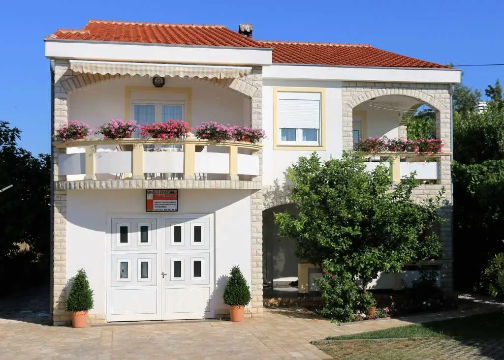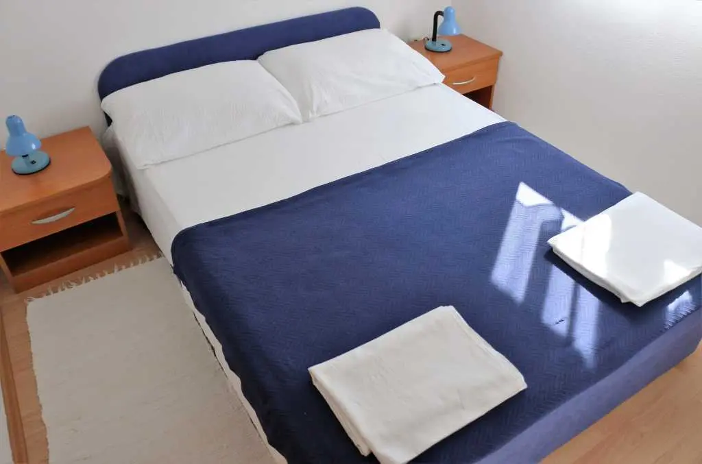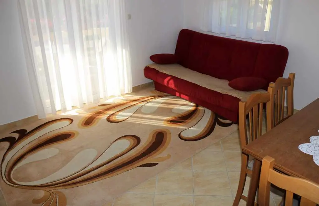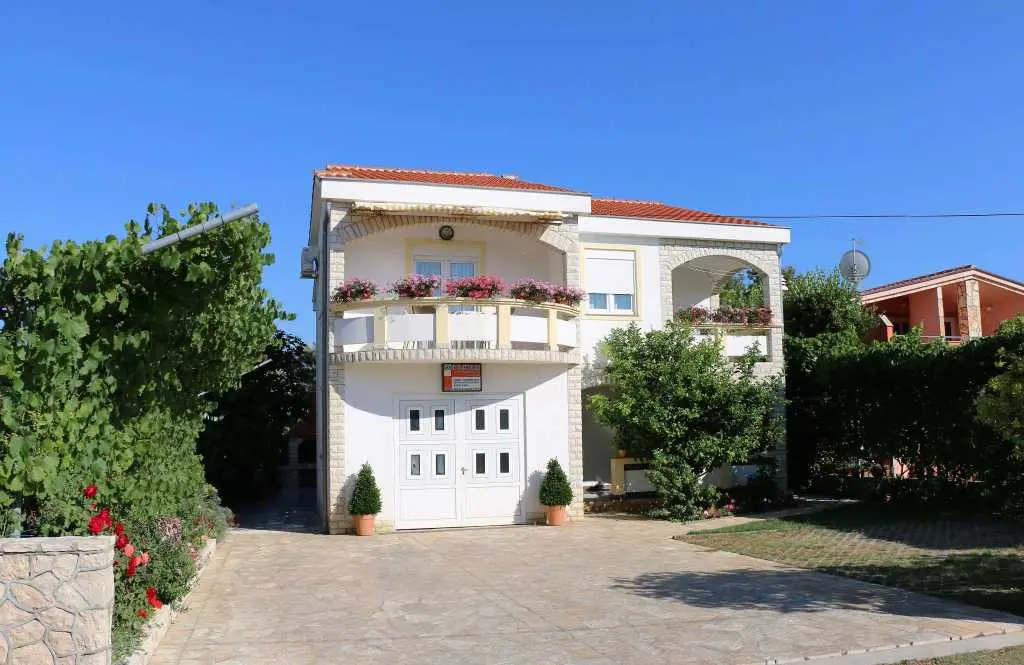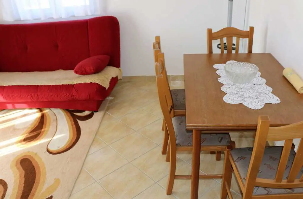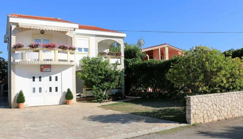 Apartments Memić (40 m2 and 50 m2) for 2-4 persons on the first floor of the house are divided in a living room, dining room and kitchen, double room with a double bed and a bathroom with a shower. In the living room there is a sofa bed for two more persons. From the living area you can reach onto roofed and furnished balcony of 9m2. Air conditioning, satellite TV, children's cot, private enter, parking on property and barbacue are just some of amenities that are available to the guests. Beautiful main beach Jadro that ensures fun for kids and grown ups is just 200 m from the property. Center of the island Vir is 200 m away and supermarket is just 80 m from the house.