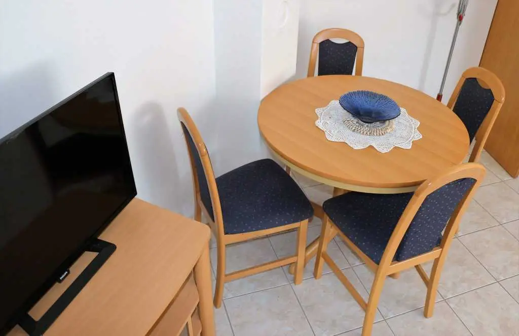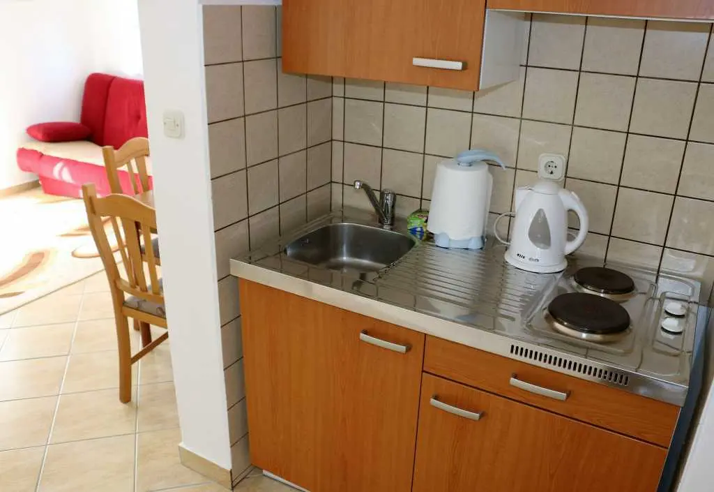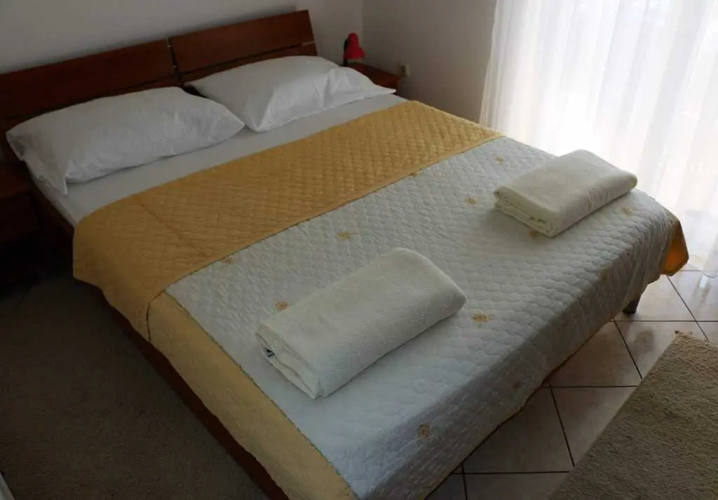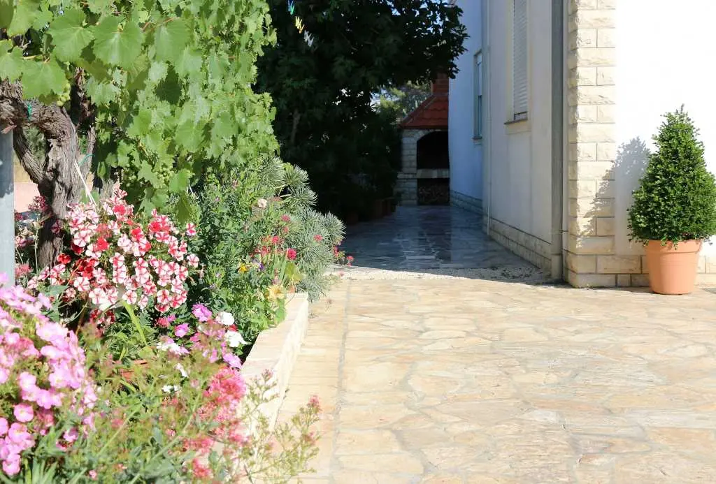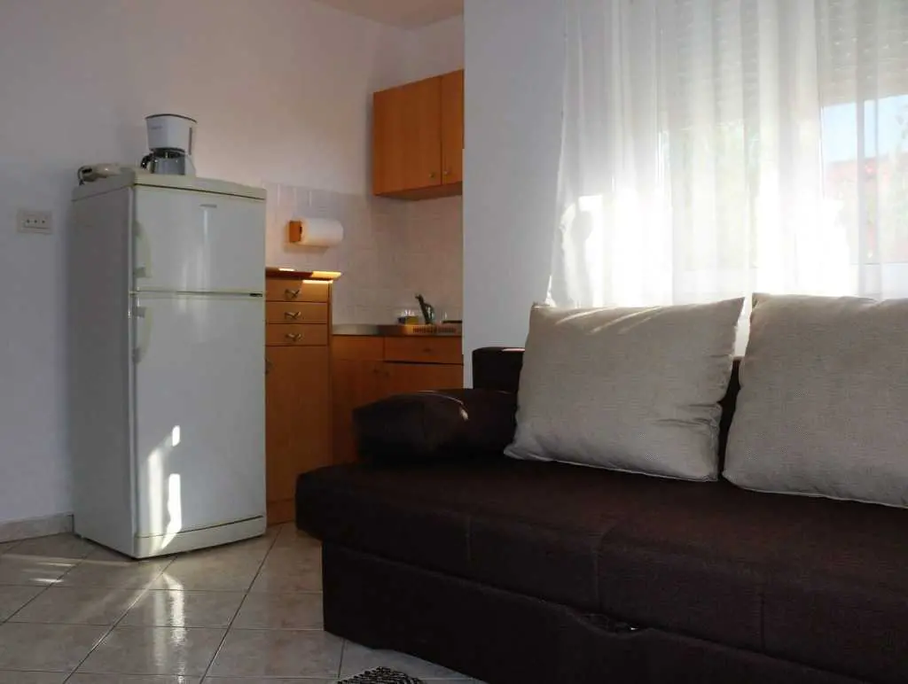 Apartments Memić (40 m2 and 50 m2) for 2-4 persons on the first floor of the house are divided in a living room, dining room and kitchen, double room with a double bed and a bathroom with a shower. In the living room there is a sofa bed for two more persons. From the living area you can reach onto roofed and furnished balcony of 9m2. Air conditioning, satellite TV, children's cot, private enter, parking on property and barbacue are just some of amenities that are available to the guests. Beautiful main beach Jadro that ensures fun for kids and grown ups is just 200 m from the property. Center of the island Vir is 200 m away and supermarket is just 80 m from the house.