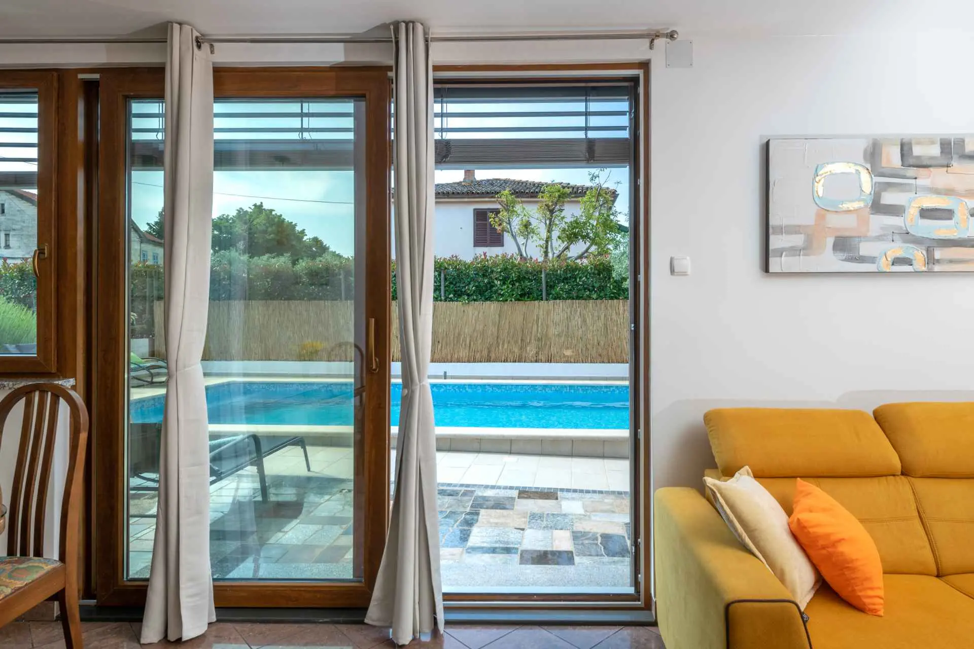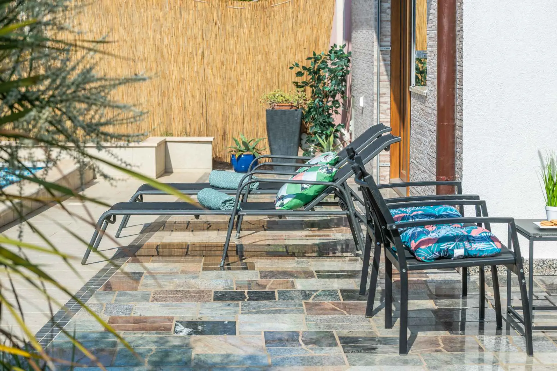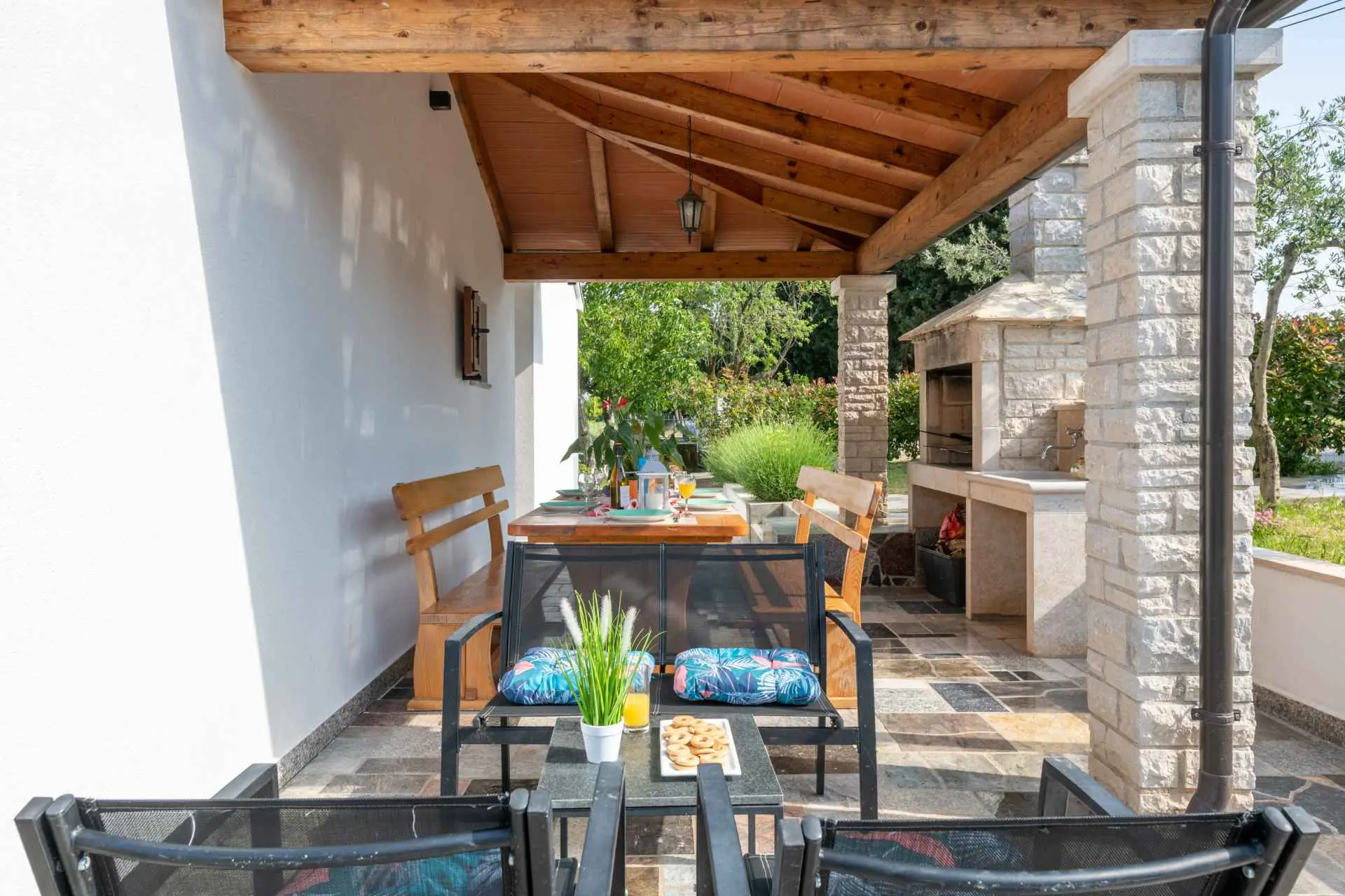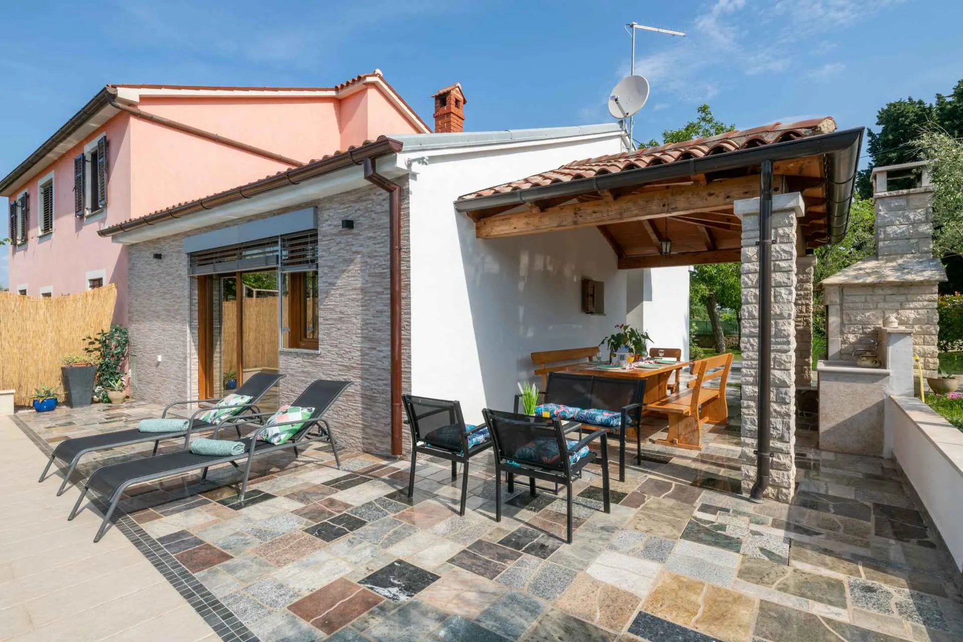 Discover Charming Holiday Home Mare, a family-friendly retreat nestled in the picturesque town of Vodnjan. This spacious 85m² house comfortably accommodates up to 5 guests, offering a perfect blend of comfort and convenience for families and friend groups. The house boasts a private swimming pool spanning 32m², providing a delightful space for relaxation and fun. Enjoy the beautifully landscaped garden and furnished terrace, ideal for outdoor dining and socialising. The fenced plot ensures privacy and safety for families with children. Inside, you'll find three well-appointed bedrooms featuring a mix of double, king-size, and individual beds. The American-style kitchen is fully equipped with modern appliances, including a dishwasher, oven, microwave, and coffee machine, allowing you to prepare delicious meals with ease. The living area features a smart TV with multiple language options and a cosy fireplace for those cooler evenings. Practical amenities include air conditioning in the lounge, free WiFi, and a private bathroom with a shower. Outdoor enthusiasts will appreciate the BBQ area, bicycle parking, and sunloungers. The house provides essential items like a travel crib, ironing board, and cleaning products to ensure a comfortable stay. Located just 600 metres from the town centre, supermarket, restaurants, and bus stop, house Mare offers convenient access to local attractions. The rock beach is a short 7.2 km away, perfect for day trips. With private parking for three vehicles and a designated smoking area, this house promises a memorable and comfortable holiday experience.