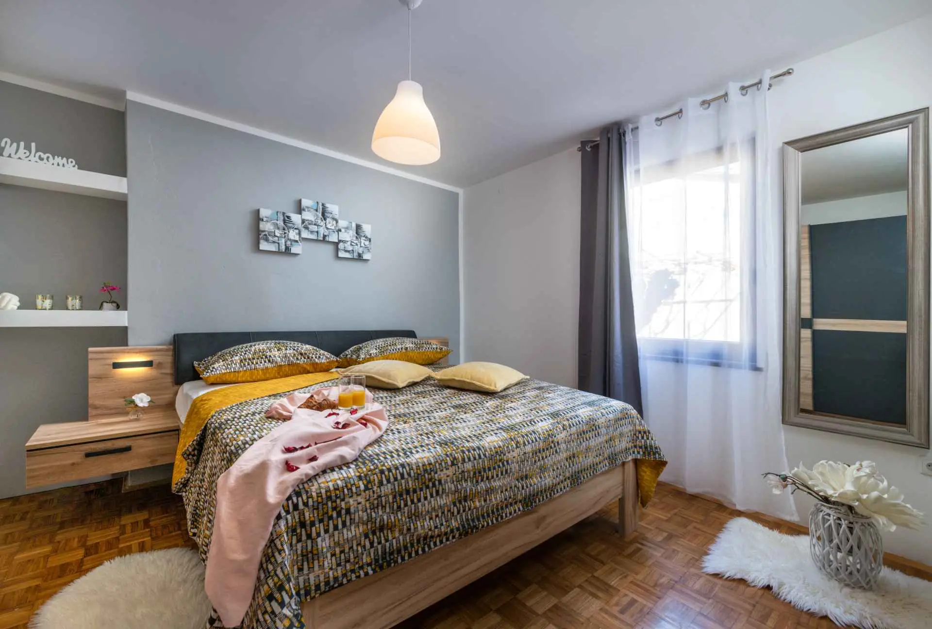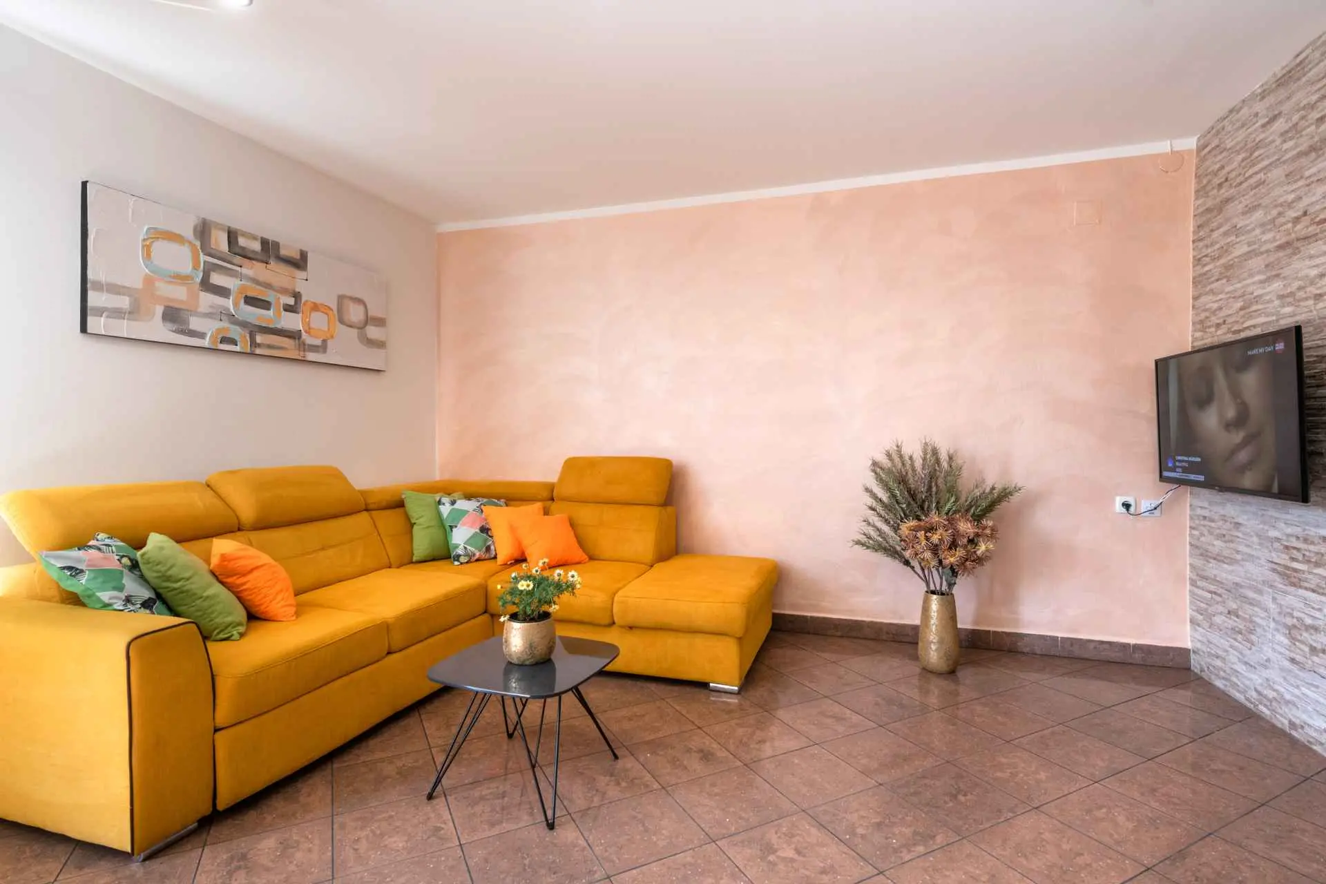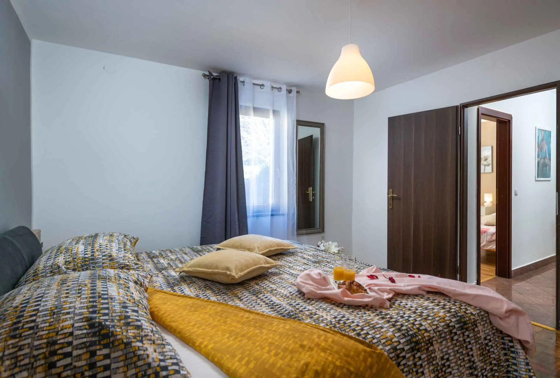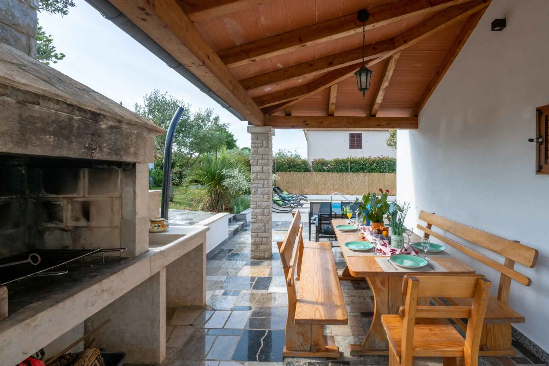 Discover Charming Holiday Home Mare, a family-friendly retreat nestled in the picturesque town of Vodnjan. This spacious 85m² house comfortably accommodates up to 5 guests, offering a perfect blend of comfort and convenience for families and friend groups. The house boasts a private swimming pool spanning 32m², providing a delightful space for relaxation and fun. Enjoy the beautifully landscaped garden and furnished terrace, ideal for outdoor dining and socialising. The fenced plot ensures privacy and safety for families with children. Inside, you'll find three well-appointed bedrooms featuring a mix of double, king-size, and individual beds. The American-style kitchen is fully equipped with modern appliances, including a dishwasher, oven, microwave, and coffee machine, allowing you to prepare delicious meals with ease. The living area features a smart TV with multiple language options and a cosy fireplace for those cooler evenings. Practical amenities include air conditioning in the lounge, free WiFi, and a private bathroom with a shower. Outdoor enthusiasts will appreciate the BBQ area, bicycle parking, and sunloungers. The house provides essential items like a travel crib, ironing board, and cleaning products to ensure a comfortable stay. Located just 600 metres from the town centre, supermarket, restaurants, and bus stop, house Mare offers convenient access to local attractions. The rock beach is a short 7.2 km away, perfect for day trips. With private parking for three vehicles and a designated smoking area, this house promises a memorable and comfortable holiday experience.