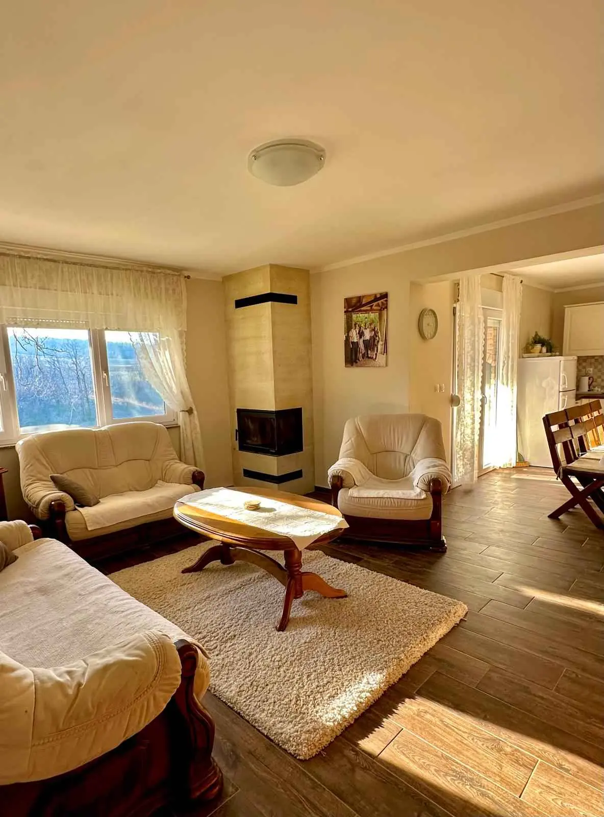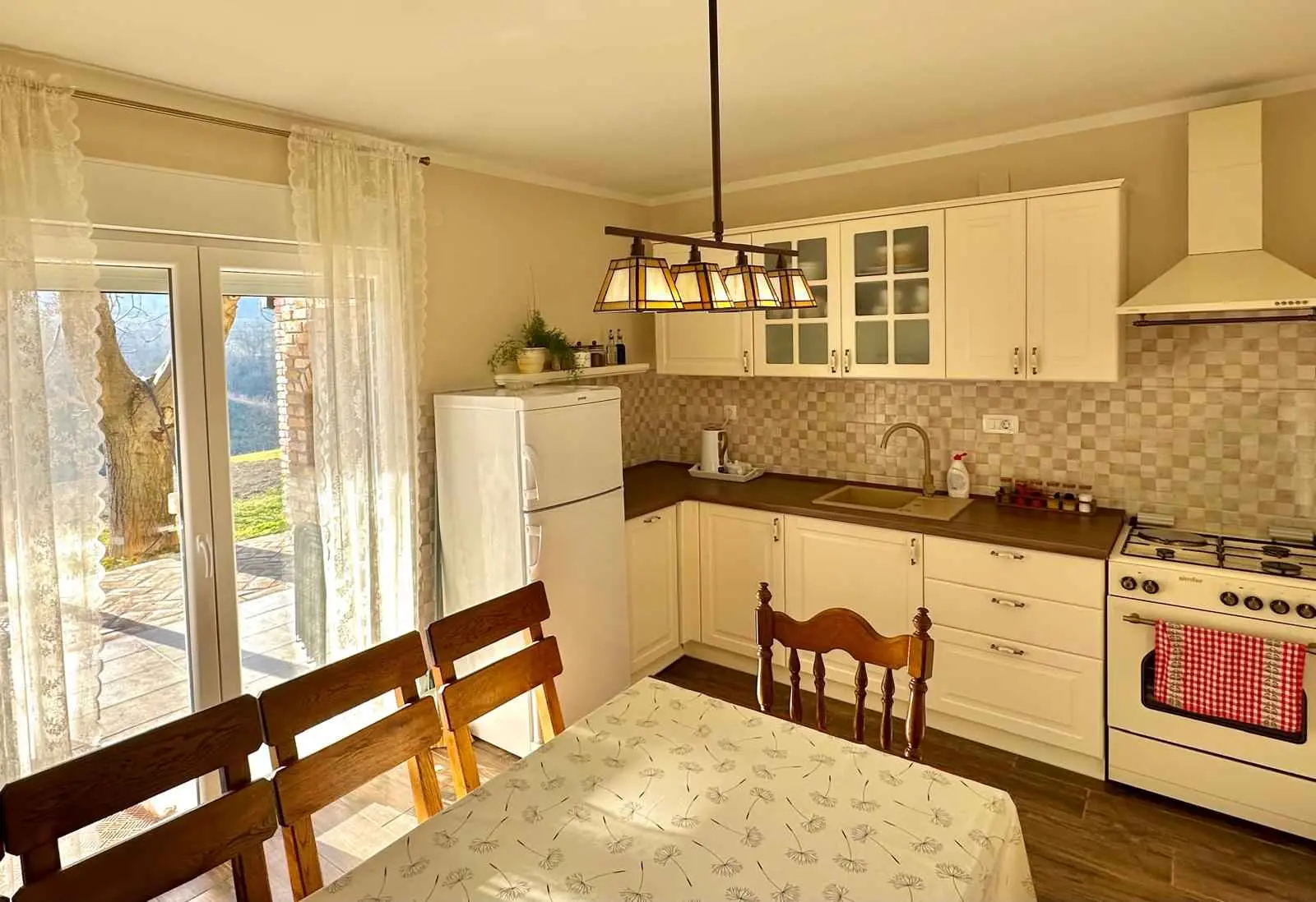 Holiday house in nature Ivana is the easternmost holiday house in Croatia. It is located in a quiet location away from the city and noise. It has a large garden and yard, and a separate part with a sheep farm. The house is ideal for nature lovers, hikers and families with children. It is located on the hiking route to Liska, which is the highest peak in the Vukovar-Srijem County. It is located 9 km from the center of Ilok, 40 km from the city of Vukovar, 47 km from Novi Sad, 49 km from Petrovaradin. Newly renovated house with 4 bedrooms, two bathrooms, hallway, kitchen and living room, intended for 9 people. From the kitchen there is access to a terrace with a view of the garden and nature and is equipped with a table, chairs and a barbecue. The house is fully equipped with utensils for eating and preparing meals, glasses, dishwasher, oven, kettle, refrigerator, washing machine, hair dryer. Fireplace, Netflix, HBO max, EON TV, Board games, Spacious garden and yard.