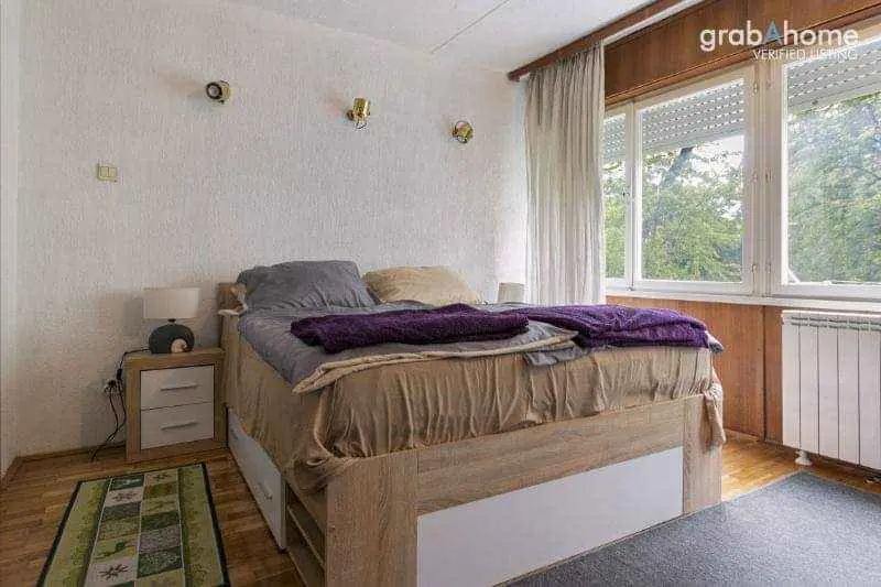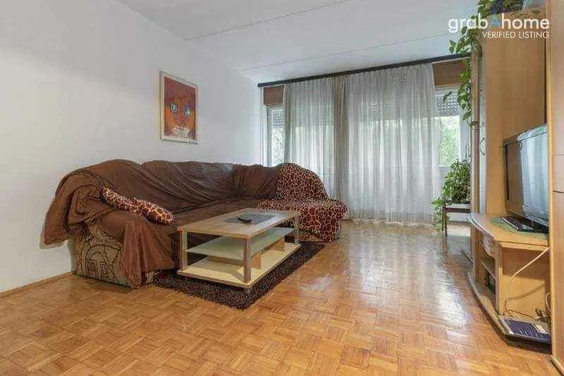 Spacious and bright apartment in the building, 2nd floor, elevator. Bedroom with double bed and cot. Bedroom and kitchen overlook the park and greenery. Very large living room with sofa bed for two more people, also corner sofa bed for one more person. Kitchen, toilet, bathroom with bathtub. Spacious hallway. 50 m from the apartment is one of the best markets in Zagreb with cafes, restaurant, pastry shop. Complete supply at the market. Tram stop 200m, connects with the bus and main station and the city center. Bus stop 300 m, bus goes to the main station and the center. Nearby Bundek park, Avenue Mall, swimming pool, Velesajam, hippodrome, Arena center. 095 7545427