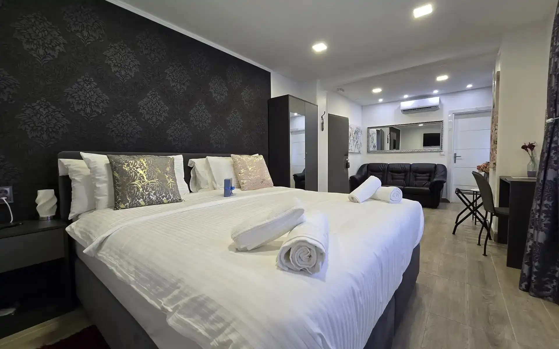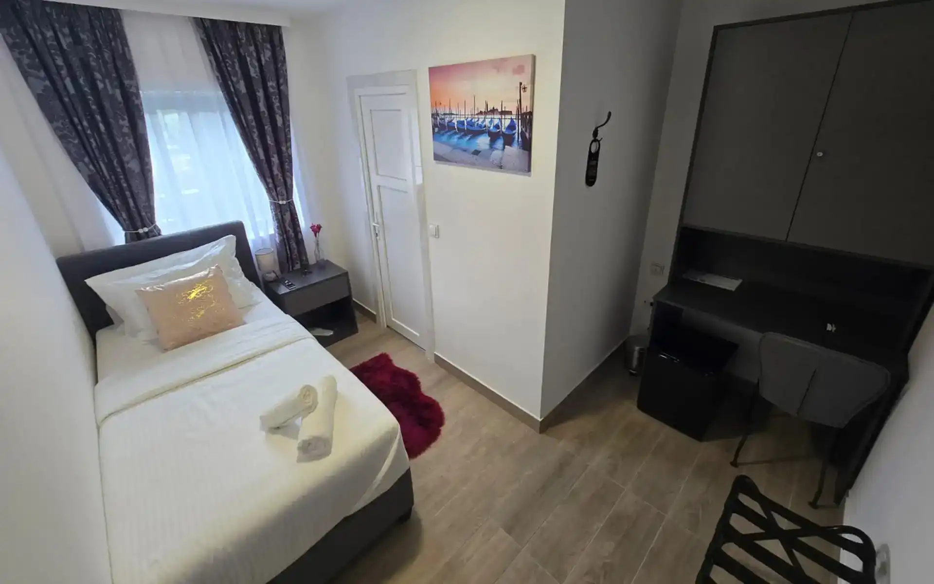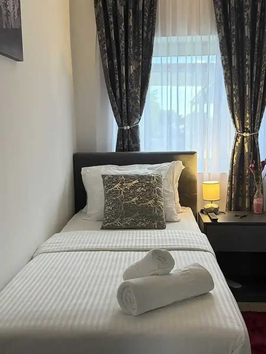 Alsago Lux is a modern 4-star property located just 13 km from the center of Zagreb, in the well-connected Sesvete area. The hotel combines contemporary design, comfort, and traditional Croatian hospitality, providing an ideal stay for business travelers, tourists, or transit guests. Rooms The hotel offers 16 modernly furnished rooms across different categories: Single Room – minimalist design, private bathroom, air conditioning, TV, Wi-Fi. Premium Single Room – more spacious with additional amenities. Premium Twin Room – two separate beds, perfect for business or leisure travelers. Premium Double Room – comfortable double bed, air-conditioned and fully equipped with all amenities. Deluxe Suite – luxurious space with separate living and sleeping areas, ideal for longer stays or special occasions. All rooms feature: Private bathroom with shower Underfloor heating and cooling plus additional air conditioning Luxury toiletries Mini bar and safe Free Wi-Fi Electronic key lock Additional Amenities Free parking under video surveillance Complimentary Wi-Fi throughout the property Close to public transport: bus stop 50 m, train station 200 m Quick access to central Zagreb and Franjo Tuđman Airport Additional transportation services available upon request and subject to availability Surroundings The hotel is conveniently located near shopping centers, pharmacies, gas stations, post offices, ATMs, and a variety of restaurants, providing everything guests may need within walking distance.