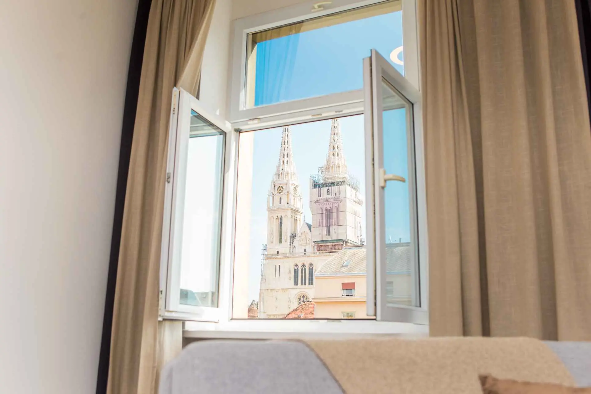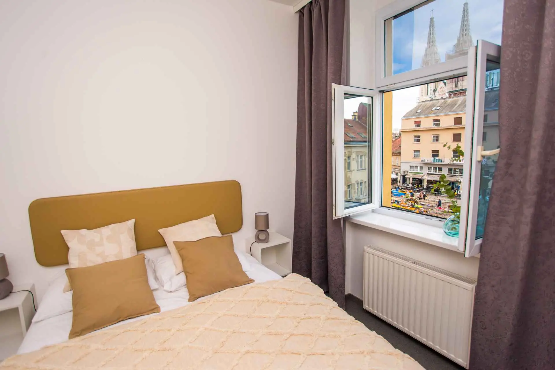 Apartments Dolac on address Dolac 1, Zagreb is in a great location, just 50 m from the main square Trg bana Jelačića, it offers eight modernly decorated, comfortable apartments with a capacity of 30 people. The view from apartments on the marketplace Dolac, the catedral, main square and Tkalčićeva street is the first step to get to know Zagreb and feel the atmosphere of Lower Town. Everything you need to see in Zagreb, museums, galleries, theaters, restaurants are within walking distance. Apartments Dolac are the perfect choice for... tourists, families, business travelers, larger sports groups, and short school trips.