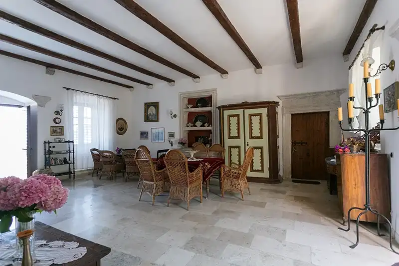 Situated in the very center of Zaton Mali this XVI century summer Castle with 6 rooms, from Dubrovnik noble family, will enchant you with its quite atmosphere and lush green garden. 4000 m2 of garden 6 rooms for rent. Outside tavern / summer kitchen for breakfast only. Cooking dinner or use outside barbeque grill to be arranged on request ( by mail or on site ) Staffed property Free parking. Airport transfer service. Capacity: Sleeps 12 people in 6 rooms