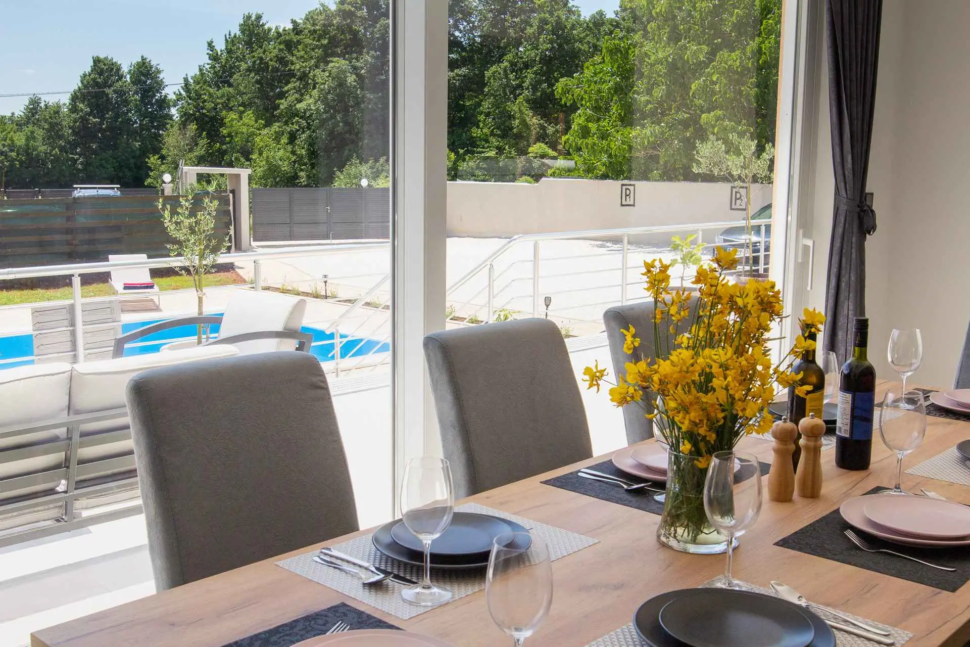 Bienvenue dans la toute nouvelle Villa Camelie, située dans un petit village d'Istrie entouré d'une forêt méditerranéenne luxuriante et de prairies parfumées. La villa convient aux familles qui souhaitent passer des vacances pleines de sens. Il y a une grande piscine et diverses installations sportives et de divertissement qui rendront vos vacances encore plus spéciales. L'espace intérieur de 300 m2 est décoré dans un style moderne et offre tout le confort. La villa est entièrement climatisée. Profitez en famille dans ce logement moderne !
