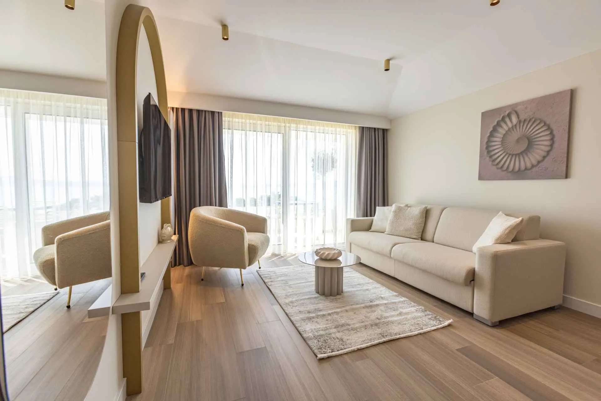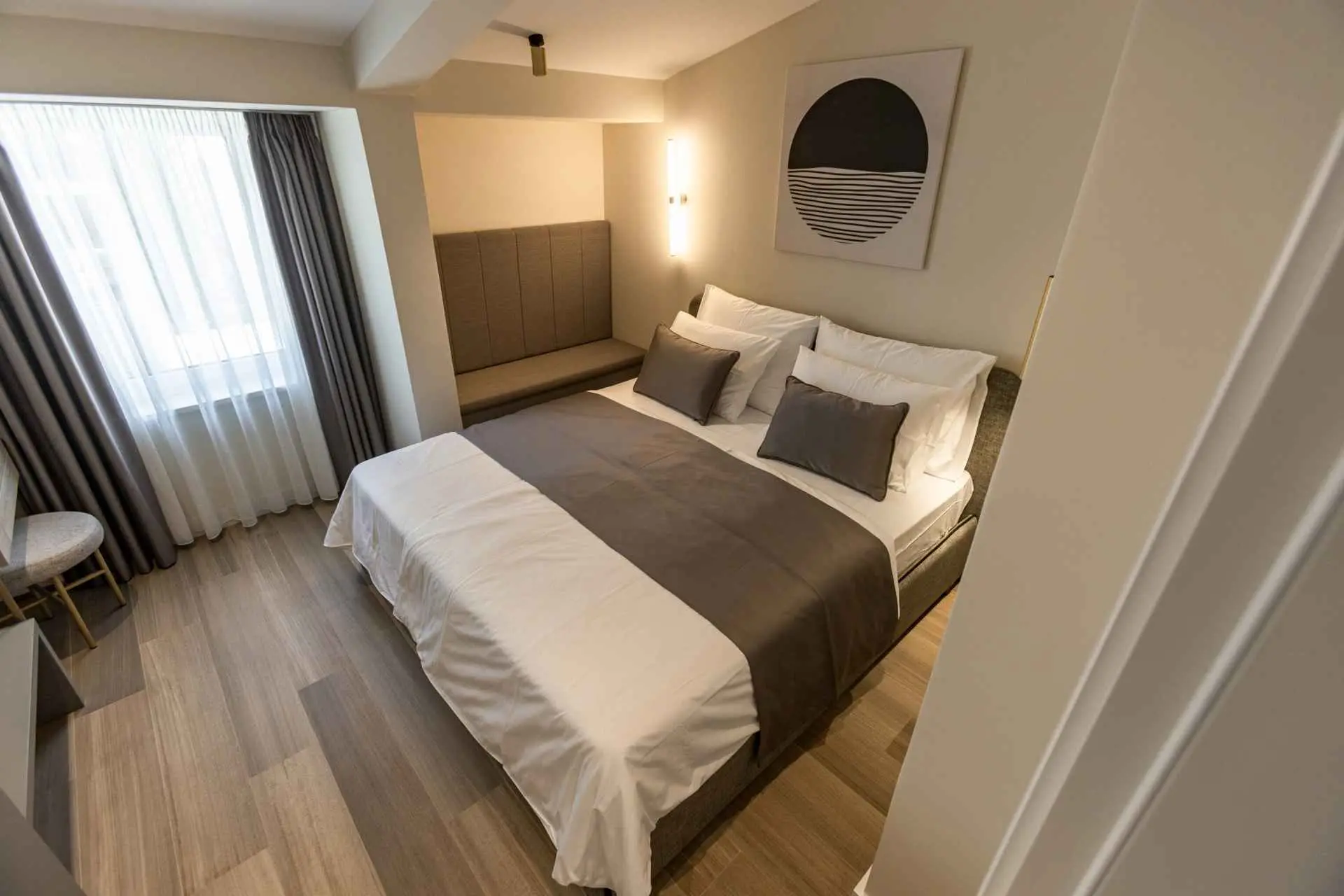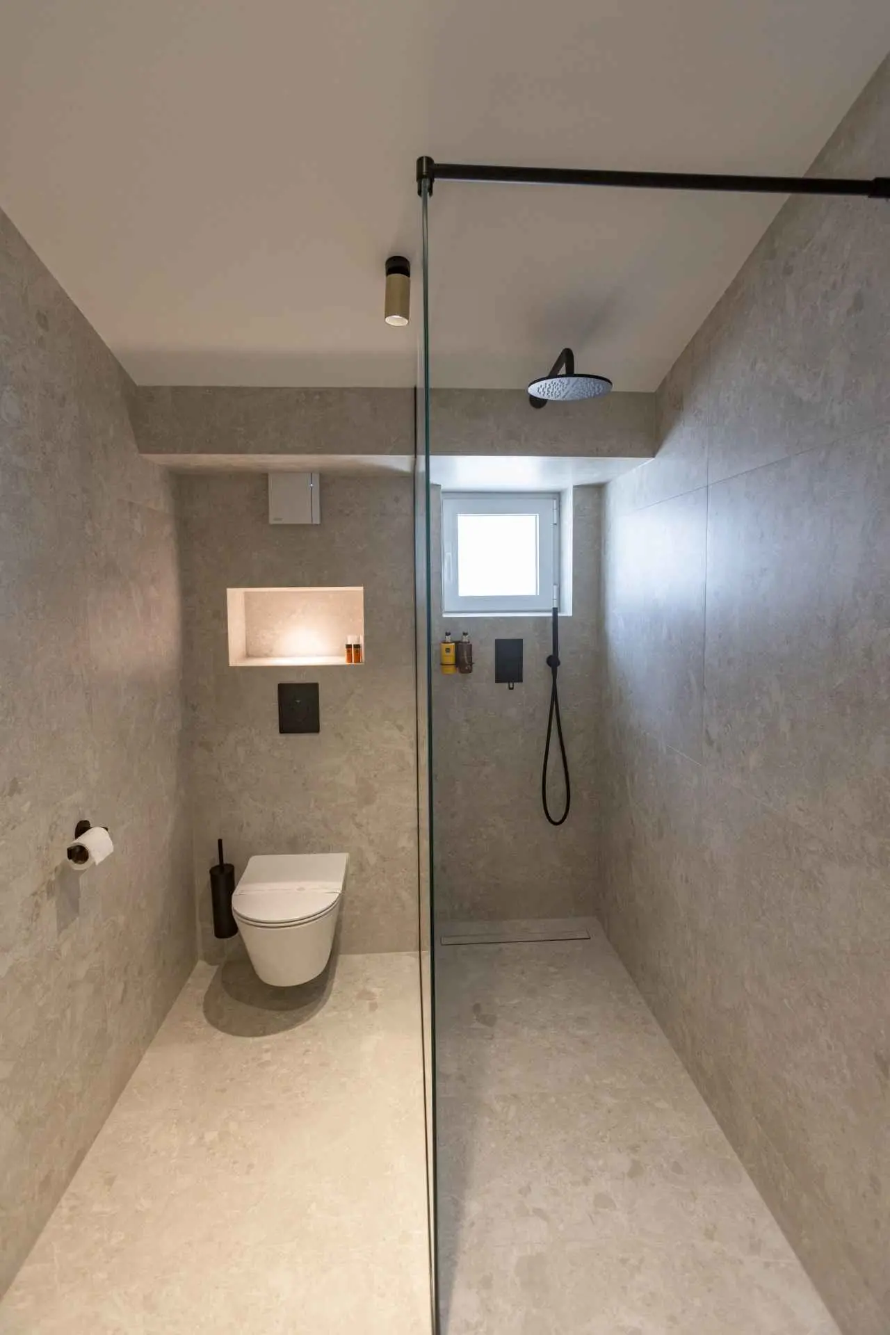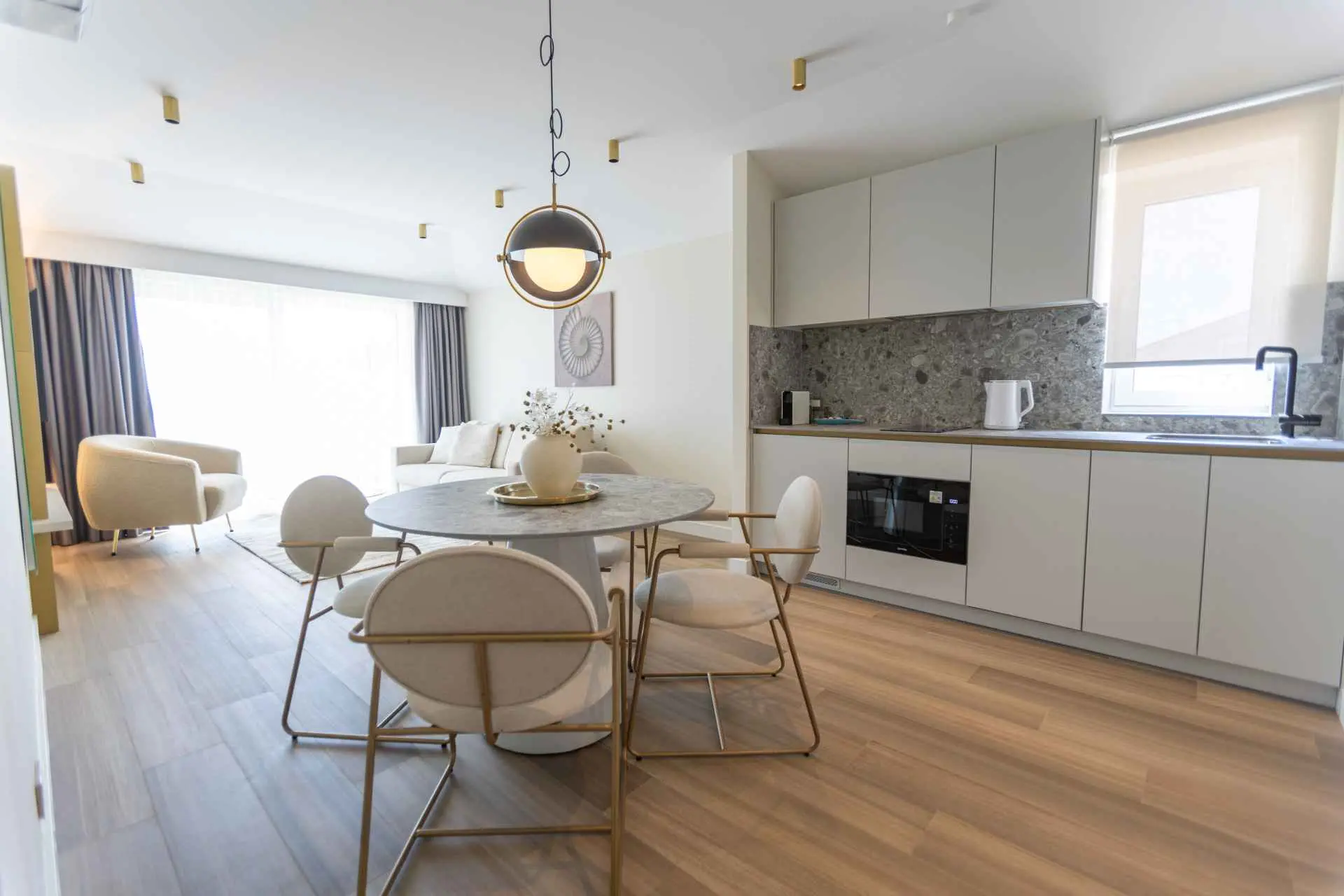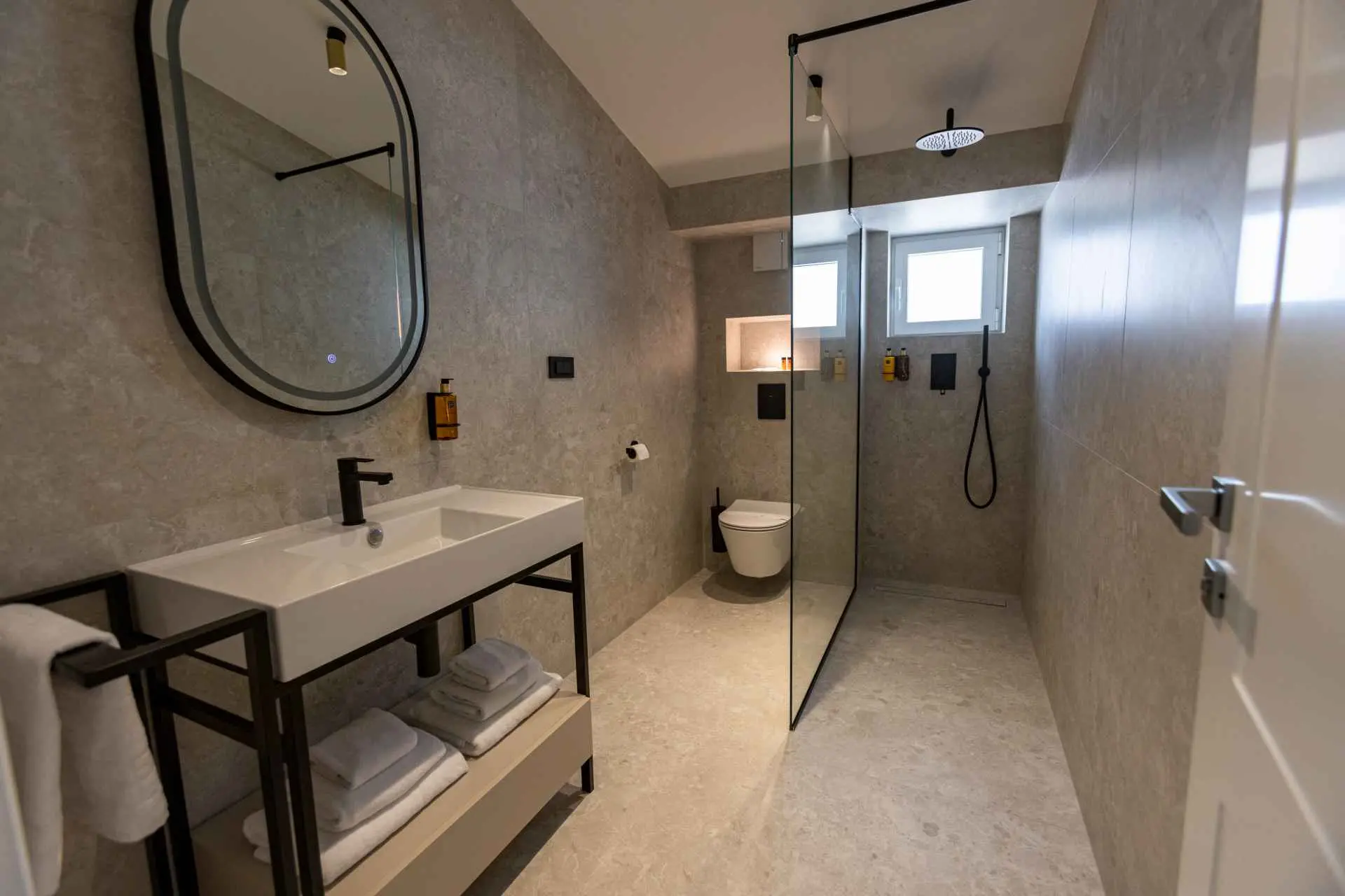 La villa est située dans un quartier paisible de Baška Voda, à seulement 150 mètres des eaux cristallines de la mer Adriatique. Située en plein centre-ville, elle offre un accès facile à tous les sites touristiques, aux restaurants proposant une cuisine méditerranéenne authentique, ainsi qu'à de nombreuses attractions touristiques et sites naturels. Elle s'étend sur trois étages et comprend huit appartements élégamment meublés. Chaque appartement dispose d'une cuisine entièrement équipée, d'un salon spacieux, de chambres modernes, d'un balcon et d'une salle de bains privative. De grandes baies vitrées laissent entrer la lumière naturelle et offrent une vue imprenable sur la mer. À l'extérieur, la villa comprend une grande piscine entourée de chaises longues, idéale pour bronzer et se rafraîchir lors des chaudes journées d'été. La cour spacieuse offre un espace généreux pour se détendre et profiter du plein air.