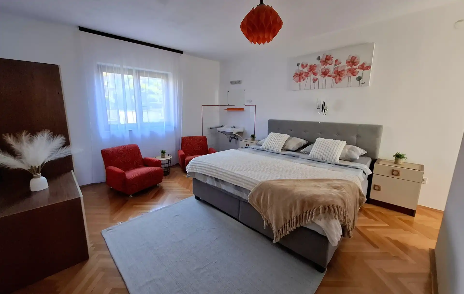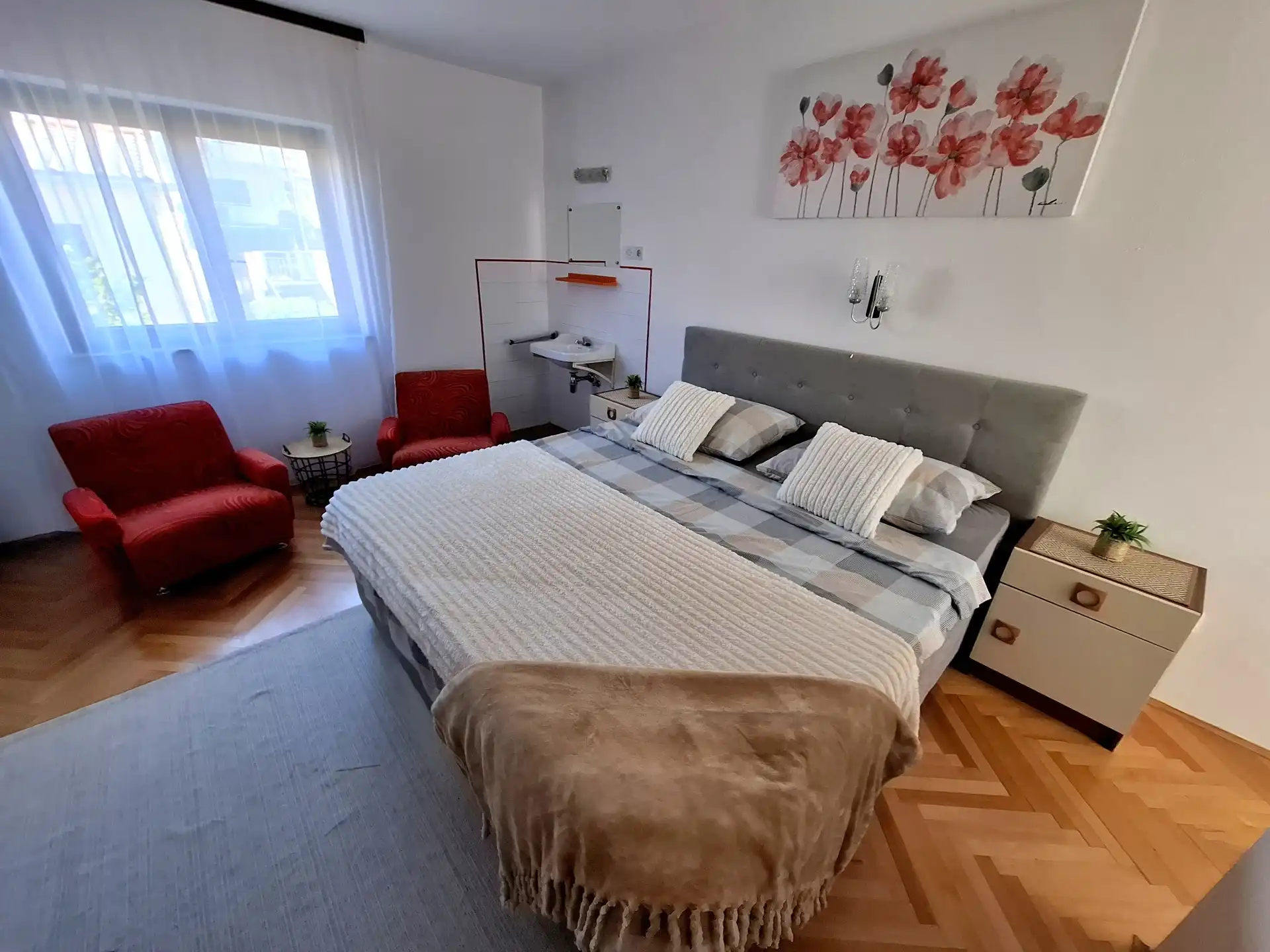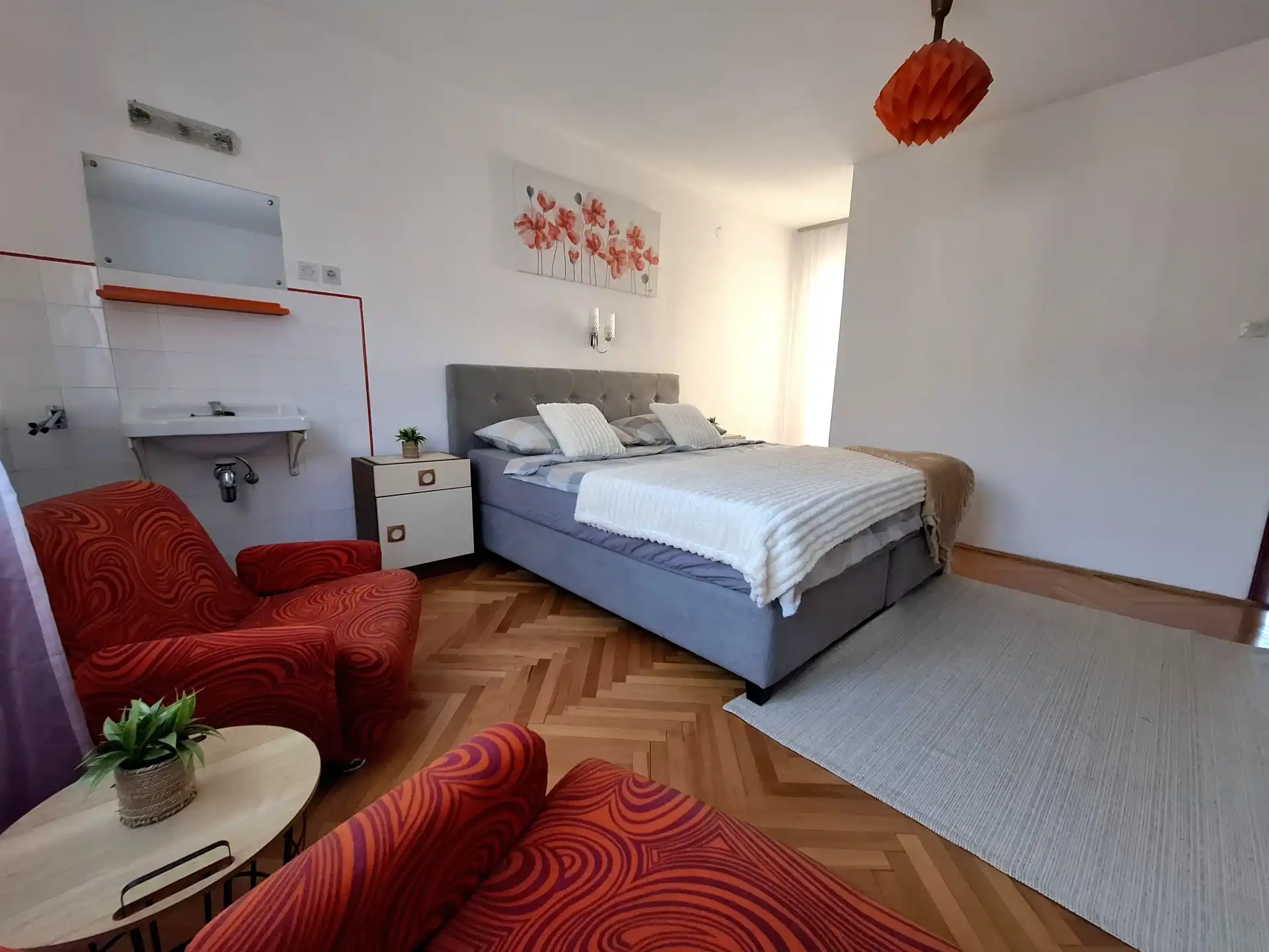 Chaque appartement peut accueillir deux (2) personnes seulement. Les appartements Sun & Sea Izabela sont situés au deuxième étage d'un immeuble en plein centre de Crikvenica. La résidence se trouve à quelques minutes à pied de la plage et du centre-ville où vous trouverez tout ce dont vous avez besoin : restaurants, cafés, boutiques, animations… Les appartements sont équipés de la climatisation, d'une connexion internet haut débit (Wi-Fi), d'un parking et d'une télévision. Tout est inclus dans le prix.