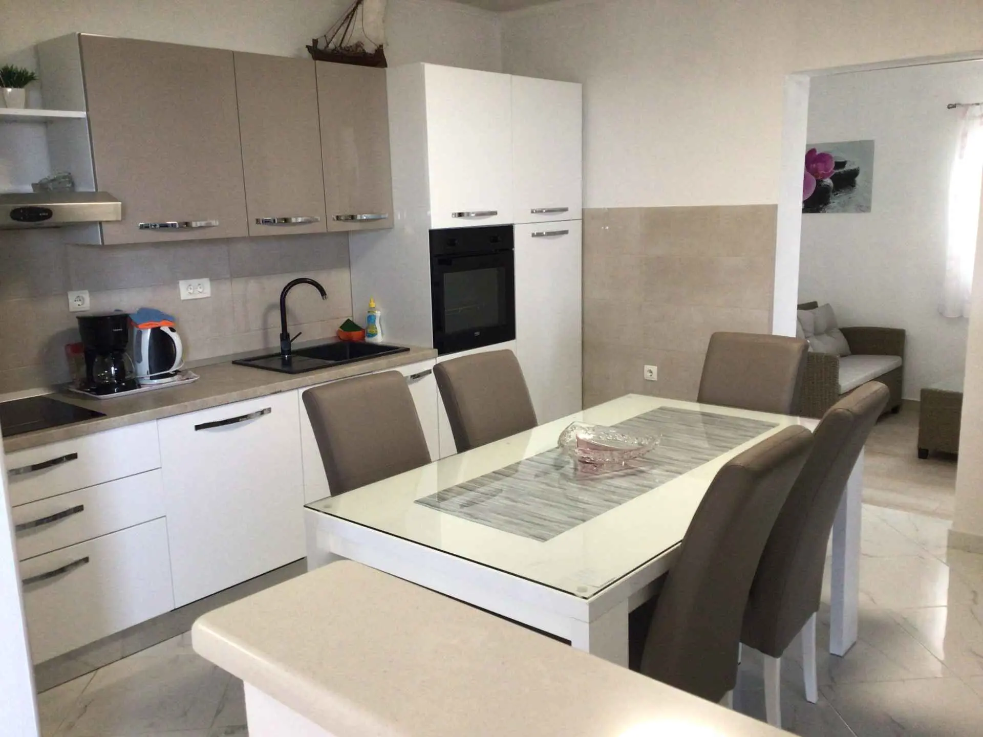 Appartement joliment décoré avec piscine dans le centre de Veliko Brdo. Situé à 4 kilomètres du centre de Makarska, au pied du Biokovo, avec vue sur la mer, l'appartement offre une grande terrasse et une piscine, une aire de jeux (pétanque) et un barbecue. Il dispose également d'une table de ping-pong et d'un parking à l'ombre d'un auvent. Nous sommes actifs dans le tourisme depuis plus de 25 ans et souhaitons répondre aux besoins des familles en quête de vacances et de tranquillité. Nous leur offrons tout le confort nécessaire.