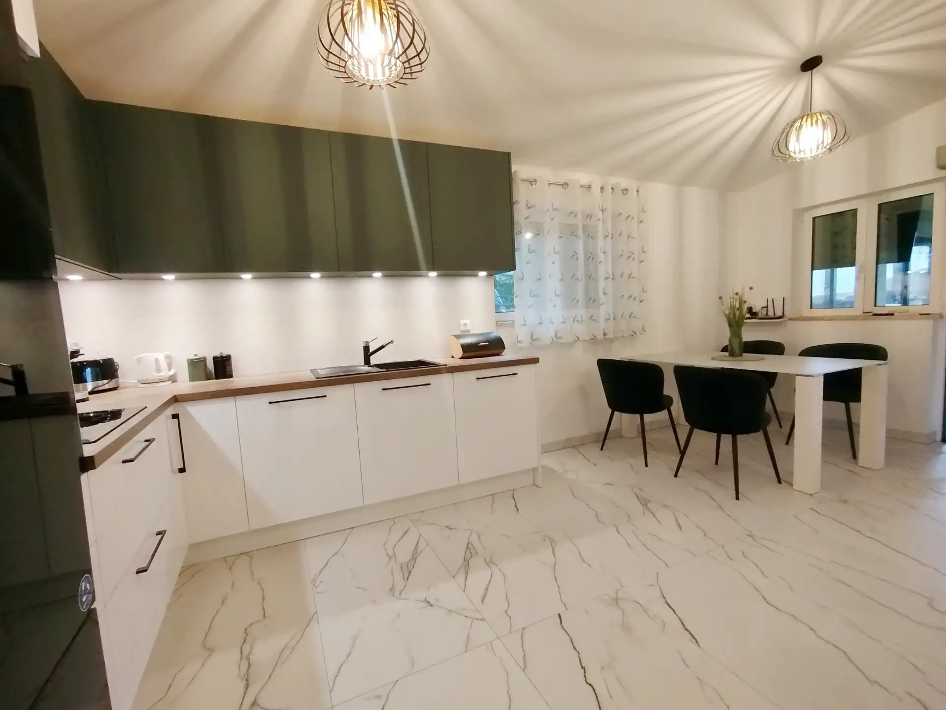 L'appartement Robert est situé à 400 m au-dessus de la vieille ville. La surface de 100 m2 se compose de deux chambres, deux salles de bains, un salon et une cuisine. Devant l'appartement se trouve une terrasse couverte de 300 m2 avec mobilier de jardin complet, télévision et barbecue. Piscine avec espace solarium et parking. Une option supplémentaire est d'utiliser le jacuzzi ! Bienvenue !!