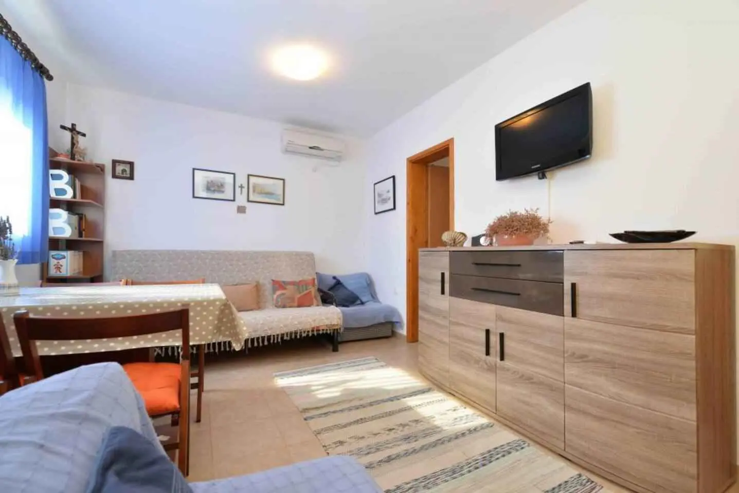 Cet appartement avec balcon est situé dans la plus grande et la plus ancienne ville de l'île de Murter. L'île de Murter est située dans la partie nord-ouest de l'archipel de Šibenik, séparée du continent par un étroit canal maritime à Tisno qui est enjambé par un pont-levis de 12 mètres. La route goudronnée (6 km de long) relie Murter à la route touristique de l'Adriatique, et la distance de la ville de Šibenik est de 29 km. L'île est célèbre pour ses plages de sable et de gravier, telles que Slanica, Kosirina, Čigrađa, Podvršak, Lovišća... Il y a aussi un grand nombre de petites baies cachées et loin de la chaleur des grandes plages. L'appartement dispose d'une entrée privée et peut accueillir jusqu'à quatre personnes. Le stationnement est gratuit et disponible sur place. Le Wi-Fi et la climatisation sont gratuits. Les animaux ne sont pas acceptés. Il est interdit de fumer dans l'appartement, uniquement à l'extérieur. Fer et table à repasser sont disponibles.