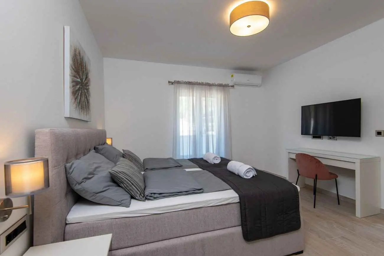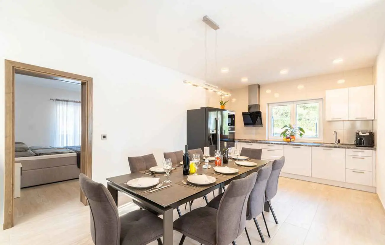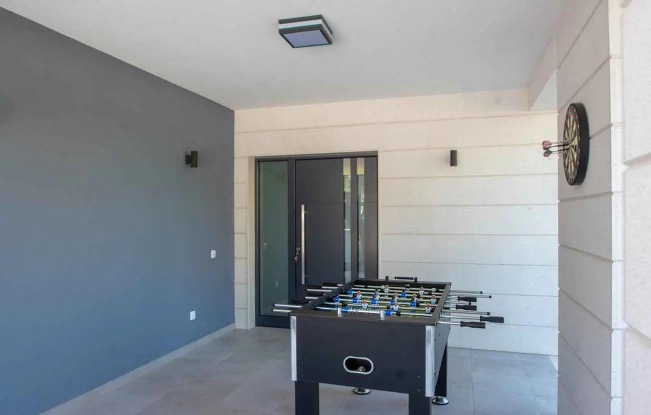 Nichée dans la charmante ville de Stankovic, cette propriété spacieuse et confortable vous offre une expérience de vacances exceptionnelle. Avec son espace extérieur privé de 800 m², vous disposerez de tout l'espace nécessaire pour vous détendre et vous relaxer. La propriété dispose d'équipements impressionnants, dont une piscine privée chauffée (8 x 4 mètres), un sauna, un jacuzzi et une salle de sport bien équipée. Les amateurs de plein air apprécieront le terrain de basket, la terrasse ensoleillée et l'espace barbecue, parfaits pour dîner et recevoir en plein air. À l'intérieur, la propriété comprend 4 chambres spacieuses, chacune dotée d'un luxueux lit king-size, et 4 salles de bains, dont 2 avec douche et 2 avec baignoire. La cuisine moderne et entièrement équipée est idéale pour les chefs, avec plaques à induction, réfrigérateur, congélateur, lave-vaisselle et tous les ustensiles nécessaires. Pour votre divertissement, la propriété dispose de 6 téléviseurs connectés, dont la télévision par satellite, ainsi que du Wi-Fi haut débit dans tout l'établissement. Un fer et une planche à repasser, ainsi qu'un coffre-fort pour vos objets de valeur, sont également à votre disposition. Entourée de montagnes et dotée d'une piscine privée, cette propriété est le refuge idéal pour les familles ou les groupes d'amis. Les animaux de compagnie sont les bienvenus sur demande (un seul maximum est autorisé). L'emplacement est exceptionnel : une plage de sable et de rochers se trouve à seulement 240 mètres, un supermarché à 160 mètres et l'aéroport international de Dubrovnik à seulement 125 mètres. À proximité, vous trouverez de nombreux restaurants, cafés et autres commodités pour un séjour inoubliable. Les animaux de compagnie sont admis sur demande (10 euros par nuit, à régler en espèces à l'arrivée). Parking privé disponible. Wi-Fi et climatisation gratuits. Toutes les chambres sont équipées de la télévision et de la climatisation. Deux chambres bénéficient d'une terrasse avec vue sur la mer. La chambre est équipée d'une console de jeux, d'une télévision et d'appareils de fitness. Piscine extérieure, douche, chaises longues, parasol, jacuzzi, sauna, terrain de basket, ping-pong, baby-foot, balançoire, toboggan, trampoline, badminton, barbecue et mobilier de jardin. Lit bébé et chaise haute pour enfant disponibles. Fumer est autorisé. Quatre salles de bains privatives et des toilettes séparées.