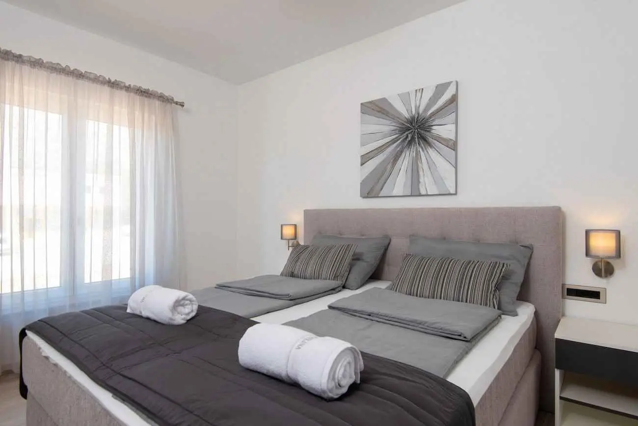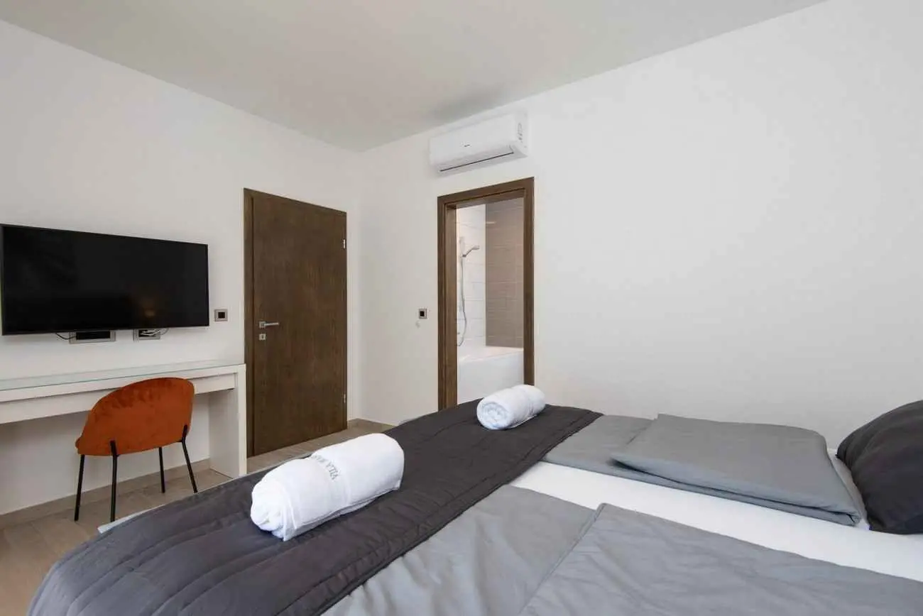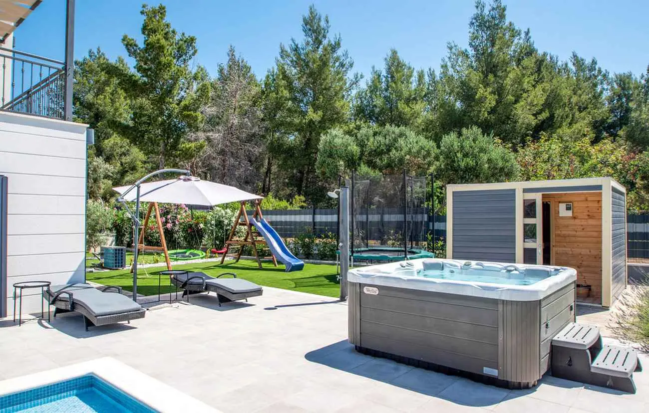 Nichée dans la charmante ville de Stankovic, cette propriété spacieuse et confortable vous offre une expérience de vacances exceptionnelle. Avec son espace extérieur privé de 800 m², vous disposerez de tout l'espace nécessaire pour vous détendre et vous relaxer. La propriété dispose d'équipements impressionnants, dont une piscine privée chauffée (8 x 4 mètres), un sauna, un jacuzzi et une salle de sport bien équipée. Les amateurs de plein air apprécieront le terrain de basket, la terrasse ensoleillée et l'espace barbecue, parfaits pour dîner et recevoir en plein air. À l'intérieur, la propriété comprend 4 chambres spacieuses, chacune dotée d'un luxueux lit king-size, et 4 salles de bains, dont 2 avec douche et 2 avec baignoire. La cuisine moderne et entièrement équipée est idéale pour les chefs, avec plaques à induction, réfrigérateur, congélateur, lave-vaisselle et tous les ustensiles nécessaires. Pour votre divertissement, la propriété dispose de 6 téléviseurs connectés, dont la télévision par satellite, ainsi que du Wi-Fi haut débit dans tout l'établissement. Un fer et une planche à repasser, ainsi qu'un coffre-fort pour vos objets de valeur, sont également à votre disposition. Entourée de montagnes et dotée d'une piscine privée, cette propriété est le refuge idéal pour les familles ou les groupes d'amis. Les animaux de compagnie sont les bienvenus sur demande (un seul maximum est autorisé). L'emplacement est exceptionnel : une plage de sable et de rochers se trouve à seulement 240 mètres, un supermarché à 160 mètres et l'aéroport international de Dubrovnik à seulement 125 mètres. À proximité, vous trouverez de nombreux restaurants, cafés et autres commodités pour un séjour inoubliable. Les animaux de compagnie sont admis sur demande (10 euros par nuit, à régler en espèces à l'arrivée). Parking privé disponible. Wi-Fi et climatisation gratuits. Toutes les chambres sont équipées de la télévision et de la climatisation. Deux chambres bénéficient d'une terrasse avec vue sur la mer. La chambre est équipée d'une console de jeux, d'une télévision et d'appareils de fitness. Piscine extérieure, douche, chaises longues, parasol, jacuzzi, sauna, terrain de basket, ping-pong, baby-foot, balançoire, toboggan, trampoline, badminton, barbecue et mobilier de jardin. Lit bébé et chaise haute pour enfant disponibles. Fumer est autorisé. Quatre salles de bains privatives et des toilettes séparées.
