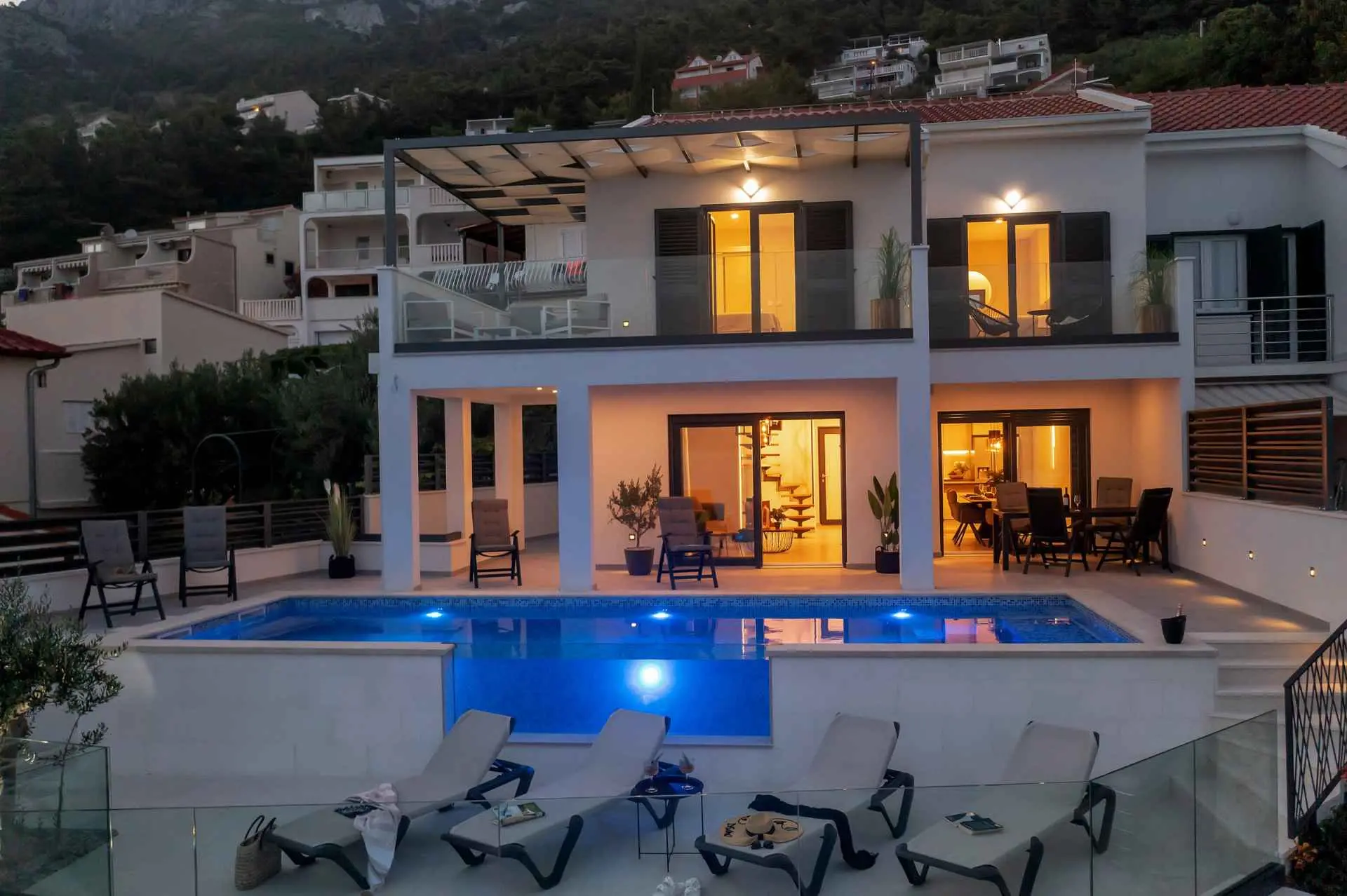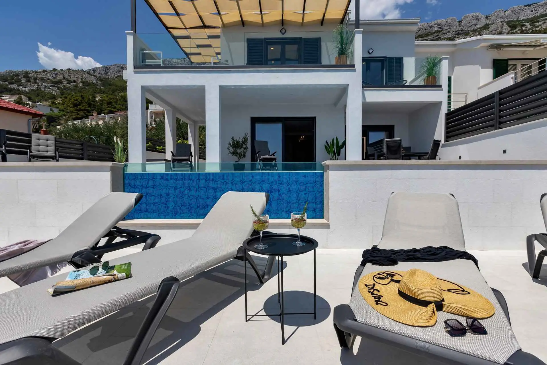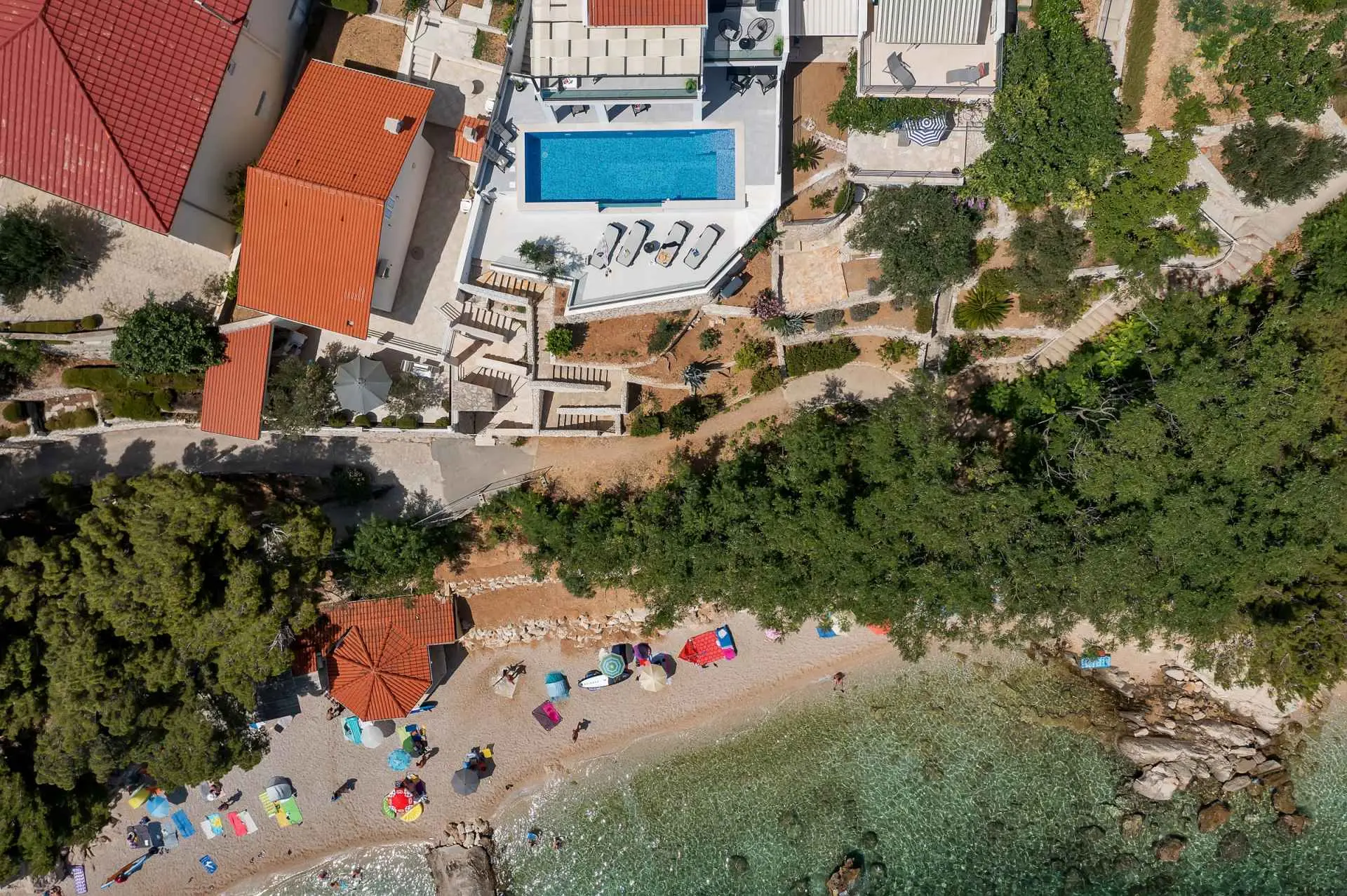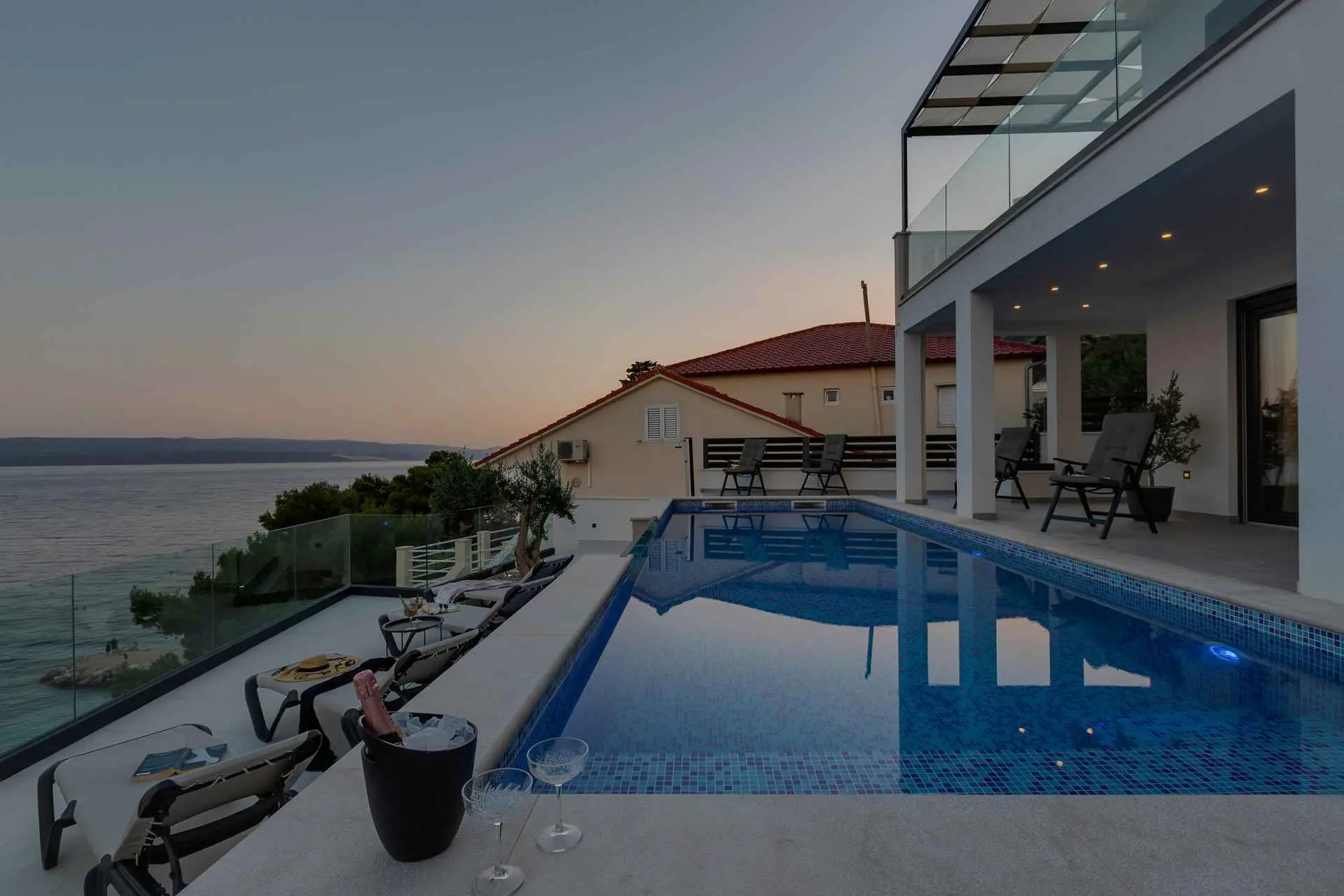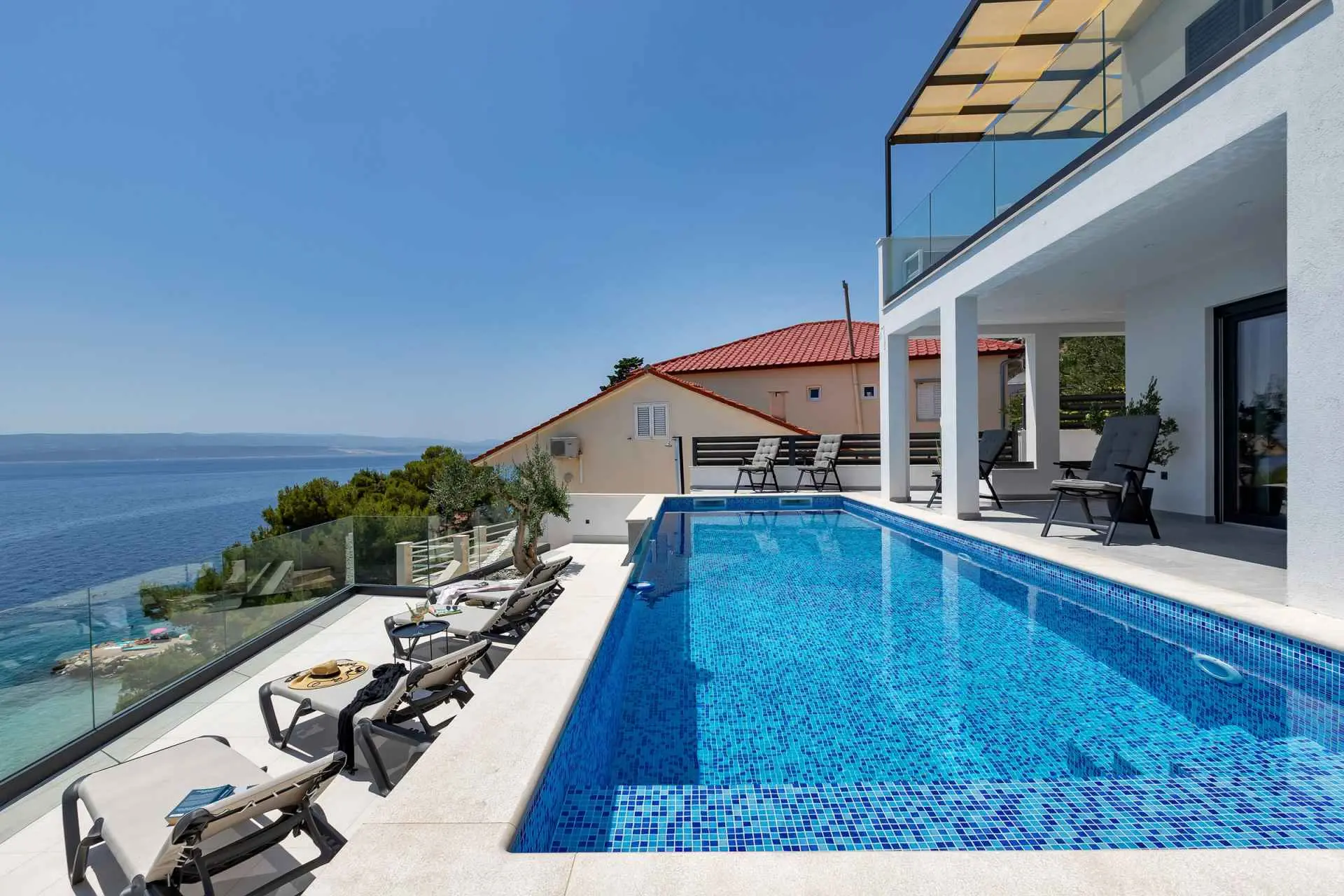 La Villa Smilje est située dans le petit village de pêcheurs de Pisak sur la Riviera d'Omis. La maison est située juste à côté de la plage et offre des vacances uniques dans un environnement totalement paisible, sans la foule de la ville ni le bruit de la circulation. La villa se compose de trois chambres, trois salles de bains, un salon, une cuisine, deux terrasses pour bronzer et une piscine chauffée à l'eau salée. La villa est équipée de meubles design de haute qualité et offre un confort complet pour 6 personnes. La plage avec une mer cristalline est située juste en dessous de la villa, accessible par des escaliers directement depuis la cour. Nous garantissons l'intimité totale de votre séjour. Le restaurant est situé à seulement 50 m de la maison.