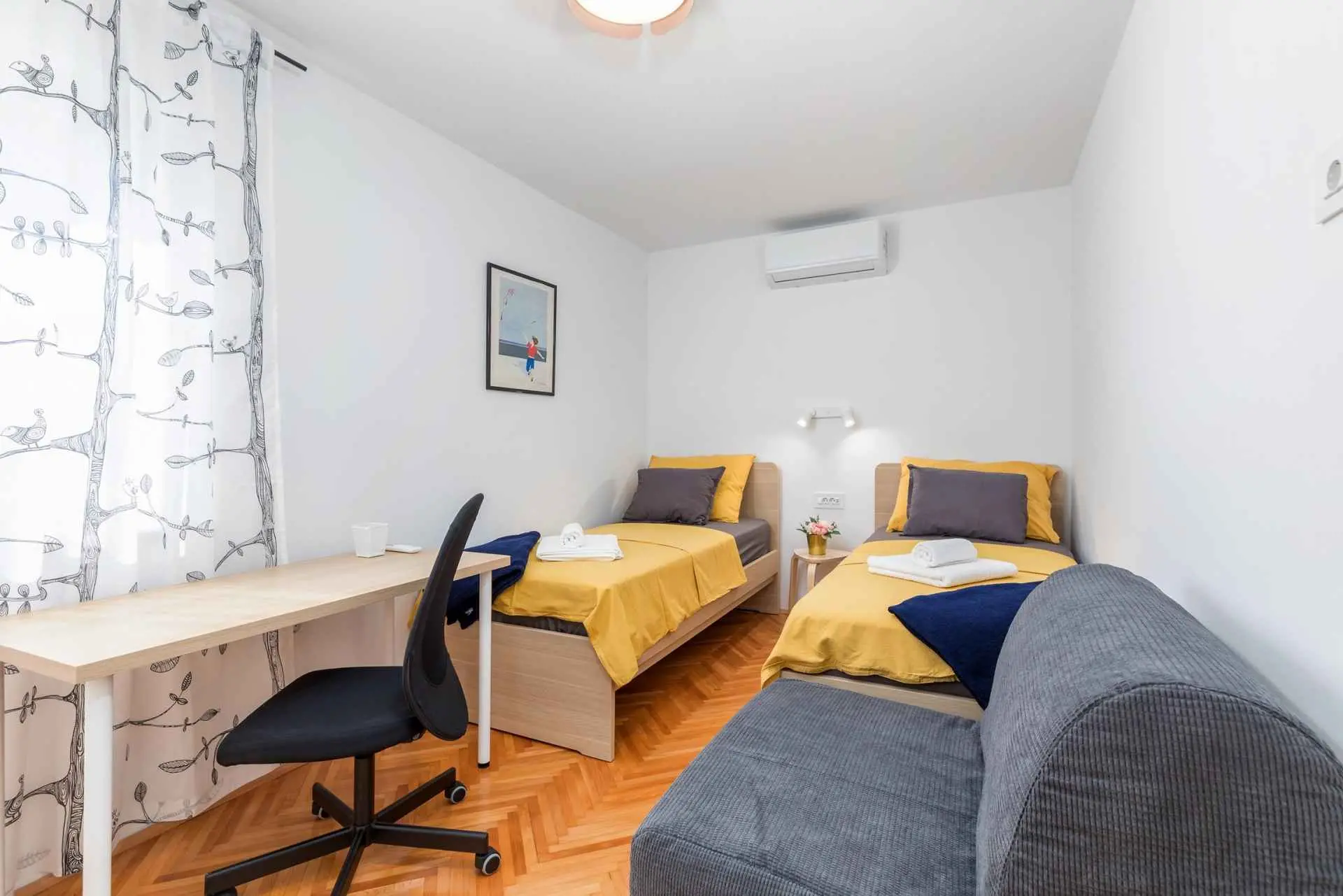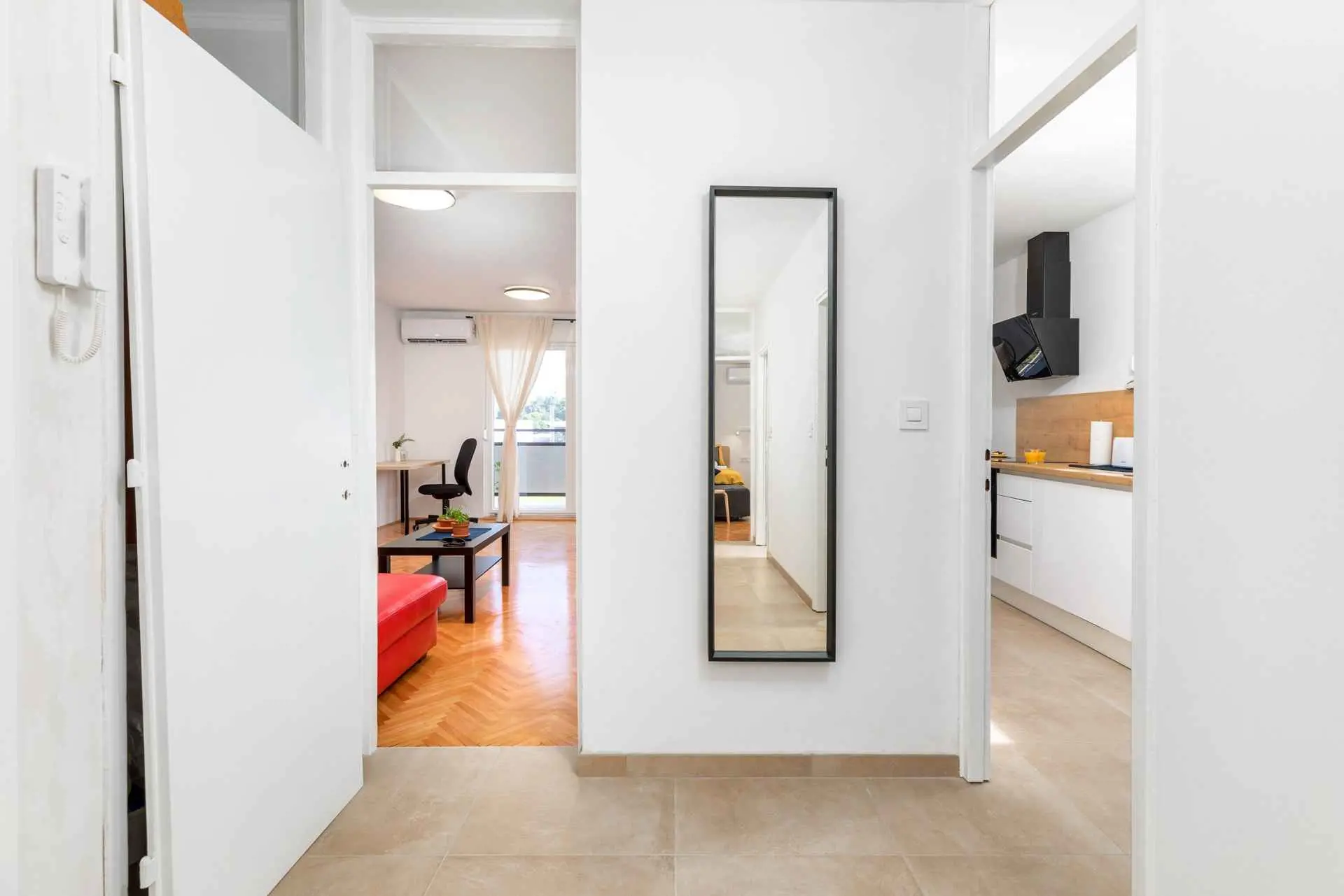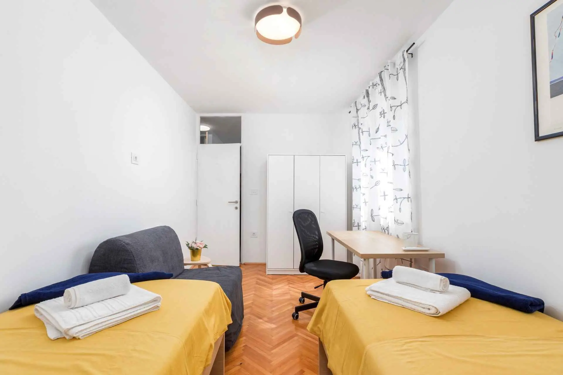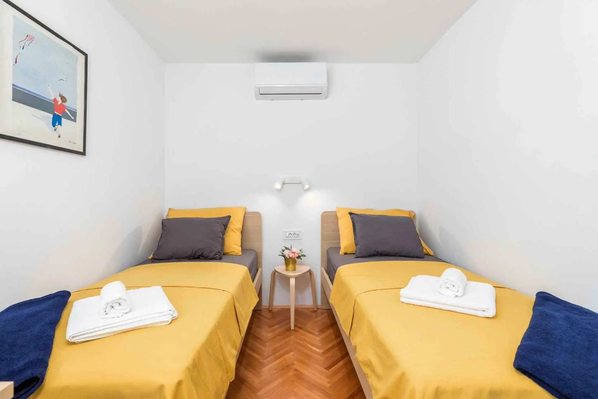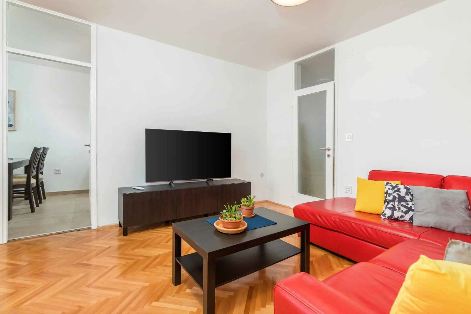 L'appartement Sunny Pula est situé dans un quartier agréable, très proche de la plage et du plus grand centre commercial d'Istrie. Il est parfait pour des vacances en famille en raison de son emplacement et de la proximité de toutes les commodités importantes. Cet appartement spacieux est situé au 3ème étage et peut accueillir 4 adultes et 2 enfants, ou 5 adultes. Un espace de travail adapté aux ordinateurs portables se trouve dans le salon et également dans l'une des chambres. Le salon spacieux dispose également d'une télévision à écran plat avec accès Internet et Netflix. Un grand balcon avec mobilier de jardin moderne donne sur un grand stade avec différents terrains de sport et une rue calme. Les piscines de la ville sont situées juste à côté du stade. Les clients peuvent utiliser une machine à laver, ce qui est parfait pour les séjours plus longs. L'appartement est situé dans un quartier paisible de Pula, à seulement 700 m de la plage de Valkane et de Max City (le plus grand centre commercial d'Istrie). L'épicerie et la pharmacie sont à seulement 50 m, tandis que la gare routière est à 300 m. Le bus numéro 1 vous emmène au centre-ville, qui est extrêmement pittoresque avec de nombreux monuments romains (amphithéâtre, arc de triomphe de Serge, temple d'Auguste...) et de jolis magasins, restaurants et parcs. Pula étant une ancienne ville romaine, il existe de nombreux monuments, musées, expositions et galeries à explorer pendant votre séjour dans ce lieu merveilleux. Vous pourrez revivre l'époque romaine en assistant au Spectacvla Antiqva, un spectacle qui se déroule tous les deux ou trois jours dans l'amphithéâtre romain. Il existe plusieurs itinéraires de randonnée et de vélo que vous pouvez emprunter pour explorer la ville et ses environs. Trois parkings publics gratuits sont disponibles à une distance de 10 à 200 mètres du bâtiment.
