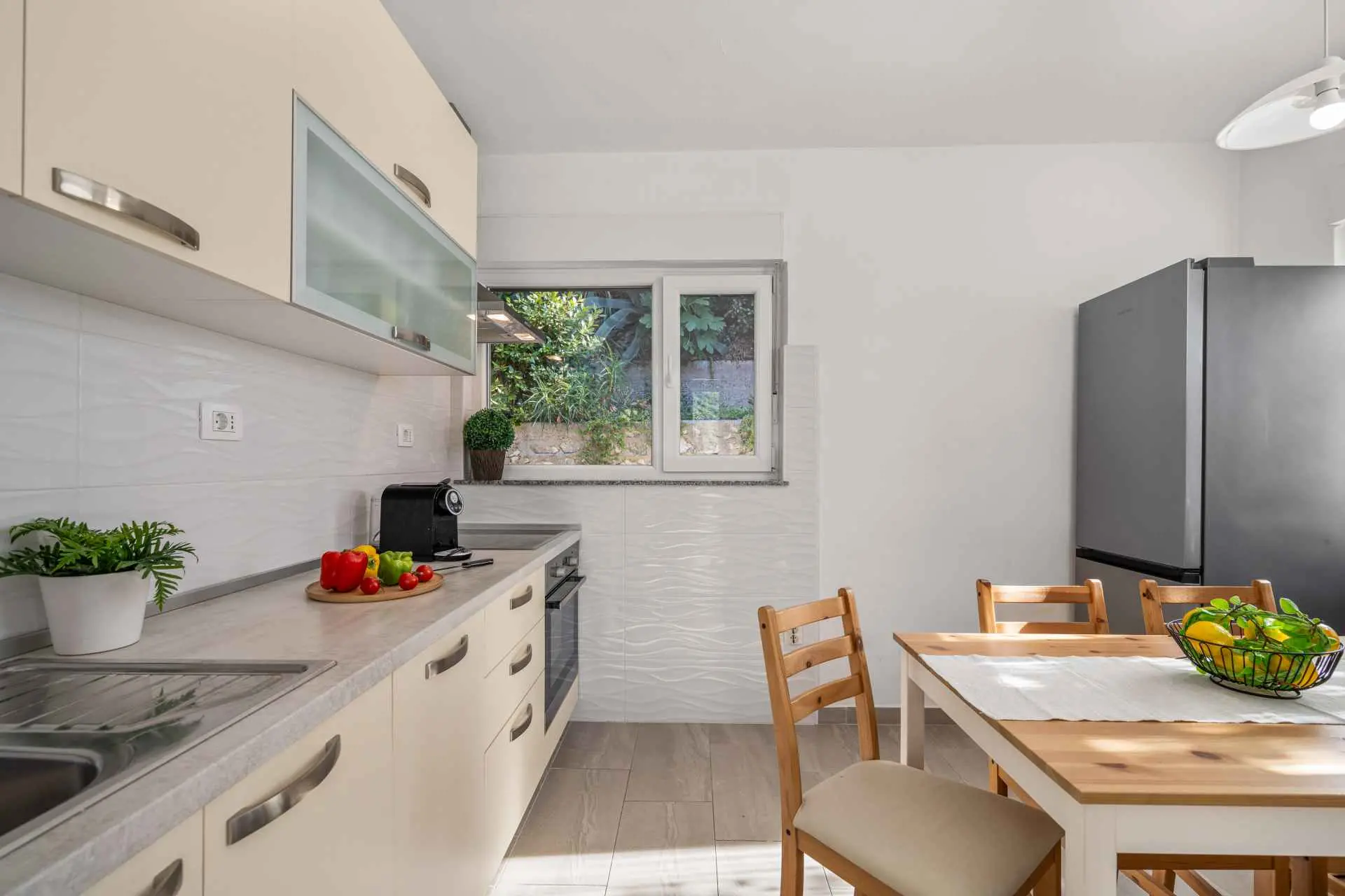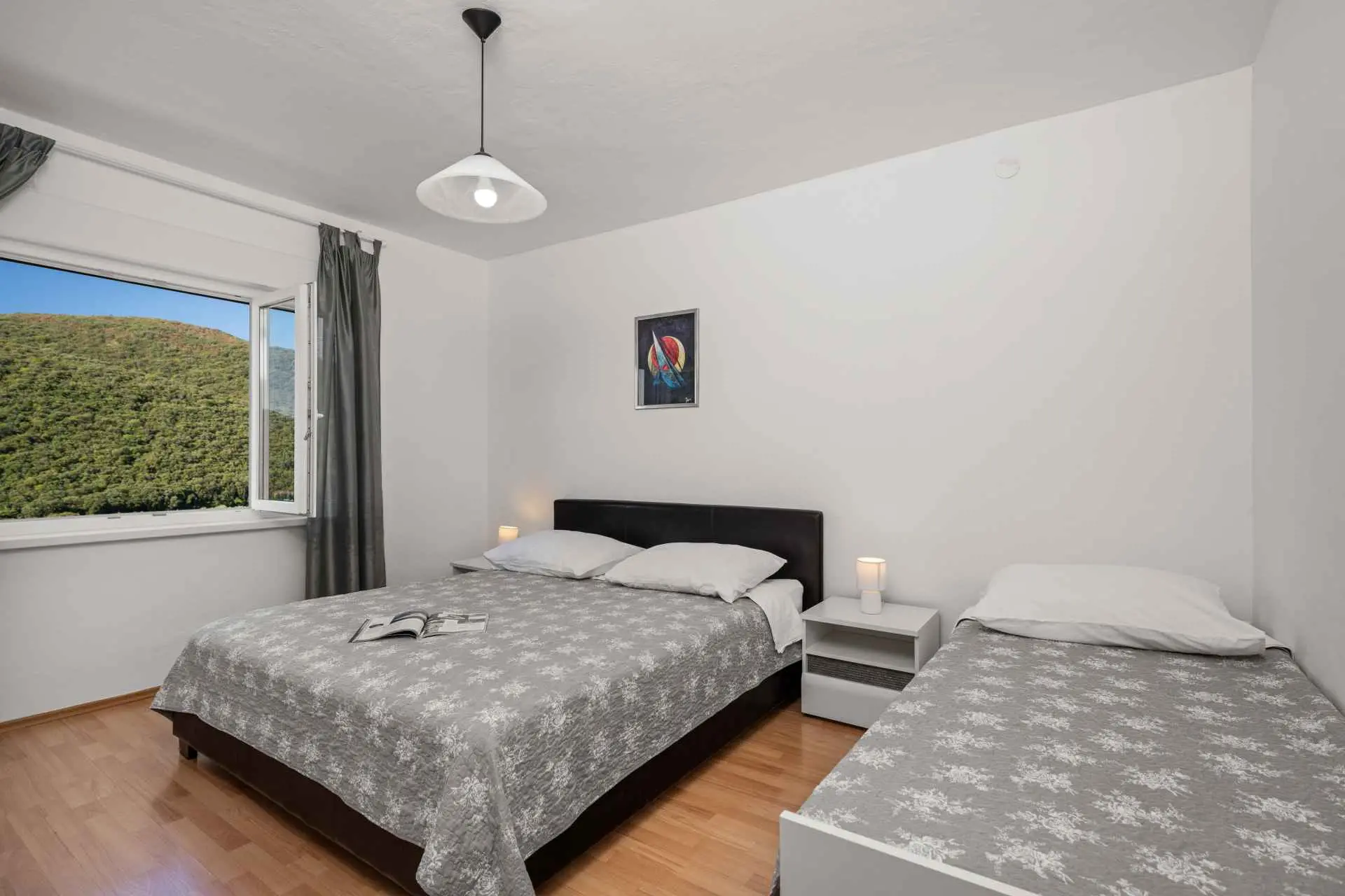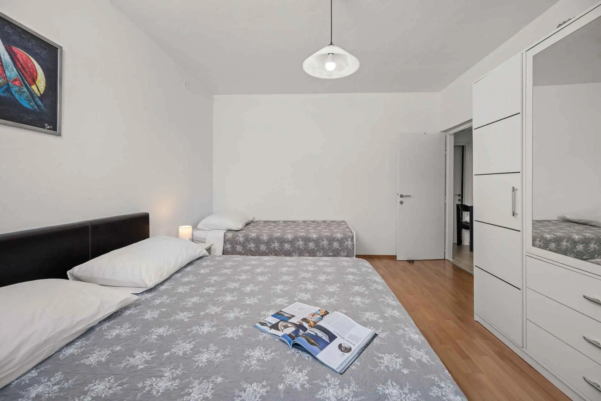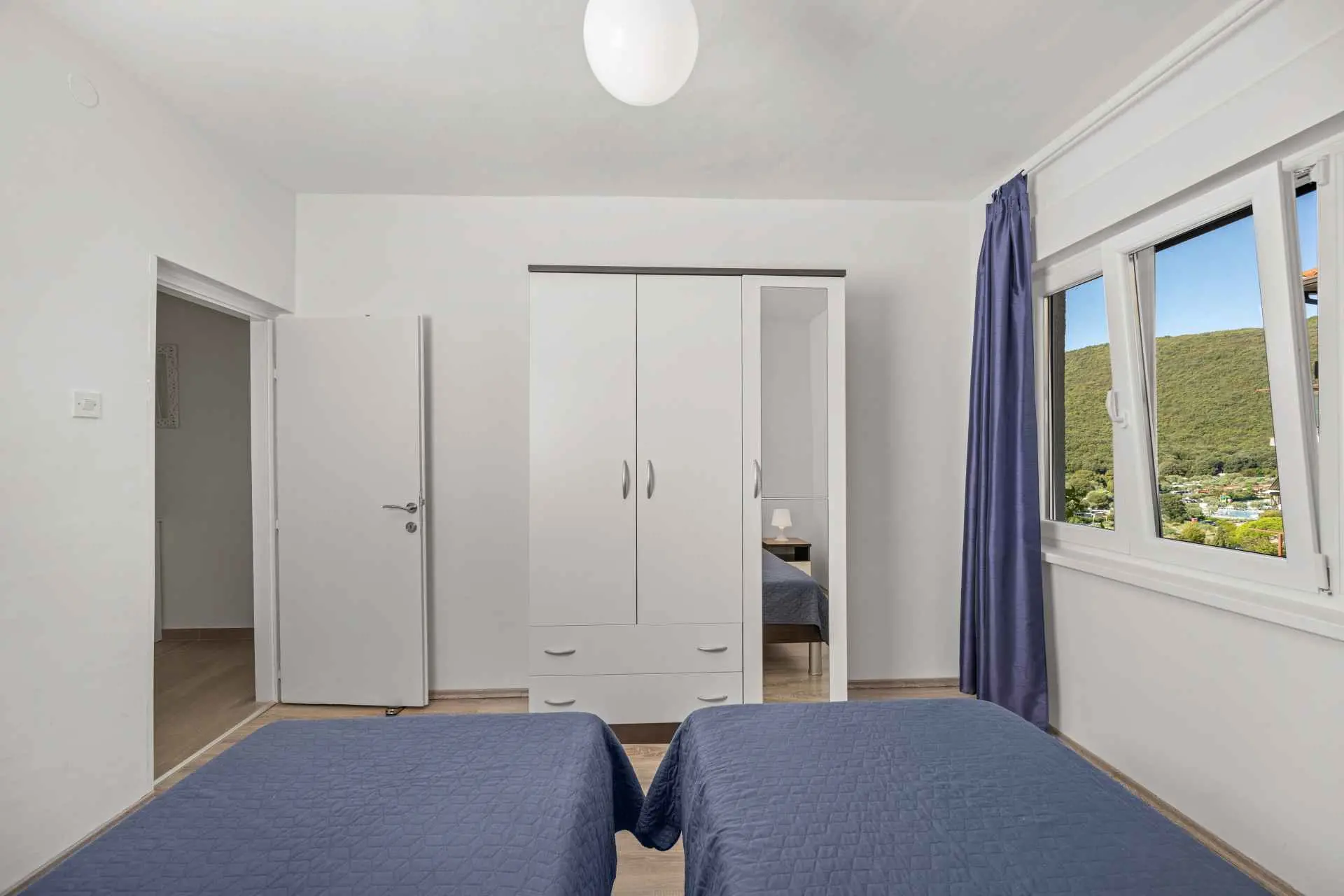 L'appartement Sanja est situé à Rabac et est très proche de la plage et à seulement 200 m du centre/port. Il peut accueillir jusqu'à 6-8 personnes et est idéal pour la famille ou les amis. Le stationnement est disponible gratuitement sur un terrain public à côté de la propriété. La distance jusqu'à la plage n'est que de 100 mètres, vous pouvez donc laisser votre voiture garée pendant toute la durée de vos vacances. Le premier restaurant est à environ 150 m, le long de la promenade au bord de la mer, vous trouverez plus de restaurants, bars, glaciers et stands. L'appartement Sanja d'une superficie totale de 85 m2 dispose de trois chambres, deux avec lits doubles et une avec lits jumeaux. Dans le salon, un canapé-lit convient à un à deux enfants. Le linge de lit est fourni sur les lits. La cuisine est entièrement équipée avec cuisinière avec four, réfrigérateur avec congélateur, machine à café, vaisselle et ustensiles, etc. La salle de bain dispose d'une douche, de toilettes et d'un lavabo avec miroir. Il y a aussi des toilettes supplémentaires. Sur la terrasse se trouve une table de jardin avec chaises et parasol et un barbecue extérieur pouvant être utilisé. Depuis le balcon, vous avez une vue directe sur la plage. Veuillez noter qu'en haute saison, les changements de clients ne se font que le samedi (du 1er juin au 13 septembre 2023). Remarque : l'inscription touristique coûte 4,00 € par personne - une seule fois
