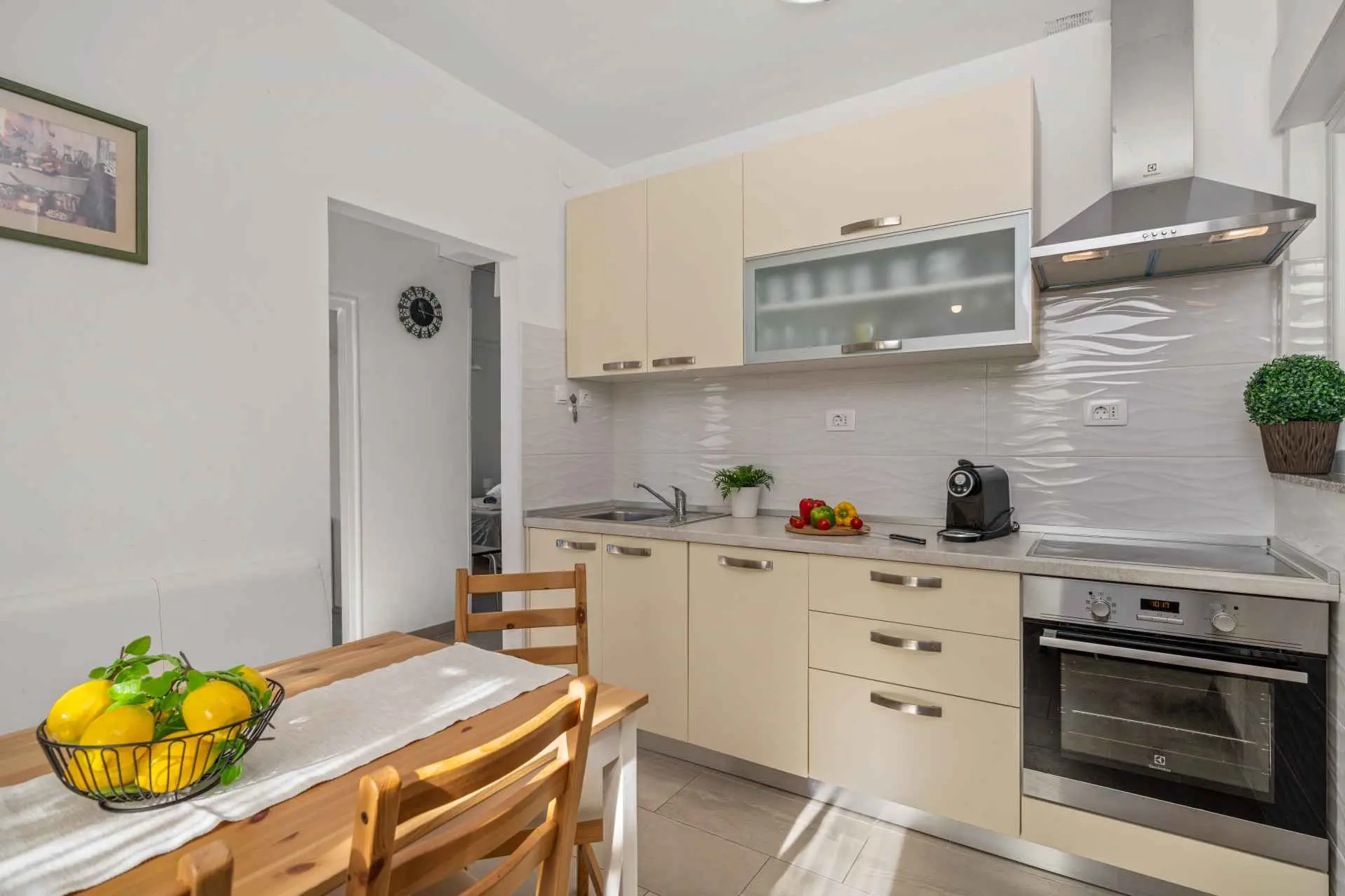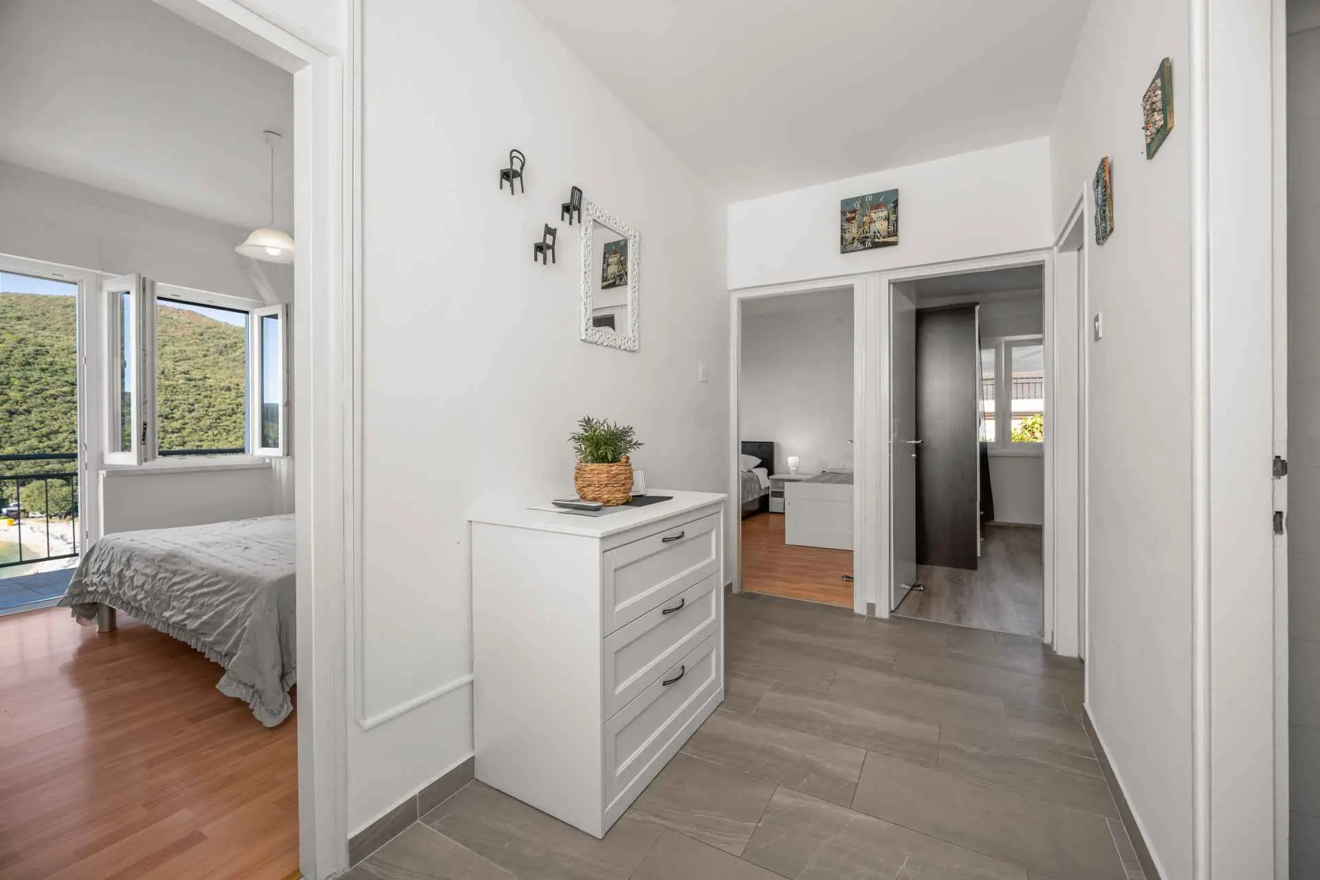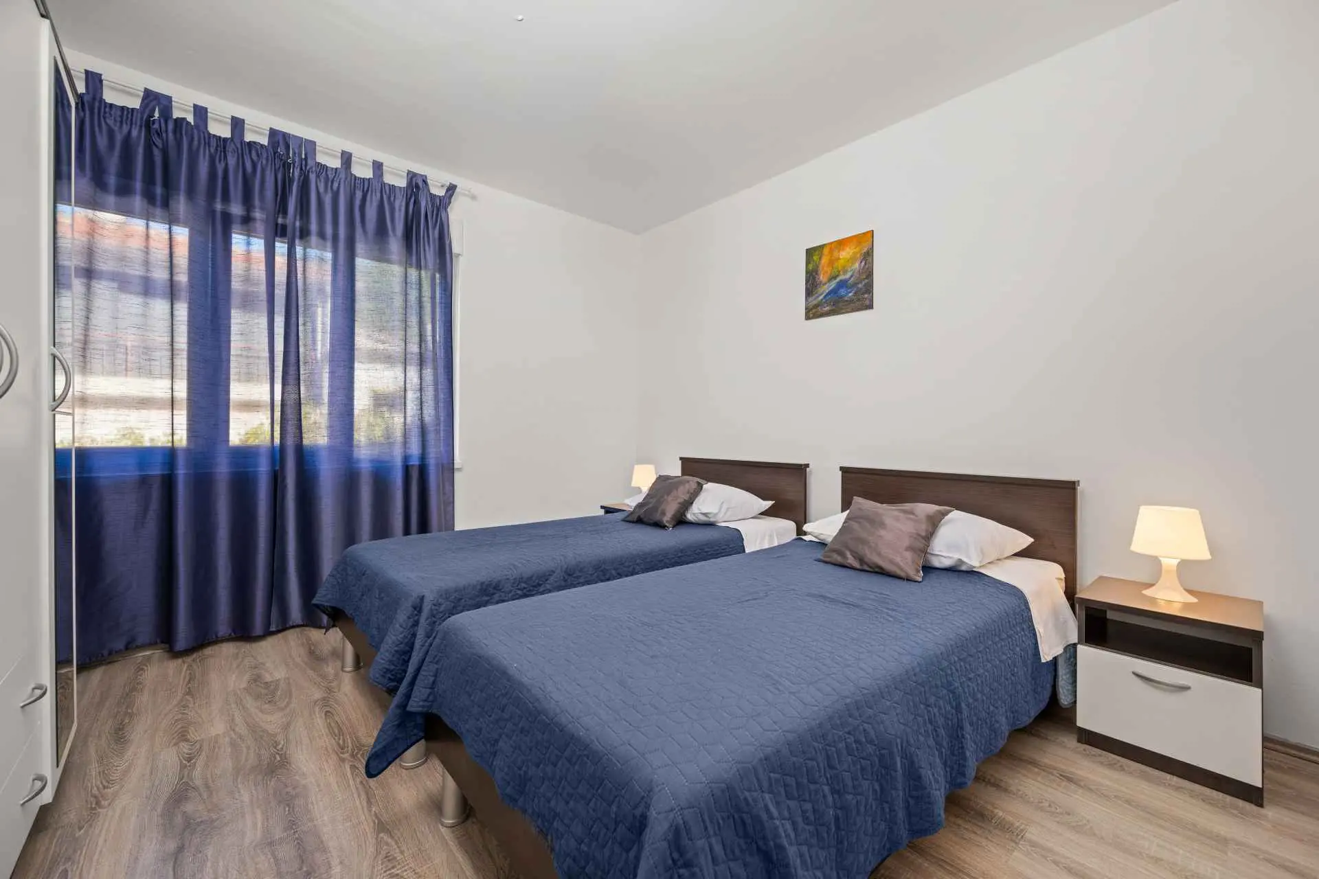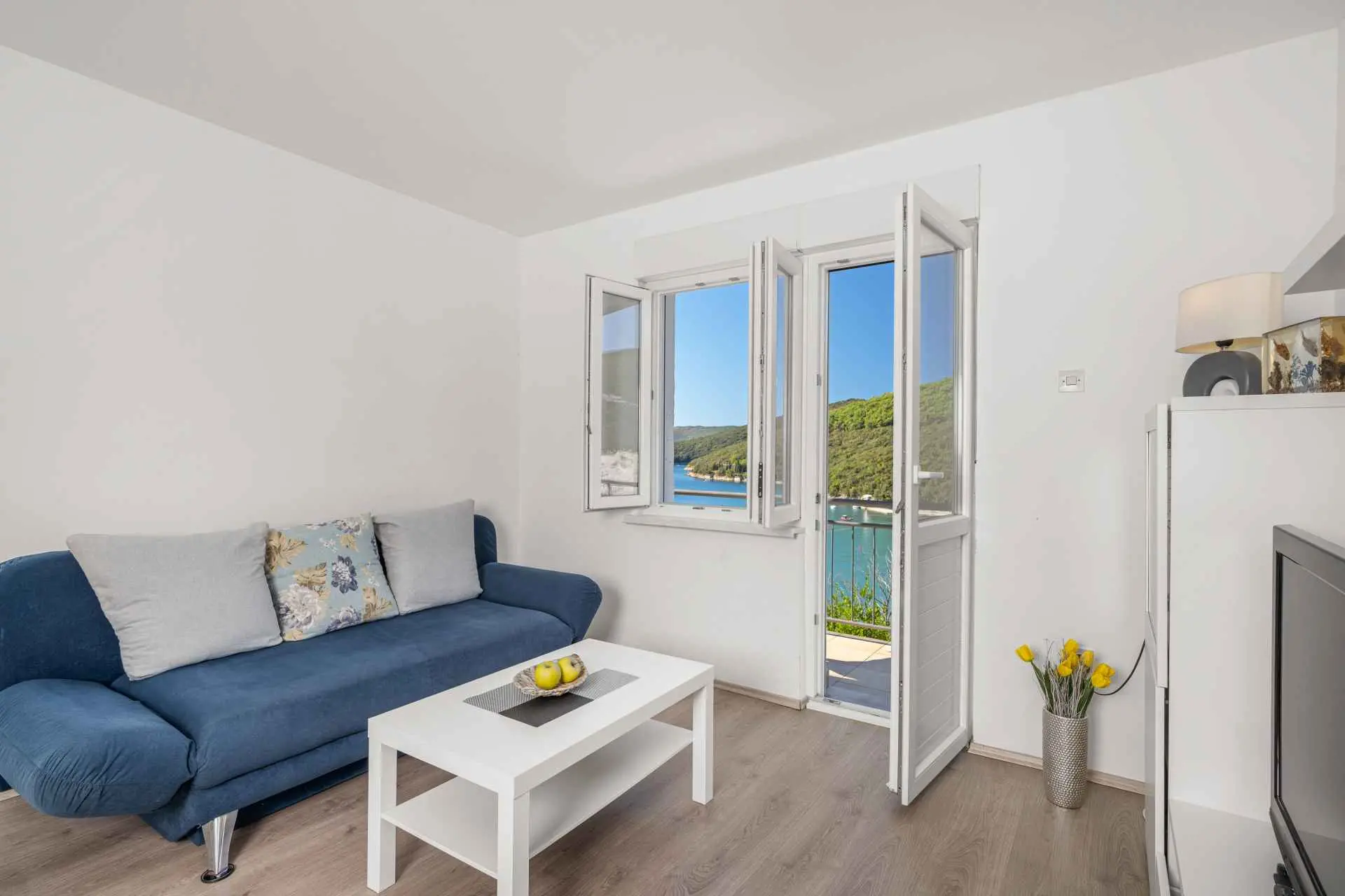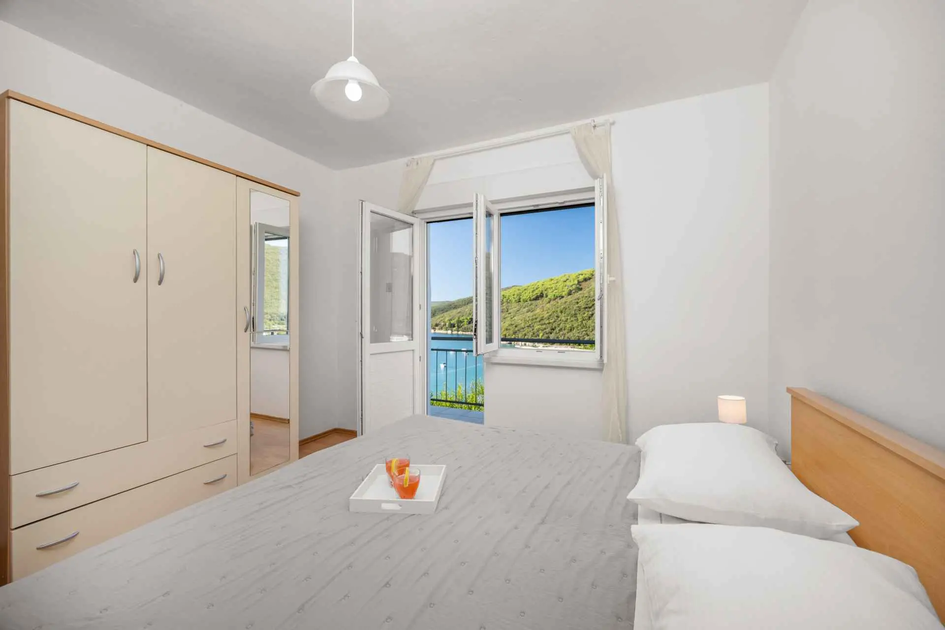 L'appartement Sanja est situé à Rabac et est très proche de la plage et à seulement 200 m du centre/port. Il peut accueillir jusqu'à 6-8 personnes et est idéal pour la famille ou les amis. Le stationnement est disponible gratuitement sur un terrain public à côté de la propriété. La distance jusqu'à la plage n'est que de 100 mètres, vous pouvez donc laisser votre voiture garée pendant toute la durée de vos vacances. Le premier restaurant est à environ 150 m, le long de la promenade au bord de la mer, vous trouverez plus de restaurants, bars, glaciers et stands. L'appartement Sanja d'une superficie totale de 85 m2 dispose de trois chambres, deux avec lits doubles et une avec lits jumeaux. Dans le salon, un canapé-lit convient à un à deux enfants. Le linge de lit est fourni sur les lits. La cuisine est entièrement équipée avec cuisinière avec four, réfrigérateur avec congélateur, machine à café, vaisselle et ustensiles, etc. La salle de bain dispose d'une douche, de toilettes et d'un lavabo avec miroir. Il y a aussi des toilettes supplémentaires. Sur la terrasse se trouve une table de jardin avec chaises et parasol et un barbecue extérieur pouvant être utilisé. Depuis le balcon, vous avez une vue directe sur la plage. Veuillez noter qu'en haute saison, les changements de clients ne se font que le samedi (du 1er juin au 13 septembre 2023). Remarque : l'inscription touristique coûte 4,00 € par personne - une seule fois