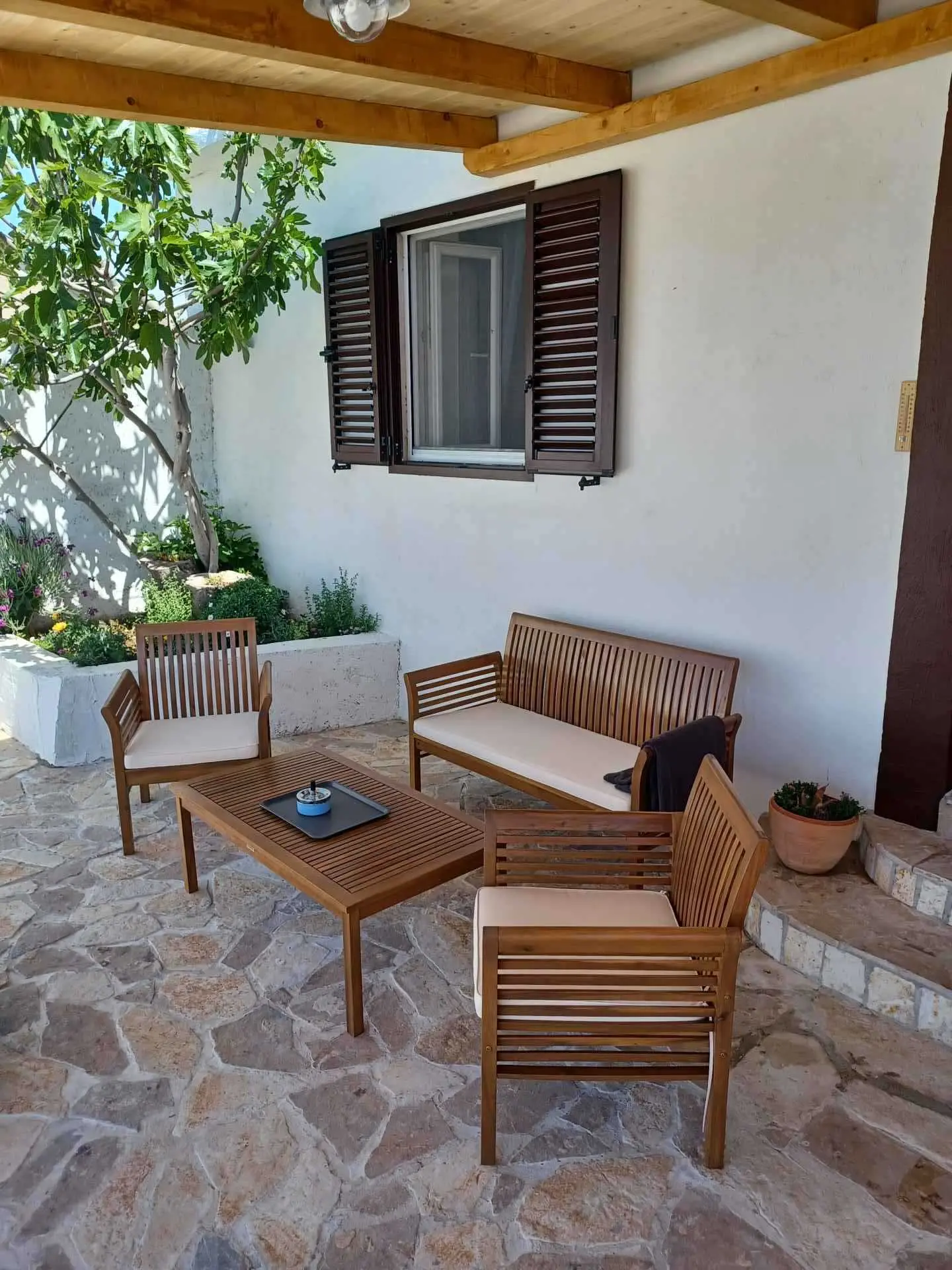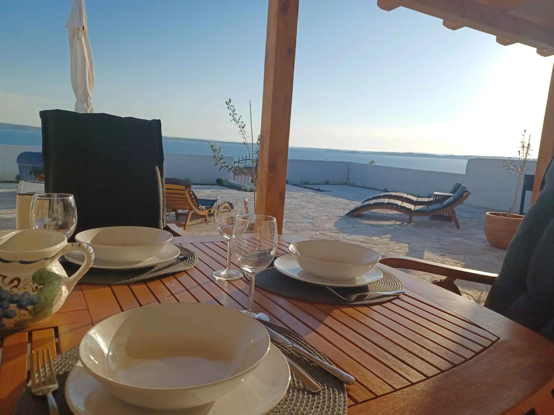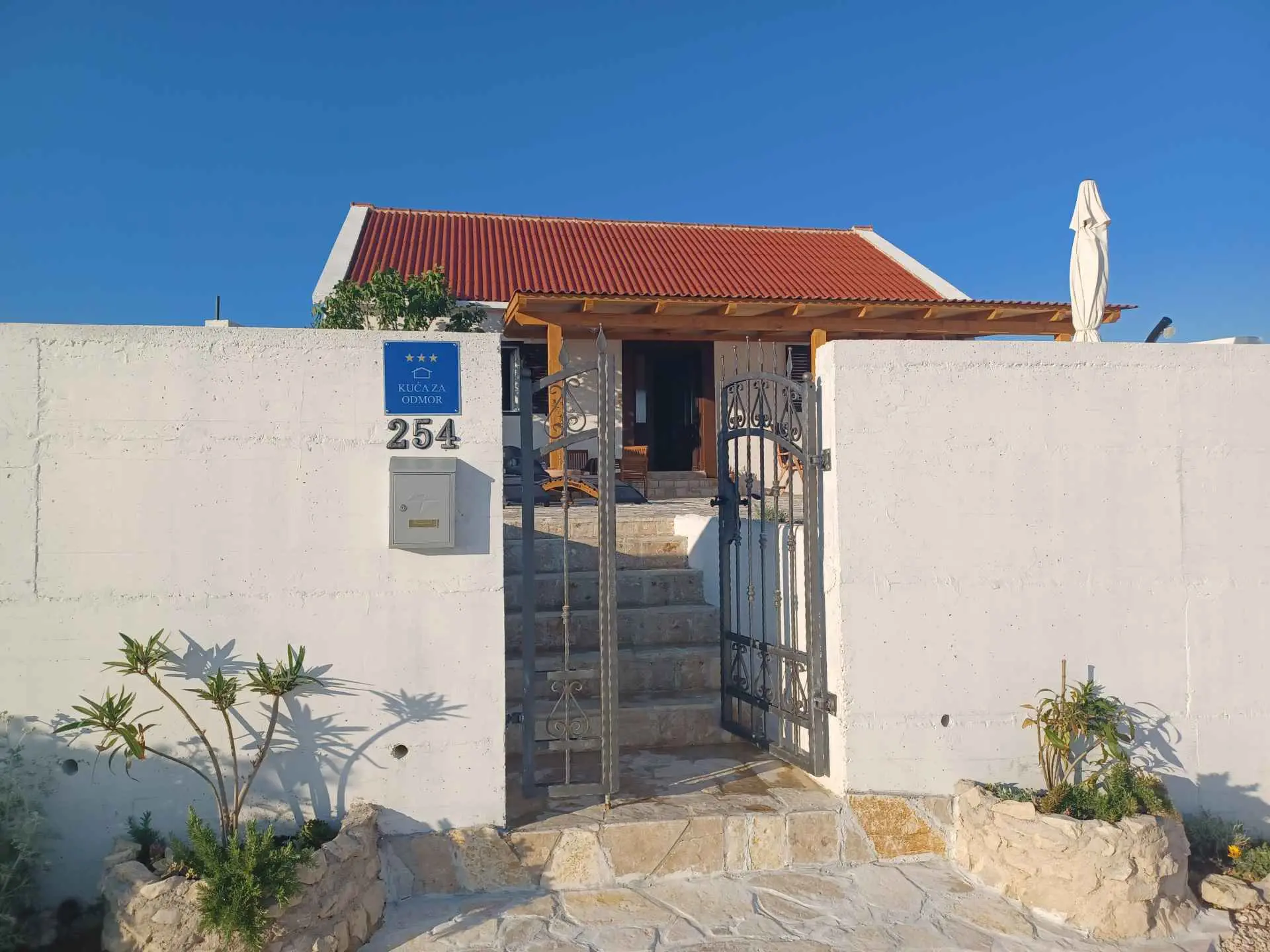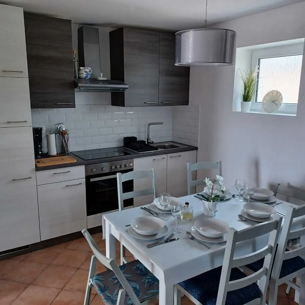 La maison de vacances Jolini Dvori est située à Miletići, près du pont de Pag. La maison entière est à louer. Il dispose de 2 chambres, une salle de bain, cuisine, salle à manger, salon et grand hall d'entrée. La cuisine est équipée de tous les couverts, micro-ondes, four ordinaire, plaque de cuisson, réfrigérateur, congélateur, bouilloire, grille-pain, mixeur plongeant. Dans la salle de bain il y a un lave-vaisselle, un sèche-cheveux et un fer à repasser. Les chambres disposent de lits doubles, d'une armoire coulissante et d'une coiffeuse. Dans le salon se trouve un grand canapé pouvant servir de lit d'appoint pour deux personnes et une grande télévision plasma android. La maison dispose d'un signal wifi et de la climatisation. Devant la maison se trouve une terrasse de 150m2 avec belle vue mer, jacuzzi, douche extérieure, barbecue, mobilier de jardin et transats. La plage est à 200 m de la maison, adaptée aux enfants et aux personnes âgées, une combinaison de petits galets et de sable dans la mer. Il y a aussi une plage pour chiens à proximité. Le parking pour nos hôtes est situé devant la maison. Autour de la maison, vous pouvez voir les plantes indigènes. Sur la place Ražanac, à 5 km de la maison, vous trouverez des magasins, une ambulance, une pharmacie et un marché, et si vous êtes en quête d'aventure et d'action, vous louerez un jet ski, un bateau ou une équipe. À Miletići, il y a 4 restaurants et cafés à seulement 5 minutes à pied de la maison et il y a l'inévitable pont de Pag comme attraction. Pour les amoureux de la nature, un endroit merveilleux à visiter est le parc national Paklenica, à 45 minutes en voiture de la maison de vacances Jolini Dvori. Zadar, Pag et Nin sont de belles villes historiques à 30 minutes en voiture de la maison. Prenez votre décision aujourd'hui et réservez votre hébergement ! Vous méritez de merveilleuses vacances !