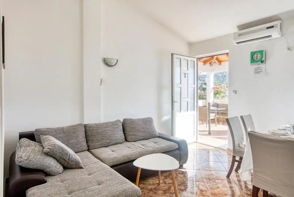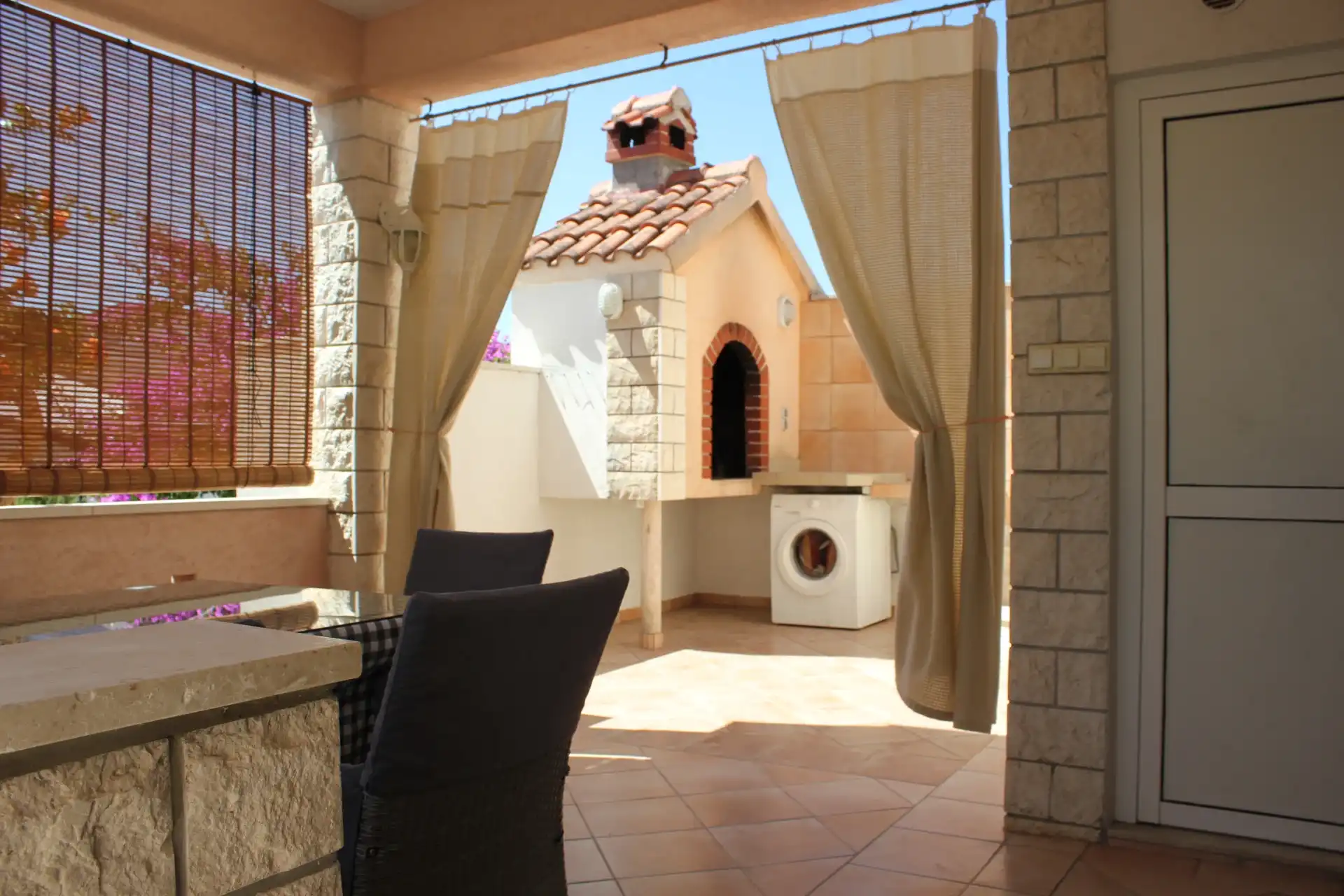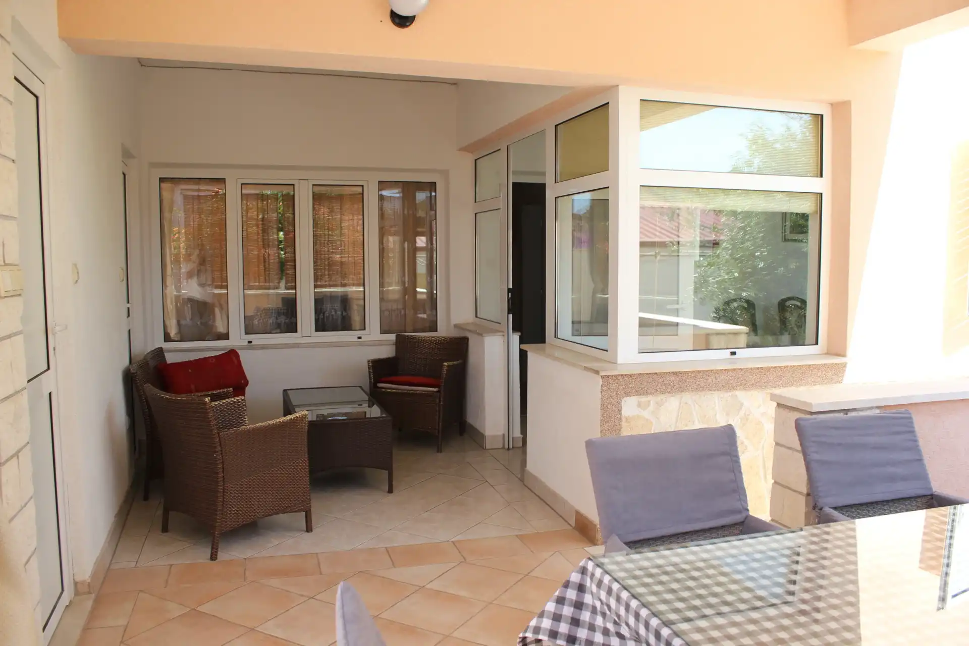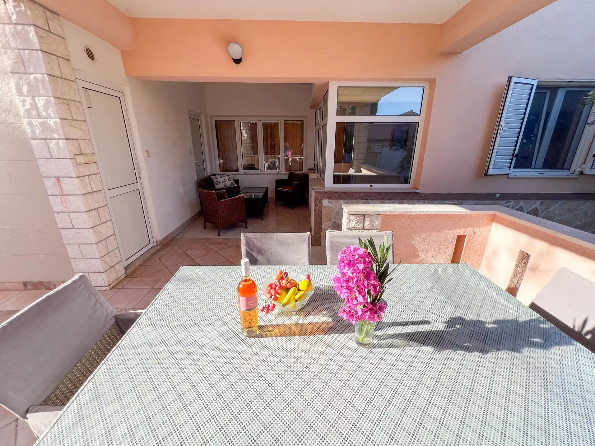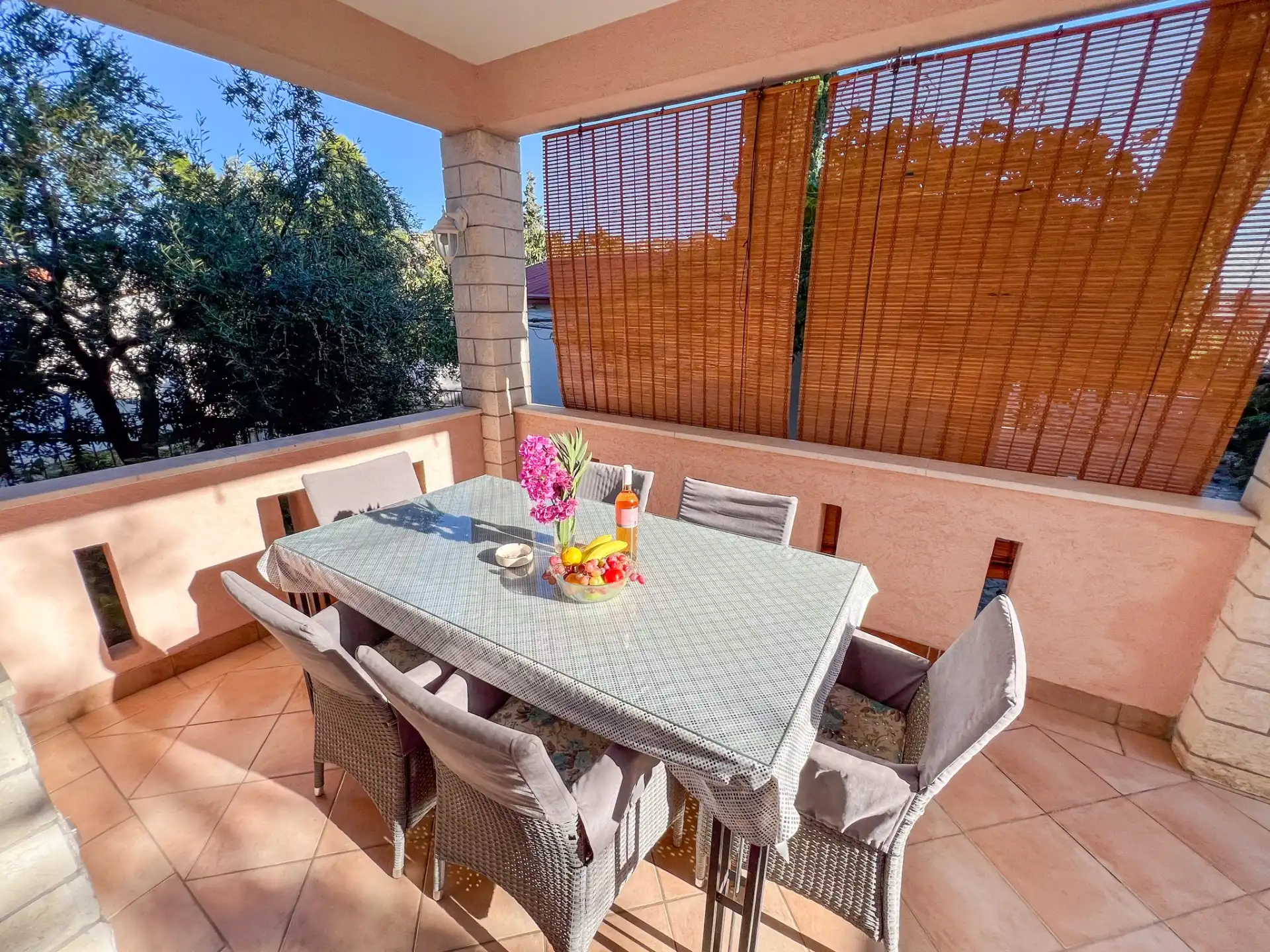 Sehr nette und hilfsbereite Gastgeber die sich darum kümmern, dass alles in der Wohnung vorhanden ist. Schöne überdachte Terrasse mit Blick zum Meer und inmitten vieler Pflanzen. Großer Innenhof zum Parken mit Grillmöglichkeit und Duschen. Ein netter Ort am Meer mit vielen guten Restaurants und mehreren Stränden zum Entspannen.