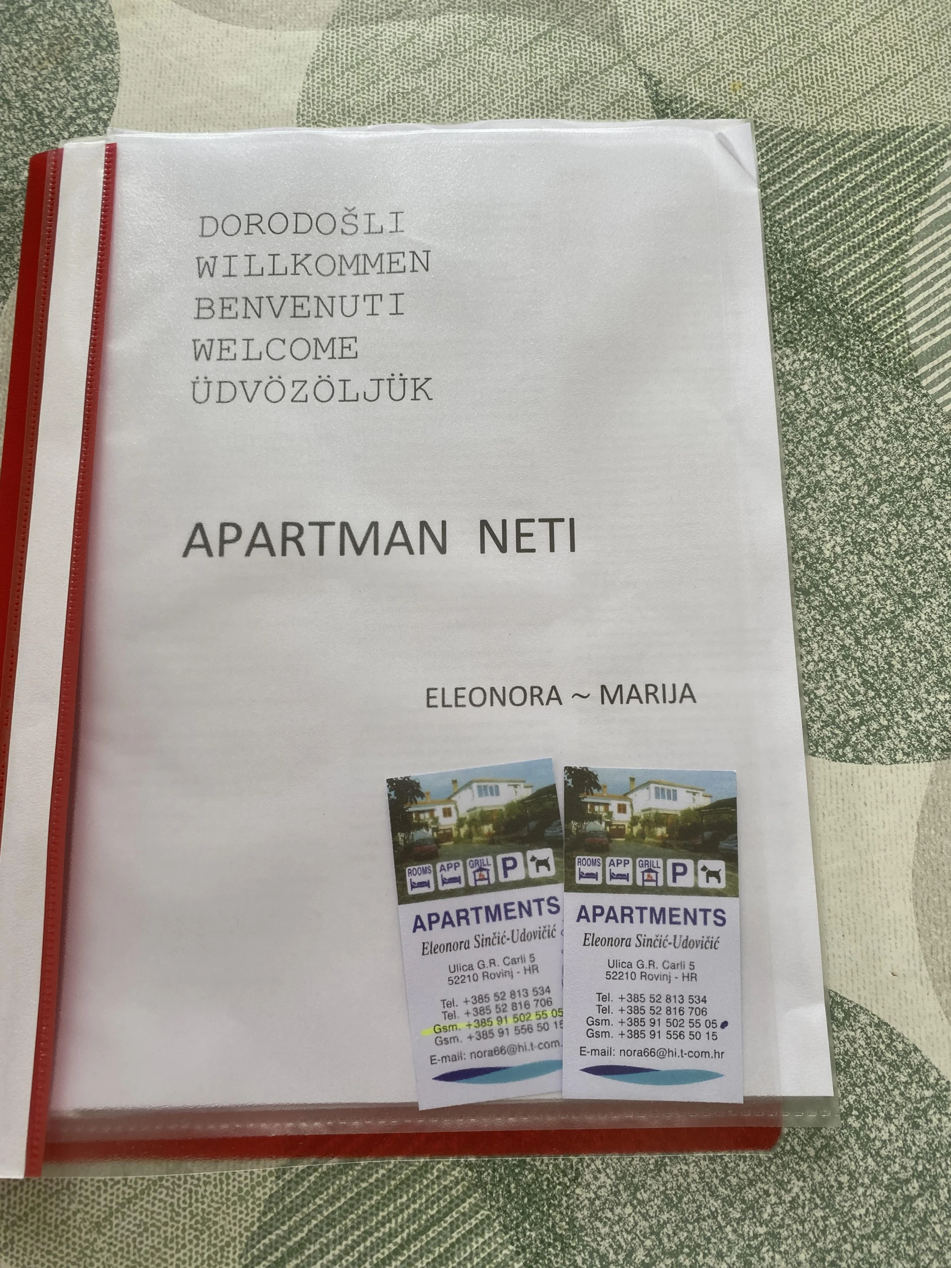 Nous sommes une famille qui loue des appartements et des chambres depuis plus de 30 ans. Notre maison familiale comprend un appartement NETI (50 m²) classé 3 étoiles et une chambre NORA avec salle de bain, également classée 3 étoiles. Notre maison est entourée d'un jardin et d'un grand parking. Au rez-de-chaussée, la chambre NORA dispose d'une entrée indépendante et d'une grande terrasse. L'appartement NETI, avec son entrée et sa terrasse privatives, se situe au premier étage et est accessible par un escalier. L'appartement NETI est climatisé (chaud/froid) et est loué toute l'année. La chambre NORA n'est pas climatisée ; nous mettons à disposition des hôtes un ventilateur en été et le chauffage en hiver. Elle est également louée toute l'année. Le centre-ville est à seulement 15-20 minutes à pied ou 3 minutes en voiture, et la première plage, Porton Biondi, est à environ 10 minutes à pied. À proximité de notre maison familiale, vous trouverez un grand magasin Kufland, une aire de jeux pour enfants avec balançoires et bascules, les restaurants Tugurio, Orka, Perla et Porton Biondi, ainsi qu'un cabinet dentaire et une clinique vétérinaire. Notre appartement NETI et notre chambre NORA vous attendent pour un séjour inoubliable en Istrie et à Rovinj. L'appartement NETI peut accueillir 2 personnes (couples ou amis), et la chambre NORA également 2 personnes. Un barbecue en briques est à votre disposition dans le jardin, où vous pourrez savourer de délicieuses grillades préparées par vos soins, en toute tranquillité. En bref, un lieu idéal pour se ressourcer et se détendre, que vous soyez en famille, en couple ou entre amis. Draps, serviettes et couvertures sont fournis. Le ménage est effectué régulièrement après chaque départ. L'appartement NETI et la chambre NORA disposent d'une connexion Wi-Fi gratuite et d'un parking gratuit dans la cour. Vous pourrez ainsi laisser votre voiture et vous rendre à la plage ou au centre-ville à pied, sans frais de stationnement supplémentaires. Nos hôtes sont accueillants, discrets et à votre écoute pour toute information ou pour vous faire profiter des meilleures offres sur la ville de Rovinj et ses environs. Chaque hôte est important pour nous et nous mettons tout en œuvre pour que son séjour soit des plus agréables. La fidélité de nos clients, présents depuis plus de 30 ans, témoigne de notre réussite. Merci de nous rendre cela possible !